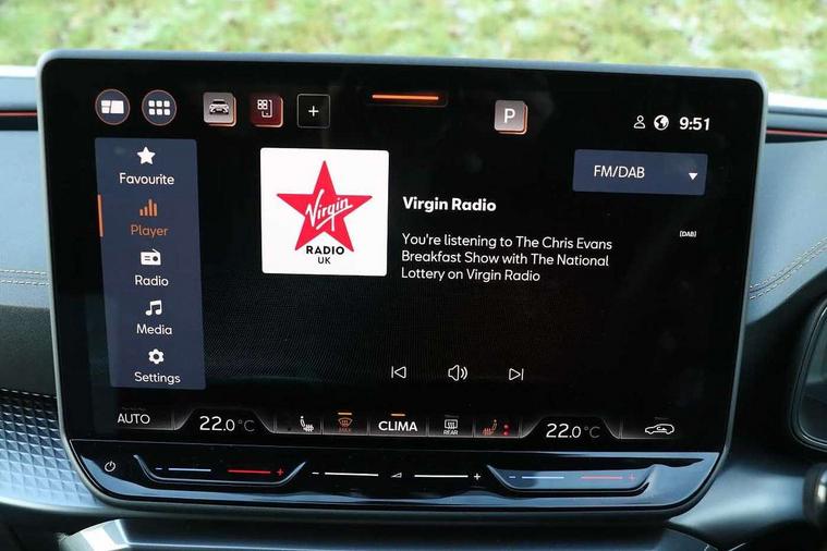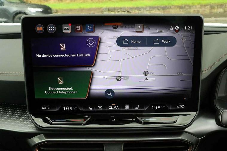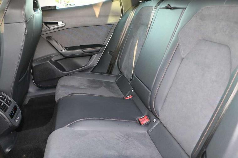 10.25" digital cockpit and configurable dashboard, Adaptive cruise control with follow-to-stop and speed limiter, Advanced driver alert system, Driving profile selection, Dynamic road sign display, Emergency steering support with turn assist, Forward collision warning with automatic braking, Front and rear parking sensors, Front cross traffic assist, Full link phone integration, Lane assist, Progressive steering, Rear view camera, RPM, trip computer, outside temp gauge, instrument light brightness, low fuel warning light, lights on reminder, gearshift indicator, Service interval indicator, Start/stop system with regenerative braking, Virtual pedal and electric tailgate, Voice control system, Wired Android Auto, Wireless apple carplay, Wireless phone charger, CUPRA sport suspension, Electronic locking differential and dynamic traction support, 2 front and 2 rear USB type C sockets, Media system with navigation, 12.9" touchscreen display, voice control, DAB, steering wheel mounted controls, Auto dimming rear view mirror, Body colour door handles, Body coloured bumpers, Dark grey wing mirror, Daytime running light with automatic headlight control and coming home feature, Door panel ambient lighting, Dynamic headlight range control, Electric front/rear windows, Electrically adjustable heated and folding door mirrors with memory function, Gloss black roof rails and window surrounds, High beam assist, LED 3rd brake light, LED front fog lamps with cornering function, LED Headlights, LED Taillights with dynamic indicator, Rain sensing wipers, Rear diffuser with black simulated exhaust pipes, Rear fog lights, Rear side wing doors, Rear wash/wipe, Tinted rear windows, Welcome lights (within exterior mirror housing), 12V socket, 2 front and 2 rear reading lights, 3 seat bench in 2nd row, 60/40 split rear bench seat with armrest and mechanical seat release, Black headlining, Black interior roof lining, Cupra sports pedals, Dust/pollen filter, Electrically adjustable front seats with lumbar support and memory function, Front and rear head restraints, Front centre armrest, Heated front seats, Heated supersports multifunction leather steering wheel with satellite buttons and gear shift paddles, Height/reach adjust steering wheel, Illuminated aluminium doorsteps, Illuminated interior front door sills, Illuminated sunvisor with mirror, Isofix, Leather dashboard, door insert and side trim panel, LED smart wraparound lighting, PVC/Dinamica microfiber upholstery + bucket seats, Satellite steering wheel, Single front passenger seat, Storage pockets on rear of front seats, Three zone climate control with control panel in rear, Variable luggage/load compartment floor, 3 point seatbelts on all rear seats, ABS, Brake control system - ESC and brake booster, Child proof door locks, Driver and front passenger airbags with front passenger airbag de-activation, Electronic parking brake, Front and rear disc brakes, Front side curtain airbags, Hill hold control, Public e-call, Seat belt reminder for front and rear seats, Tyre pressure monitoring system, Anti theft alarm system, KESSY Advanced - Keyless start, keyless entry with SAFELOCK, Locking wheel bolts, Warranty - 5 years/90, 000 miles, Copper and aluminium interior detailing, 19" Sandstorm machined sport black and silver alloy wheels,
