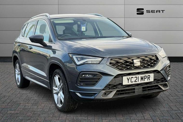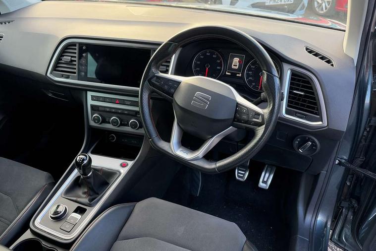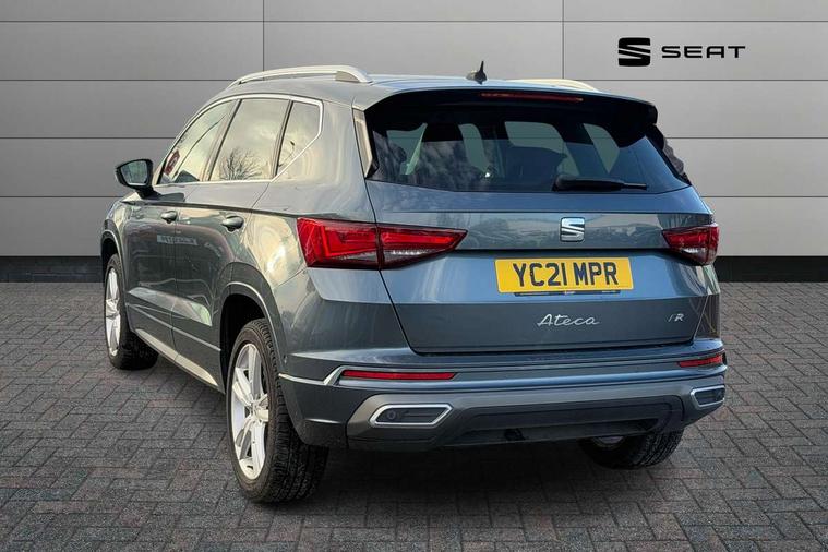 Cruise control system with speed limiter, Outside temperature gauge, Progressive power assisted steering, SEAT drive profile with driving experience button - Normal, Sport, Eco and Individual mode, steering and throttle response, Self parking functionality (includes front and rear parking sensors), Trip computer, Wireless full link smartphone integration, Wireless phone charger, Steering wheel mounted audio/phone controls, Body colour bumpers, Body coloured wheel arch surrounds, Chrome roof rails, Chrome side window trim, Cosmo grey front grille frame, Dark tinted rear windows, Daytime running lights, Door mirrors with welcome light silhouette, Dynamic headlight range control with self adjusting whilst driving, Electric adjustable/heated/folding door mirrors, Front and rear electric windows, Full LED headlamps with lens and LED front fog lamps with cornering function, Illuminated aluminium front door sill, LED rear tail lights with dynamic indicators, Rear fog lights, Rear spoiler, Rear wash/wipe, Simulated exhaust pipes in chrome frame, 12V socket in front, 60/40 split folding rear seat, Aluminium pedals, Dual zone climate control, Front and rear head restraints, Front centre armrest, Front seat back storage pockets, Height adjustable driver and passenger seat with lumbar adjustment, ISOFIX points in outer rear seats with top tether anchorage points, Leather steering wheel and gear knob, Microsuede upholstery with front sports seats, Multicoloured ambient lighting with LED interior illumination, Rear armrest and easy back seat release mechanism from boot, Storage compartment in roof console for sunglass, Storage compartment under driver's seat, Convenience pack - Ateca, Interior lighting pack - Ateca, Navigation system pack with DAB - Ateca, 3x3 point rear seatbelts, ABS, Traction control system (TCS), Electronic stability control (ESC) and Electronic differential lock system (XDS), Airbags - Driver and front passenger airbag with deactivation, front side, two curtain and driver's knee airbags, Electric parking brake with auto hold function, Front and rear seatbelt reminder, Front assist with autonomous emergency braking, Hill hold control, Tiredness recognition system, Traction control, Tyre pressure monitoring system, Alarm, Keyless entry, Locking wheel bolts, Chrome interior detailing, 18" Brillaint silver alloy wheels,