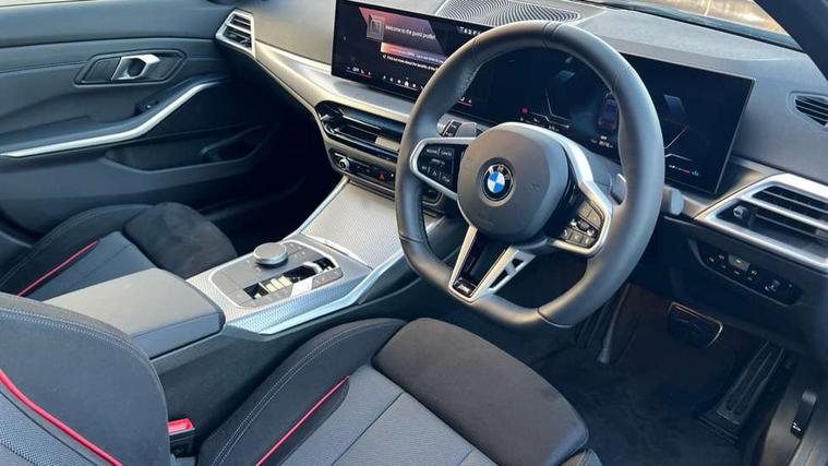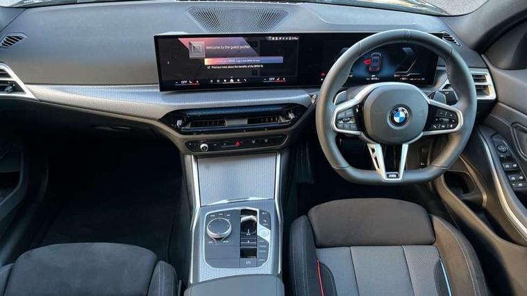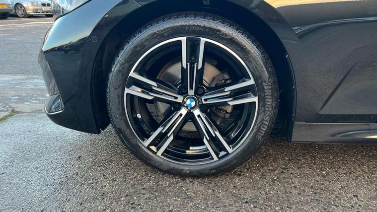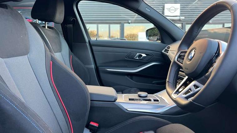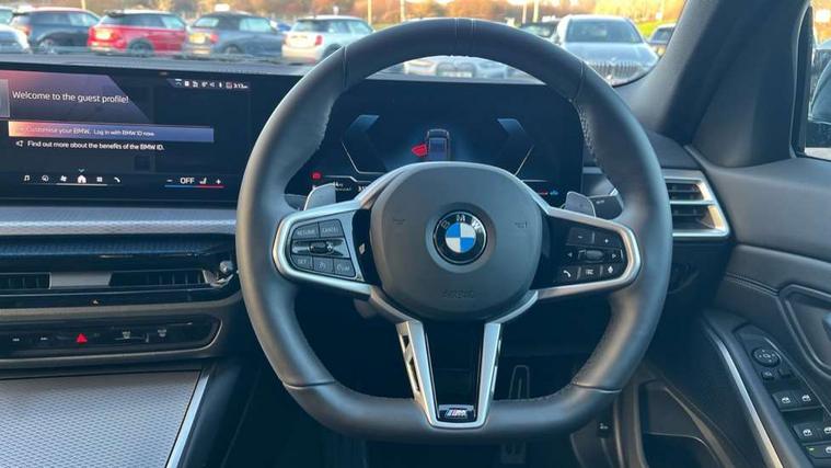 Active guard plus, Attentiveness assist, Automatic Start/stop button, Bluetooth Wi-Fi interface, BMW iDrive, BMW Teleservices, ConnectedDrive Services - last state call, Live cockpit plus with Navigation + 12.3" instrument display + 14.9" display, Intelligent voice assist, 2 USB, 4G LTE connect, Oil sensor for level and grade, Personal e-SIM, Shifting point display, Variable sport steering, Double joint spring strut front axle, Fuel tank breather system, Steptronic Sport automatic transmission with steering wheel mounted gearshift paddles launch control and xtreme drive lever control, DAB tuner, 3rd brake light, Auto dimming rear view mirror, Automatic headlight beam throw control with load dependent regulating reaction, dynamic compensation of braking dive and acceleration squat, Bi-LED Low and high beam headlights, BMW emblem, engine compartment lid and tailgate, Body colour roof fin, Door sill strips, Electric windows - front and rear, with open/close fingertip control, anti-trap facility and comfort closing, Fading support, Folding wing mirror with auto dimming, Follow me home headlight function, Front and rear bumper system with replaceable deformation elements, Front apron plastic in body colour, Fuel filler flap - right rear in body colour, Heat protection glazing on front windows and windscreen, Heated washer jets, High gloss chrome kidney frame with high gloss black kidney struts, LED daytime running lights, LED rear lights, LED turn indicator, Licence plate panel integrated into front bumper and tailgate, M high gloss shadow line exterior trim, Matt black B-pillar finsher, Matt black window recess cover, Model designation on right side of tailgate, One piece front bumper cover including towing eye cover in body colour, Rain sensor with automatic headlight activation, Rear boot, Rear side wing doors, Reversing lights, Side frame decorative moulding black matt, Trailer stabilisation logic, Visible exhaust tailpipe finisher, Welcome lights in interior and door handle area, 12V power socket in front storage compartment, 2 front cupholder in centre console with clamping elements and matt black inlay, 3 seat bench in 2nd row, 3 spoke M Sport multifunction flat bottom leather steering wheel, 3 zone automatic air conditioning, 40:20:40 split folding rear seat with loading system, Anthracite headlining, Armrest integrated in front and rear door trim + front centre console armrest, BMW ID, Cruise control operation in steering wheel, Driving experience mode switch, Folding rear centre armrest with 2 cupholders, Front and rear headrests, Front and rear velour floor mats, Front reading light, Heated front seats, Height adjustable mechanically and infinitely variable steering column, Illuminated armrest storage compartment, Illuminated glove compartment, Illuminated luggage compartment, Lashing eyelets in luggage compartment, Single front passenger seat, Sunvisors with illuminated vanity mirrors and ticket pocket, Toolkit located in luggage compartment, Connected pack professional - 3 Series Saloon/Touring, Interior and exterior mirror pack - 3 Series Touring/Saloon, M sport exterior styling pack - 3 Series Saloon/Touring, Parking assistant pack - 3 Series, 3x3 point rear seatbelts, BMW emergency call, Child locks on rear doors, Crash sensor activating of airbags, Unlocking doors, hazard warning lights, interior light, safety battery terminal, Drive-off assistant, Driver and front passenger with seat occupancy detection for driver's and passenger side, Driver and passenger side airbags, body protection at side and airbags deploy from seat backrests, Dry braking, Dynamic brake control, Dynamic stability control + (DSC+) - Anti-lock Braking System (ABS) with brake assist and cornering brake control + Automatic Stability Control (ASC), Dynamic Traction Control - DTC, Electric parking brake including automatic hold function and automatic release of the parking brake when driving off, Electronic differential lock control (EDLC), Front airbag deactivation, Front airbags for driver and front passenger, Head airbags in 1st and 2nd row, head protection at side, curtain airbags open from headliner above 1st and 2nd row, Plastic fuel tank, Side impact protection, Tyre pressure sensors, Ventilated front and rear disc brakes, Warning triangle and first aid kit, Alarm system, Centre lock switch, Closing system with central locking, Electronic vehicle immobiliser, Locking wheel bolts, Tyre repair kit,