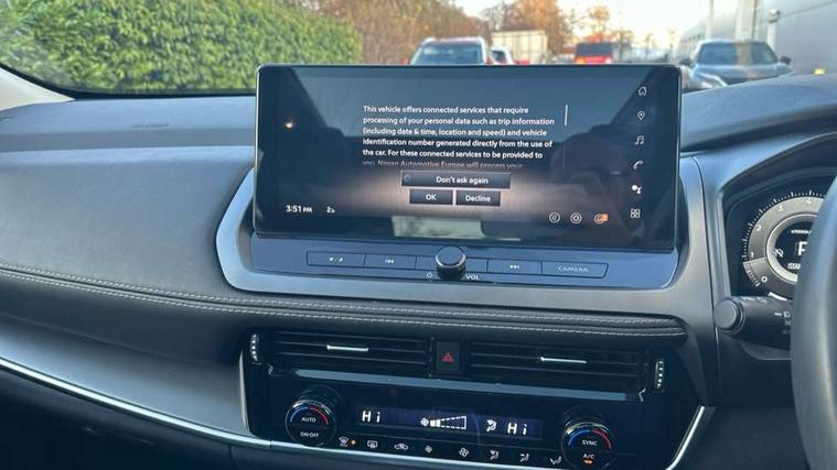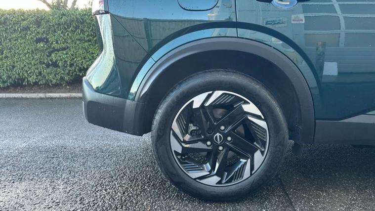 2 front USB-C ports, 2 rear USB-C ports, 360 degree Intelligent around view monitor with moving object detection, Blind spot intervention, Blind spot warning, Drive assist custom mode, Drive modes (sport, normal, eco), Driver drowsiness and attention warning, Electric speed sensitive power steering, Emergency and breakdown call, Emergency lane keep assist, Emergency Stop Signal (ESS), Engine start/stop button, Event data recorder, Front and rear parking sensors, Full Digital 12.3" TFT Digital Combimeter, Google virtual personal assistance, Idle stop/start system, In-car WIFI hotspot, Intelligent Cruise control (ICC), Intelligent forward collision warning, Intelligent speed assist, Lane departure warning system, Nissan connect 12.3 inch touchscreen infotainment system, Nissan connect navigation with google maps, Nissan connect services 2.0 (Google Automotive System), Outside temperature sensor, Rear cross traffic alert, Reversing detection, Traffic jam pilot, Wireless Apple CarPlay/Android Auto, Wireless charging pad, Limited slip differential, 6 speakers, AM/FM audio system with DAB, Bluetooth audio streaming, Auto rear wiper when reversing, Body colour mirror caps, Body coloured door handles, Bodyside mouldings, Chrome side window finisher, Electric auto folding door mirrors, Electrically adjustable and heated door mirrors with LED turn indicator, Follow me home headlights, High beam assist, Intelligent auto headlights, LED 3rd brake light, LED daytime running lights, LED Headlights, LED rear lights, One touch front and rear electric windows with remote opening and closing, One touch passenger window, Partially body coloured bumpers, Rear privacy glass, Rear roof spoiler, Rear side wing doors, Rear styling plate, Shark fin antenna, Splash free rain sensing wipers, Super UV and infrared cut glass, Three blink turn signal, 3 bench rear seats in 2nd row, 3 rear headrests, 60/40 split folding rear seat bench, Chrome interior door handles, Cloth upholstery, Dark headlining, Driver seat back pocket, Dual zone automatic climate control with pollen filter, Front door with bottle holders, Height adjustable front headrests, Luggage board system, Luggage space lighting, Multifunction steering wheel, Passenger seat back pocket, Rear door bottle holders, RGB ambient light (Full area coverage), Single front passenger seat, Smooth leather steering wheel, Steering wheel gearshift paddles, Tilt/telescopic adjustable steering wheel, Two rear isofix child seat anchorage points with top tether, 3x3 point rear seatbelt pretensioners + load limiters, Autonomous emergency braking, Child locks on rear doors, Curtain and front side, far side airbags, Driver and passenger airbags, Driver, passenger and 2nd row rear seat belt reminder, Electric handbrake with auto hold function, Front seatbelt pretensioners + load limiters, Height adjustable front seatbelts, Hill start assist, intelligent front emergency braking, Rear automatic braking, Tyre pressure monitoring system, Vehicle dynamic control, Engine immobiliser, Intelligent key with walk away lock and approach unlock functions, Remote central door locking with deadlocking, Thatcham alarm, 18" Diamond cut alloy wheels, Tyre puncture repair kit,