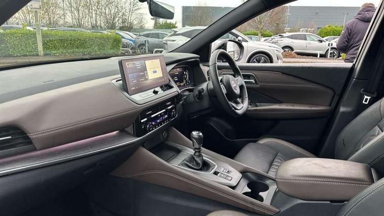 2 front USB-C ports, 2 rear USB-C ports, 360 degree Intelligent around view monitor with moving object detection, Advanced windscreen head up display, Blind spot warning, Drive assist, Drive assist custom mode, Drive modes (sport, normal, eco), Driver drowsiness and attention warning, Electric speed sensitive power steering, Emergency and breakdown call, Emergency lane keep assist, Emergency Stop Signal (ESS), Engine start/stop button, Event data recorder, Front and rear parking sensors, Full Digital 12.3" TFT Digital Combimeter, Google virtual personal assistance, Hands free power tailgate, Idle stop/start system, In-car WIFI hotspot, Intelligent Cruise control (ICC), Intelligent driver alert system, Intelligent forward collision warning, Intelligent lane intervention, Intelligent speed assist, Lane departure warning system, Nissan connect 12.3 inch touchscreen infotainment system, Nissan connect navigation with google maps, Nissan connect services 2.0 (Google Automotive System), Outside temperature sensor, Rear cross traffic alert, Remote control services - door locks, lights, horn and car locator, Reversing detection, Traffic sign recognition with legal speed adjustment, Trip computer, Wireless Apple CarPlay/Android Auto, Wireless charging pad, Limited slip differential, 6 speakers, AM/FM audio system with DAB, Bluetooth audio streaming, Auto dimming frameless rear view mirror, Auto rear wiper when reversing, Body colour mirror caps, Body coloured door handles, Bodyside mouldings, Chrome side window finisher, Electric auto folding door mirrors, Electrically adjustable and heated door mirrors with LED turn indicator, Follow me home headlights, High beam assist, Intelligent auto headlights, LED 3rd brake light, LED daytime running lights, LED headlights with adaptive driving beam, LED rear lights, LED sequential turn lights, One touch front and rear electric windows with remote opening and closing, One touch passenger window, Partially body coloured bumpers, Rain sensing wipers, Rear privacy glass, Rear roof spoiler, Rear side wing doors, Rear styling plate, Reverse tilting door mirrors, Shark fin antenna, Silver roof rails, Splash free rain sensing wipers, Super RED rear LED lights, Super UV and infrared cut glass, Thermaclear heated windscreen, 12v power socket in dashboard and luggage, 3 bench rear seats in 2nd row, 3 rear headrests, 60/40 split folding rear seat bench, Chrome interior door handles, Dark headlining, Driver and passenger sunvisors with illuminated vanity mirrors, Driver seat back pocket, Dual zone automatic climate control with pollen filter, Electrically adjustable driver seat, Electrically adjustable lumbar support for driver, Fixed Glass roof with electric sunshade, Front centre console and armrest, Front cupholders, Front door with bottle holders, Heated front seats, Heated steering wheel, Height adjustable front headrests, Height adjustable passenger seat, Leather shift knob, Luggage board system, Luggage space lighting, Manual adjustable lumbar support for passenger, Multifunction steering wheel, Passenger seat back pocket, Quilted/PVC upholstery, Rear door bottle holders, Rear seat armrest with 2 cupholders, RGB ambient light (Full area coverage), Single front passenger seat, Smooth leather steering wheel, Tilt/telescopic adjustable steering wheel, Two rear isofix child seat anchorage points with top tether, 3x3 point rear seatbelt pretensioners + load limiters, ABS with EBD and brake assist, Autonomous emergency braking, Child locks on rear doors, Curtain and front side, far side airbags, Driver and passenger airbags, Driver, passenger and 2nd row rear seat belt reminder, Electric handbrake with auto hold function, Front seatbelt pretensioners + load limiters, Height adjustable front seatbelts, Hill start assist, Intelligent blind spot intervention, intelligent front emergency braking, Intelligent rear automatic braking, Tyre pressure monitoring system, Vehicle dynamic control, Engine immobiliser, Intelligent key with walk away lock and approach unlock functions, Remote central door locking with deadlocking, Thatcham alarm, 19" Diamond cut alloy wheels, Tyre puncture repair kit,
