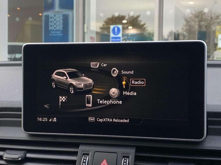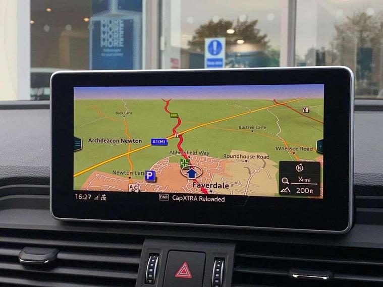 Audi connect, Audi drive select, Audi smartphone interface, Driver information centre with colour display in instrument panel, Electric power steering, Power tailgate, Remote electric boot opening/closing, SD card based MMI navigation, Service interval indicator, Voice control system, Diesel particulate filter, 2 USB ports, Audi sound system, Auxiliary input socket, CD player, DAB Digital radio, MMI radio plus with 7" colour MMI screen and MMI controller, Acoustic windscreen, Aluminium roof rails, Aluminium sill plates, Auto dimming rear view mirror, Black high gloss front air inlet in matt aluminium effect, Body colour bumpers, Body colour door mirrors, Body colour rear diffuser insert, Chrome exhaust tailpipe, Electric headlight adjustment, Electrically adjustable and heated door mirrors, Front and rear electric windows, Front fog lights, Headlight range control, Headlight washers, Honeycomb side air inlet in titan black, Light and rain sensor for auto activation of lights and windscreen wipers, Loading sill protector in stainless steel, Privacy glass with front acoustic glazing, Rear diffuser strip in matt aluminium silver, Rear spoiler, Rear wiper, S Line side skirts, Selenite silver underbody guard, Twilight grey matt radiator grille with matt aluminium horizontal chrome struts, 3 rear headrests, 3 zone climate control, 4 way electric lumbar support for driver and front passenger, 40:20:40 split folding rear bench seat, Black cloth headlining, Front centre armrest with 12v socket, Front sports seats, Front/rear floor mats, Height adjustable driver's seat, Height adjustable front head restraints, Illuminated door sills, Isofix front passenger and rear seat preparation, Jack and tool kit, Load compartment cover, Luggage compartment carpet, Matt selenite silver door inserts, Perforated leather gearknob, Reach + rake adjustable steering column, Removable luggage compartment floor, Removable net partition, Roller blind loadspace cover, Stainless steel pedals, Sunvisors with vanity mirrors, Non Smokers pack, 3 point seatbelts on all seats, ABS, Curtain airbags, Driver and passenger airbags, Driver and passenger side airbags, Electromechanical parking brake, ESC with ASR, ESP, First aid kit, Front passenger airbag deactivation, Hill descent control, Seat belt force limiter, Seatbelt warning lamp, Traction control, Tyre pressure monitor, Warning triangle, Keyless Go access/ignition system, Locking wheel bolts, Remote central locking, Thatcham category 1 alarm + immobiliser, Contrast stitching,