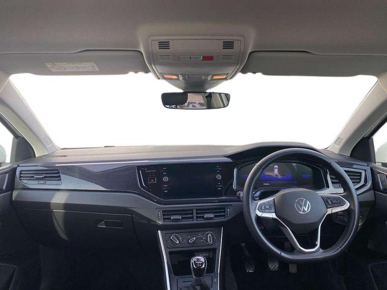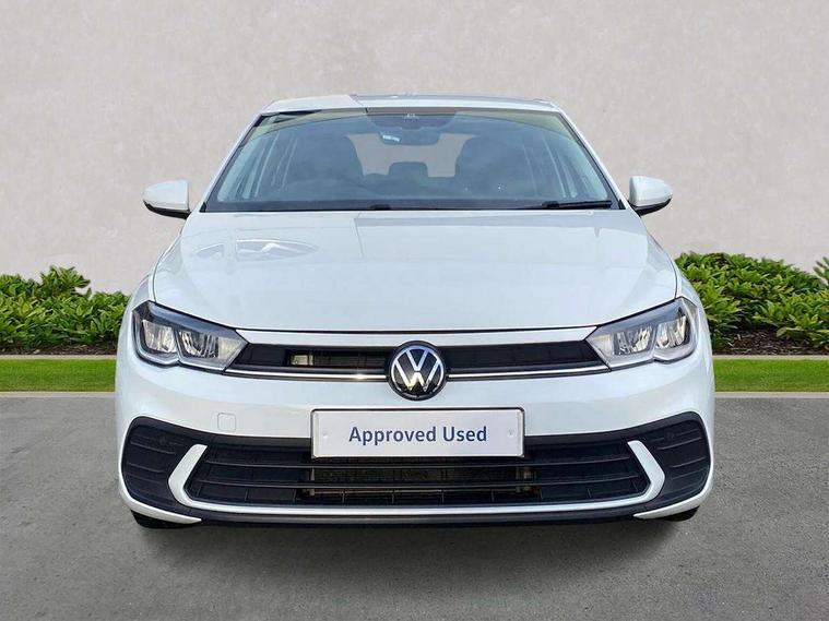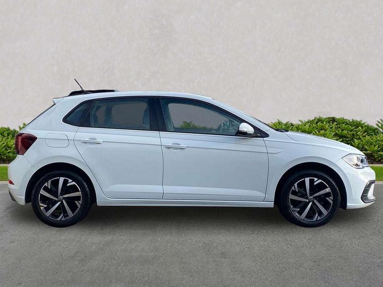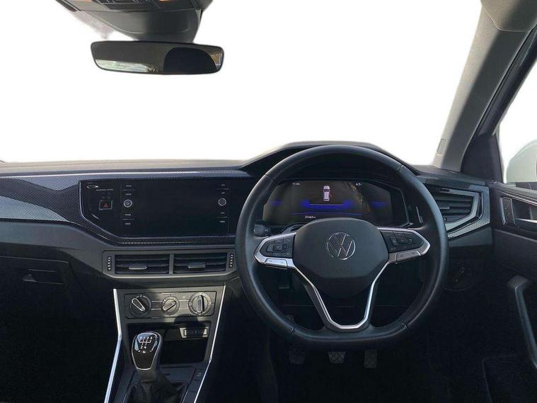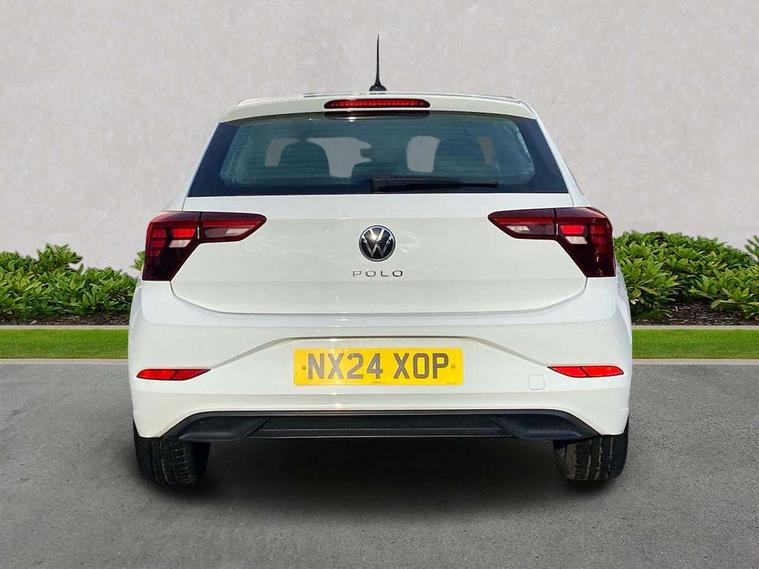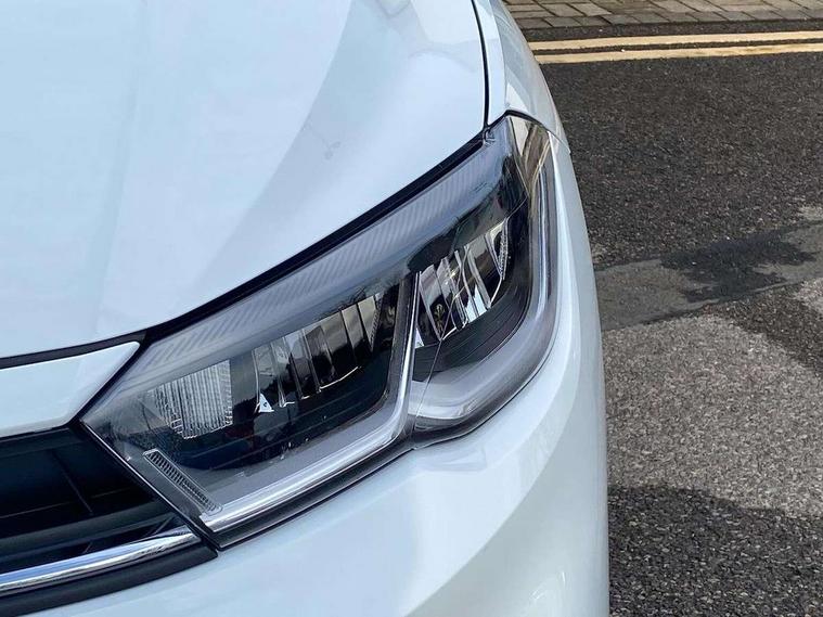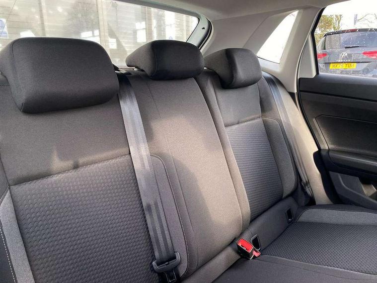 Adaptive cruise control without follow-to-stop and speed limiter, Advanced driver attention and drowsiness monitor, Bluetooth mobile phone interface, Dynamic road sign display, Emergency call service, Power assisted speed sensitive steering, Preparation for navigation system with media and internet package, Preparation for We connect and We connect plus, Speedo and rev counter, electronic odometer, trip, service interval display and exterior temperature gauge, Standard rear axle, Travel Assist - Lane keeping system and traffic jam assist, Travel assist including emergency assist, Trip computer, Warning signal and warning light for front and rear seatbelts not fastened, Washer fluid level indicator, Wireless app connect, Front wheel drive, Rear shock absorpion, Start-stop system with battery regeneration (recuperation - energy recovery during braking), DAB Digital radio, Diversity antenna for FM reception, Front and rear 6 speakers, Automatic dimming interior rear view mirror, Automatic headlight control with LED separate daytime running lights with coming/leaving home function, Body colour bumpers with chrome inserts, Body colour door handles, Body colour door mirrors, Electric front windows, Engine badge deletion, Headlight range adjustment, Heat insulating and laminated safety glass windshield, Heat insulating darkened glass in side and rear windows, Heat insulating glass windscreen, LED Headlights, LED rear combination lamps, Power folding adjustable/heated exterior mirrors and front passenger exterior mirror lowering function, Rain sensor, Rear electric windows, Rear fog light, Rear side wing doors, Rear windscreen washer and wiper with interval delay, Third brake light, 12V power socket in centre console, 2 front and 2 rear reading lights with switch off delay and dimmer, 2 USB-C ports in the front, 2 USB-C charging sockets on the center console in the rear, 3 rear head restraints, 60/40 split folding rear seat and rear seat bench not split, Ceramique roof lining, Chrome plated radiator grille inserts, air vent surrounds and light switch surrounds, Door and side trim panel, Driver and front passenger seat height adjustment, Driver/passenger sunvisors with illuminated vanity mirrors, Front centre armrest, Front seat backrest storage pockets, Front standard seats, Handbrake lever handle in leather, Hartley/Thomas cloth upholstery, Headliner in recycled material, Isofix child seat preparation easy-fit (for two outer rear seats, and front passenger seat) compatible with I-size, Leather trimmed gear knob, Luggage compartment cover, Luggage compartment lighting, Removable luggage compartment floor, Single front passenger seat, Standard climatic zones, Standard pedal cluster, Three spoke leather wrapped multifunction steering wheel, Light and vision pack - Polo, 3 point height adj front seatbelts + pretensioners, 3x3 point rear seatbelts, ABS, Driver and front passenger airbag with front passenger airbag deactivation, Drivers and front passengers safety optimised head restraints, ESC (Electronic stability control) + EDL (Electronic Differntial lock) and ASR (Traction control), Extended and predictive pedestrian/ cyclist protection, Front assist with autonomous emergency braking (for Adaptive Cruise Control ACC up to 130 mph), Front curtain and side airbags with center airbag, Front disc brakes, Hill hold control, Manual child lock in rear doors, Rear drum brakes, Single tone horn, Tyre pressure loss indicator, Alarm with interior protection, Anti-theft alarm system with interior monitoring, backup horn, and towing protection, Anti-theft wheel bolts, Electronic engine immobiliser, Lava stone black gloss/matt decorative inserts in dash and front door panels, Low rolling resistance tyres,