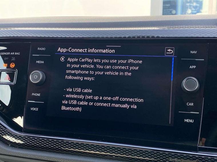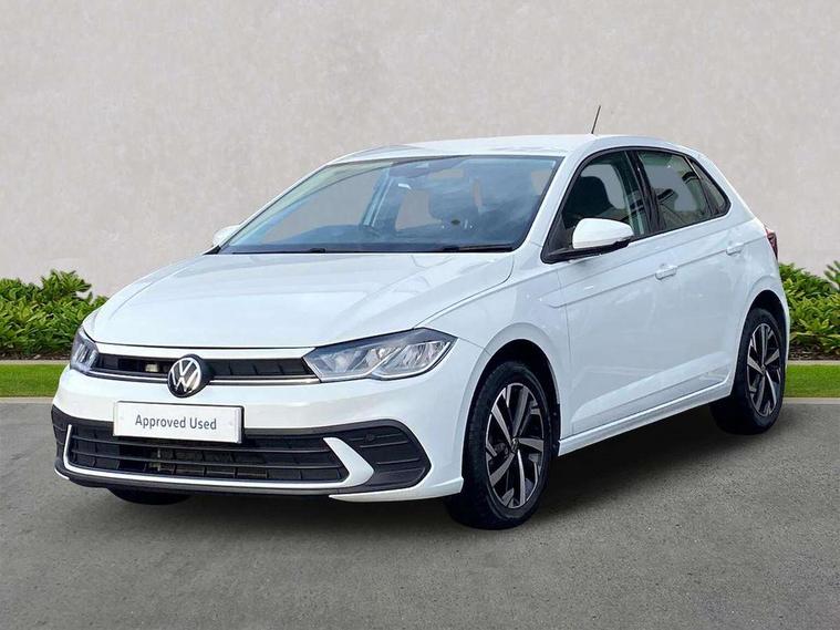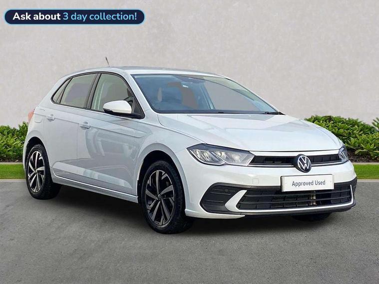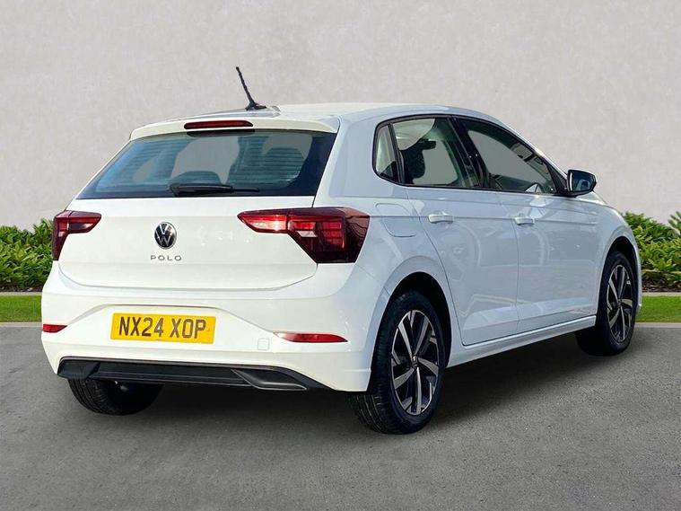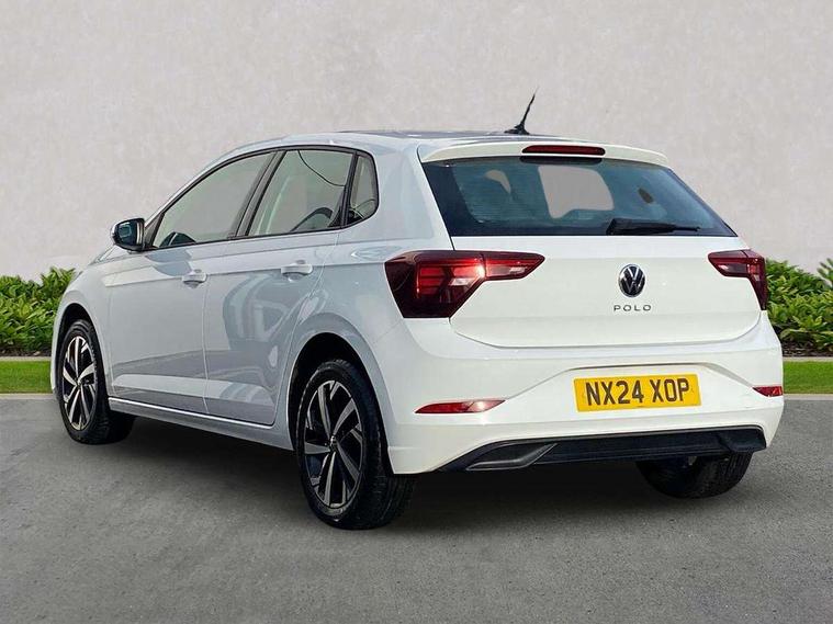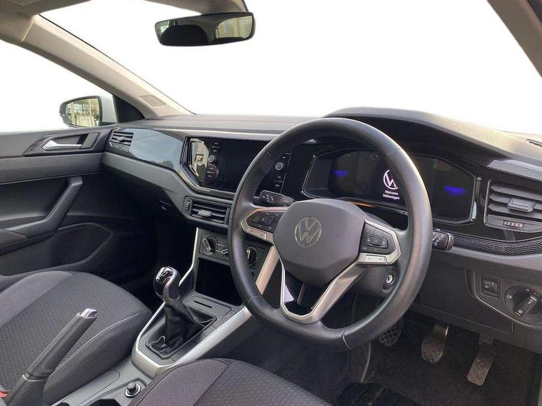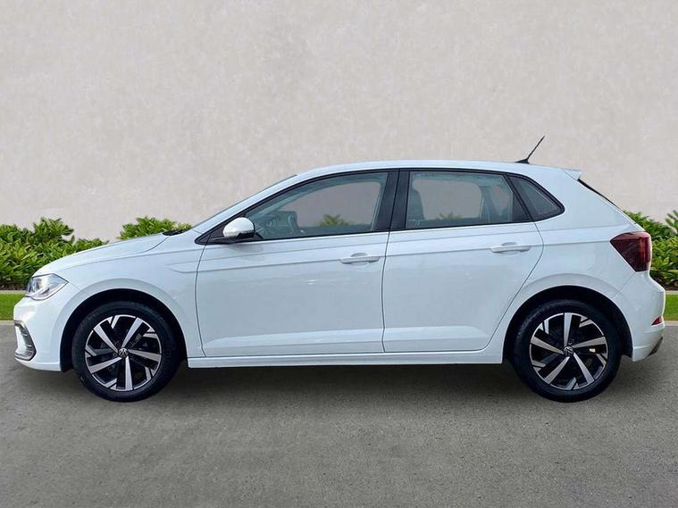 Adaptive cruise control without follow-to-stop and speed limiter, Advanced driver attention and drowsiness monitor, Bluetooth mobile phone interface, Dynamic road sign display, Emergency call service, Power assisted speed sensitive steering, Preparation for navigation system with media and internet package, Preparation for We connect and We connect plus, Speedo and rev counter, electronic odometer, trip, service interval display and exterior temperature gauge, Standard rear axle, Travel Assist - Lane keeping system and traffic jam assist, Travel assist including emergency assist, Trip computer, Warning signal and warning light for front and rear seatbelts not fastened, Washer fluid level indicator, Wireless app connect, Front wheel drive, Rear shock absorpion, Start-stop system with battery regeneration (recuperation - energy recovery during braking), DAB Digital radio, Diversity antenna for FM reception, Front and rear 6 speakers, Automatic dimming interior rear view mirror, Automatic headlight control with LED separate daytime running lights with coming/leaving home function, Body colour bumpers with chrome inserts, Body colour door handles, Body colour door mirrors, Electric front windows, Engine badge deletion, Headlight range adjustment, Heat insulating and laminated safety glass windshield, Heat insulating darkened glass in side and rear windows, Heat insulating glass windscreen, LED Headlights, LED rear combination lamps, Power folding adjustable/heated exterior mirrors and front passenger exterior mirror lowering function, Rain sensor, Rear electric windows, Rear fog light, Rear side wing doors, Rear windscreen washer and wiper with interval delay, Third brake light, 12V power socket in centre console, 2 front and 2 rear reading lights with switch off delay and dimmer, 2 USB-C ports in the front, 2 USB-C charging sockets on the center console in the rear, 3 rear head restraints, 60/40 split folding rear seat and rear seat bench not split, Ceramique roof lining, Chrome plated radiator grille inserts, air vent surrounds and light switch surrounds, Door and side trim panel, Driver and front passenger seat height adjustment, Driver/passenger sunvisors with illuminated vanity mirrors, Front centre armrest, Front seat backrest storage pockets, Front standard seats, Handbrake lever handle in leather, Hartley/Thomas cloth upholstery, Headliner in recycled material, Isofix child seat preparation easy-fit (for two outer rear seats, and front passenger seat) compatible with I-size, Leather trimmed gear knob, Luggage compartment cover, Luggage compartment lighting, Removable luggage compartment floor, Single front passenger seat, Standard climatic zones, Standard pedal cluster, Three spoke leather wrapped multifunction steering wheel, Light and vision pack - Polo, 3 point height adj front seatbelts + pretensioners, 3x3 point rear seatbelts, ABS, Driver and front passenger airbag with front passenger airbag deactivation, Drivers and front passengers safety optimised head restraints, ESC (Electronic stability control) + EDL (Electronic Differntial lock) and ASR (Traction control), Extended and predictive pedestrian/ cyclist protection, Front assist with autonomous emergency braking (for Adaptive Cruise Control ACC up to 130 mph), Front curtain and side airbags with center airbag, Front disc brakes, Hill hold control, Manual child lock in rear doors, Rear drum brakes, Single tone horn, Tyre pressure loss indicator, Alarm with interior protection, Anti-theft alarm system with interior monitoring, backup horn, and towing protection, Anti-theft wheel bolts, Electronic engine immobiliser, Lava stone black gloss/matt decorative inserts in dash and front door panels, Low rolling resistance tyres,