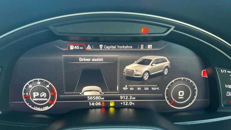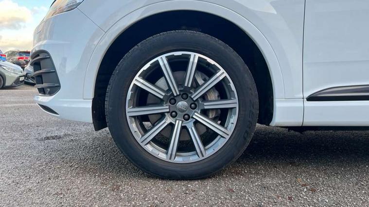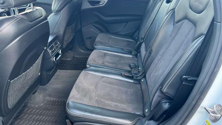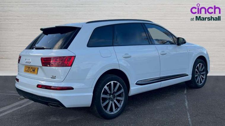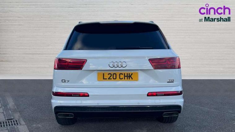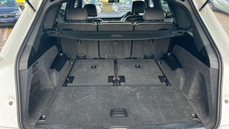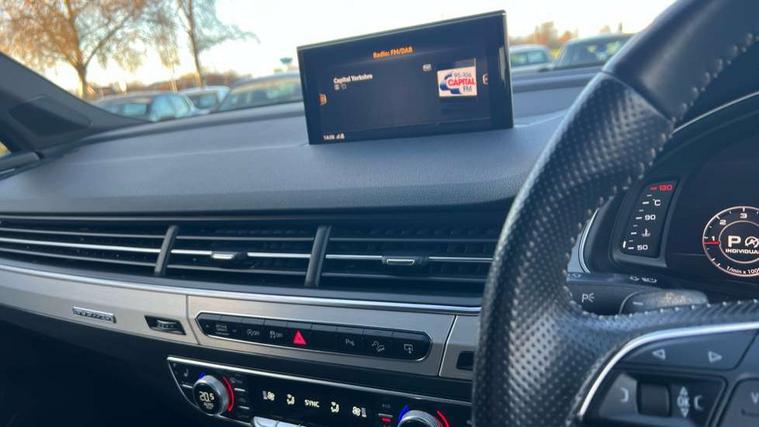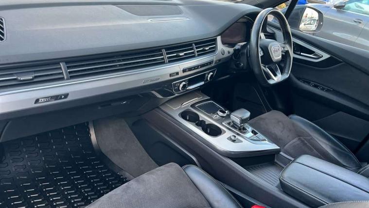 Audi drive select, Audi smartphone interface, MMI - Multi Media Interface control system, MMI navigation plus with touch and 8" colour display, DVD, SD card reader, 10GB music storage, Mobile phone preparation with bluetooth interface, Remote electric boot opening/closing, Service interval indicator, Servotronic speed related PAS, Speed limiter, Voice control system, 2 USB ports, Audi music interface, Aux-in socket, CD player, DAB digital radio module, MMI radio plus, Acoustic windscreen, Auto dimming rear view mirror, Body coloured bumpers, Dynamic rear indicators, Electric front+rear windows, Headlight washers, High beam assist, LED daytime running lights, LED tail lights, Loading sill protector in stainless steel, Platinum grey front lip spoiler, Rain and light sensors, Rear wiper, Roof spoiler, S Line body styling, 2 cupholders in front centre console, 35/30/35 split fold 2nd row seats, 4 way electrically adjustable lumbar support for drivers seat, 4 way electrically adjustable lumbar support for front passenger seat, Door sill trims with S line logo, Electric adjustable front seats, Four zone electronic climate control, Front ashtray and cigar lighter, Front centre comfort armrest with storage + cupholders, Front head restraints, Front sports seats, Gearshift paddles, Heated front seats, ISOFIX on front passenger and rear outer seats, Leather gear knob, Rear centre armrest with 2 cupholders, Rear headrests, Stainless steel pedals, Sunvisors with illuminated vanity mirrors, Top tether anchor plate for isofix child seat, Interior light pack - Q7, 3 point seatbelts on all seats, ABS+Electronic Brake force Distribution, Curtain airbags, Driver and passenger airbags, EDL + ASR, Electrically operated child locks on rear doors, Electromechanical parking brake, ESP, Front passenger airbag deactivation, Front side airbags, Hill descent control, Hill hold assist, Seatbelt warning, Traction control, Tyre pressure monitoring system, Warning triangle and first aid kit, Alarm with interior monitoring, Immobiliser, Keyless Go access/ignition system, Locking wheel bolts, Remote central locking, Chrome door inserts,