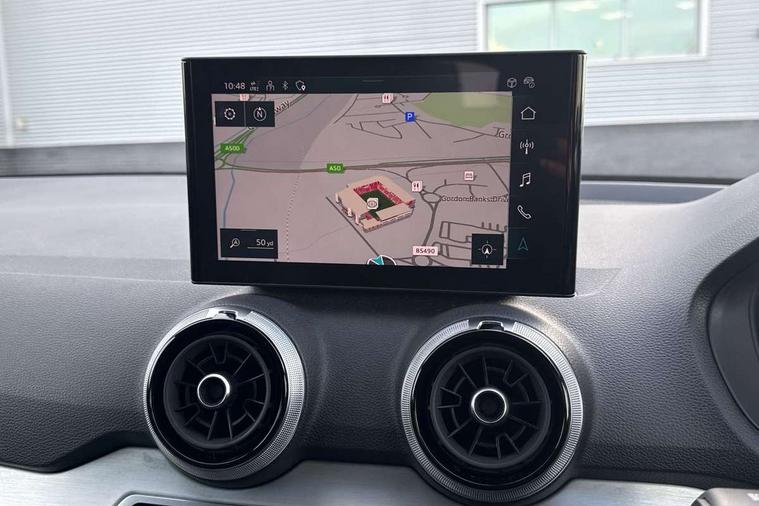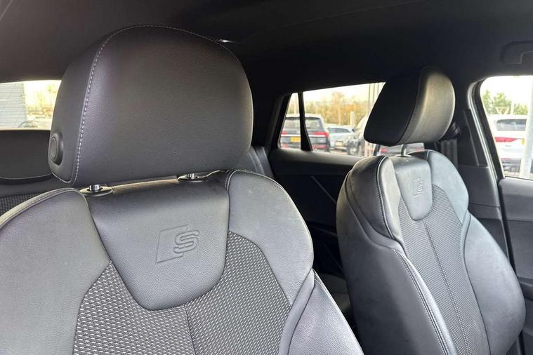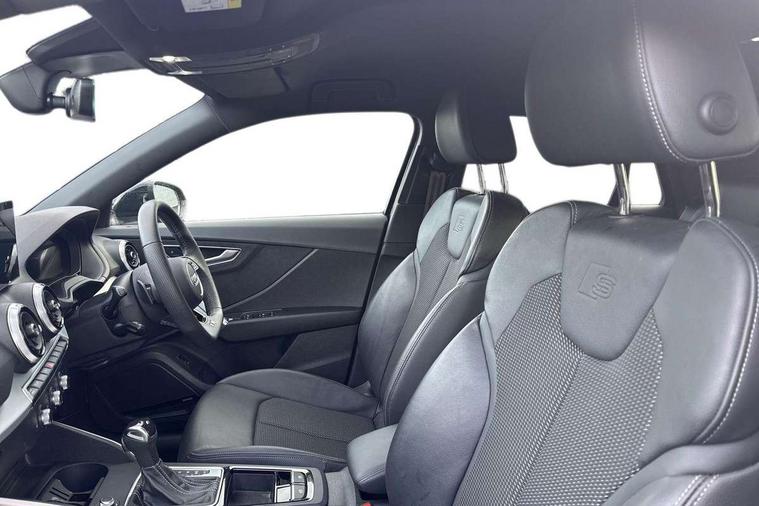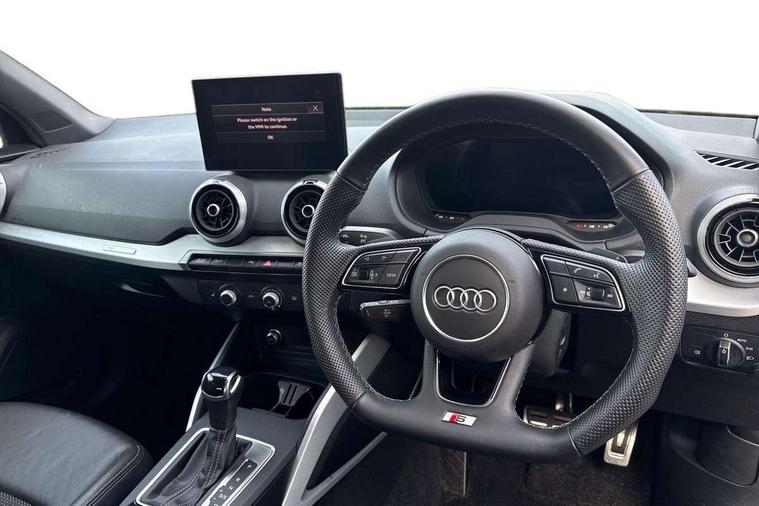3D map display, Audi connect navigation and infotainment includes innovative services, Audi connect remote and control connects your vehicle to your smartphone, Audi drive select: S tronic - power steering assistance + engine + gearshift (modes: comfort, auto, dynamic, efficiency, individual), Audi smartphone interface - Apple carplay/Android Auto, USB connect, 2xSDXC card readers, voice control for navi, telephone, music and 3rd party apps, Audi virtual cockpit, Automatic start/stop system with recuperation, Bluetooth interface includes bluetooth audio streaming, Camera based traffic sign recognition, Cruise control, Distraction and Fatigue warning, E-call, Jukebox hard drive memory for music (10GB), Lane departure warning, MMI navigation plus with 8.8" touchscreen, Natural voice recognition, Power operated tailgate, Progressive steering, Rear parking sensors, Sport suspension, 6 passive loudspeakers, DAB Digital radio, USB type C port, Audi beam, Auto dimming rear view mirror, Black window trims, Bumper in full body colour paint finish, Electrically adjustable, folding, auto dimming and heated door mirrors with integrated LED side indicators, Front windscreen with grey tinted sunband, LED daytime running lights, LED headlights with dipped beam, high beam, position lights, indicators, LED rear lights, LED third brake light, Privacy glass - dark tinted rear and rear side windows from B-pillar backwards, Rear side wing doors, Rear wiper, Variable front intermittent wipers, Wheel arch trims in manhattan grey, 12V socket in front, 3 seat bench in 2nd row, 3 spoke flat bottomed multi-function leather sport steering wheel with gear shift paddles, 4-way electric lumbar support for front seats including manual seat height adjustment for both front seats, 60/40 split folding rear seat bench, Black carpets, Black cloth headlining, Front and rear head restraints, Front centre armrest, Front sport seats, Front/rear floor mats, Height/reach adjust steering wheel, Illuminated door sill trims with S logo, ISOFIX child seat mounting in front passenger and rear outer seats, Manual air conditioning, Single front passenger seat, Stainless steel pedals, Black styling pack - Q2, 3x3 point rear seatbelts, 6 airbags - Front, curtain and front side airbags, Electromechanical parking brake, Electronic stabilisation control including ABS, ASR and EDL, Front passenger airbag deactivation, Hill hold assist, Pre-sense front with pedestrian recognition, Seatbelt monitoring, Tyre pressure warning light with visual and acoustic warning, Warning triangle and first aid kit, Anti theft alarm, Anti theft wheel bolts, Electronically operated child locks, Remote central door locking, Aluminium interior element, Black dashboard, Gloss black centre console, Matt brushed aluminium trim inlays, Tool kit,