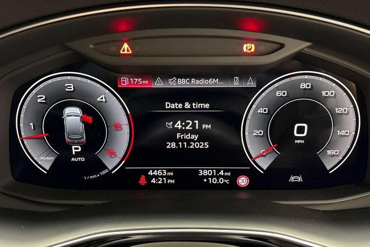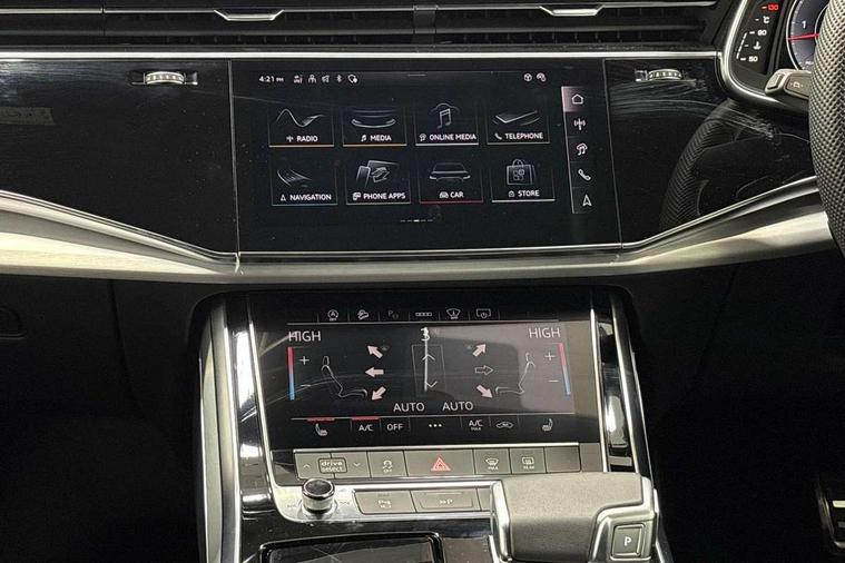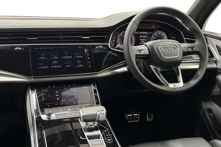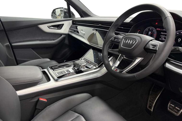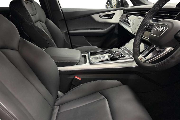Audi connect safety and service (e-call), Audi connect with Amazon Alexa Integration, Audi drive select (Auto, Comfort, Dynamic, Efficiency, Individual, Off-road and All road), Audi phone box light with wireless charging, Audi virtual cockpit - 12.3" high-resolution LCD display with fully customisable instrument cluster, Bluetooth interface, Camera based traffic sign recognition, Electromechanical power steering, MMI navigation plus with MMI touch screens includes 10.1" and 8.6" screens with haptic feedback, Natural voice recognition, Operating buttons in Matte black, Parking system plus with 360 degree display (front, rear and side sensors) - acoustic and visual park assist system, Power operated tailgate, Rear view camera, Smartphone interface includes wireless Apple carplay/Android Auto, Start/stop system, 48V Mild hybrid technology, Adaptive air suspension, Quattro all wheel drive with self locking centre differential, Audi music interface - front 2 USB-C ports with charger and data functions, Audi sound system with 6 channel amplifier, 180 watt amplifying capacity and 10 loudspeakers including subwoofer, DAB digital radio module, Aluminium roof rails, Aluminium window trim, Auto dimming frameless rear view mirror, Body coloured door mirrors, Electrically adj heated/folding + automatically dimming exterior mirrors with memory + automatic kerb side function for passenger side exterior mirror, Heat insulating glass in windshield, Integrated LED indications in door mirrors, LED 3rd brake light, LED daytime running lights, LED rear tail lights, Loading edge protection in stainless steel, Matrix LED headlights with dynamic front and rear indicators, Privacy glass - dark tinted rear and rear side windows from B-pillar backwards, Rear side wing doors, Rear wiper, S Line badge on wings, S Line body styling, S line bumpers in full body colour paint finish, S line roof spoiler, S line styling side ventilation grilles and side skirts, 2 seat bench in 3rd row, 2 zone automatic climate control, 3 seat bench in 2nd row, 7 seat layout with ISOFIX points for the front passenger seat and rear passenger seat, Black carpets, Black cloth headlining, Comfort front centre armrest, Electric adjustable front seat with 4 way lumbar support, driver memory functionality, Folding rear seats, Front head restraints, Front/rear floor mats, Heated front seats, Illuminated door sill trims with S logo, ISOFIX child seat mounting for front passenger seat and 2 outer rear seats with top tether child seat mounting for all 3 rear seats, LED interior ambient lighting, Luggage compartment cover, Luggage compartment sill protection in stainless steel, Rear head restraints, Rear seat bench plus for the second row, with forwards/backwards sliding adjustment and backrest angle adjustment, Single front passenger seat, Stainless steel pedals, Sunvisors with illuminated vanity mirrors, 3 point seatbelts on all rear seats, Audi pre sense front, Child locks on rear doors, Convenience key with safelock and gesture tailgate, Driver and front passenger, front side and curtain airbags, Electromechanical parking brake, Electronic Stabilisation Control (ESC) including ABS, ASR and EDL, Extended pedestrian protection measures, Hill hold assist, Seatbelt reminder, Tyre pressure loss indicator, Warning triangle and first aid kit, Anti theft alarm with tow away protection, Anti-theft wheel bolts and wheel loosening detection, Keyless Go, Remote central locking, Black dashboard, Darkened matt brushed aluminium inlays, Tool kit, Tyre repair kit,