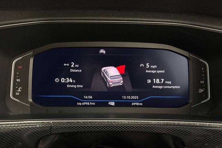 'Lights On' Reminder warning buzzer, 10.25" Digital cockpit pro, Advanced driver attention and drowsiness monitor, Blind spot monitoring, Car information display, Driver profile selection including ECO function, Dynamic road sign display, E-Sim card for online connectivity, eCall emergency call system, Front and rear parking sensors, Front assist, forward collision warning, autonomous emergency braking and speed limiter, Low washer fluid warning light, Multifunction computer with visual gear change recommendation for fuel consumption, Multifunction front facing camera for distance control, Operating permit alteration, Power assisted steering, Predictive adaptive cruise control, Preparation for navigation system with media and internet package, Preparation for We connect and We connect plus, Semi-automated driving assistance, travel assist including lane keeping system Lane Assist and emergency assisst, Speedo, rev counter, electronic odometer, trip, service interval display, exterior temperature and fuel gauge, Warning sound and light for doors and tailgate open, Warning sound and light for front seatbelts unfastened, Wireless Car net app connect with Apple CarPlay, combined functionality of Apple CarPlay/Android Auto and MirrorLink, Wireless charging, Misfuel prevention device, Start-stop system with battery regeneration (recuperation - energy recovery during braking), 2 USB C ports in front, 2 USB charging sockets on the centre console in the rear charging capacity upto 45W, Diversity antenna for FM reception, Music playback - MP3, WMA and AAC files, Radio, Automatic dimming interior rear view mirror, Automatic hazard lights activation under emergency braking, Automatic headlight control with LED separate daytime running light and coming home and leaving home feature, Body colour door handles, Body colour door mirrors, Body coloured bumpers, Dynamic headlight range control with self adjusting whilst driving, Electric folding door mirror, adjustable, heated with front passenger exterior mirror lowering function, Exterior mirrors convex on the left and aspherical on the right, Front and rear electric windows, Front door sill protectors with R-Line logo, Galvanised body, Heat insulating and laminated safety glass windshield, Heat insulating darkened glass in side and rear windows, High Beam Assist, automatic sensing for switching between dipped and main beam, LED rear combination lights, LED third brake light, Lower door sills and door pillars in black, Privacy glass for rear side windows and rear window, Rain sensor, Rear fog light on one side, reversing light on both sides, Rear side wing doors, Rear window aerial, Rear window wiper with intermittent control, Reflectors in all doors, Scuff plates, Tailgate with integrated roof spoiler, 12V Accessory socket in centre console, 2 Front and rear reading lights incorporating LED technology, 3 rear head restraints, 3 seat bench in 2nd row, 60/40 split folding rear seat backrest, Air care climatronic 2 zone air conditioning system, Ambient lighting, Brushed stainless steel pedals, Chrome plated radiator grille inserts, air vent surrounds and light switch surrounds, Cloth upholstery, Comfort front sport seats, Door and side trim panel, Drawer under drivers seat, Driver and front passenger sunvisor with vanity mirror, Dust and pollen filter, Front + rear carpet mats, Front centre armrest with storage compartment, Front footwell illumination, Front seat back storage pockets, Glove compartment door with light, Heated front seats, Heating and fresh air system with 4 stage blower, Height/reach adjust steering wheel, Instrument lighting white adjustable panel illumination, Interior light with switch off delay and dimmer, Isofix anchors for child seats on outer rear seats and front passenger seats, Leather gearshift handle, Leather wrapped multifunction steering wheel, Luggage compartment floor, Luggage compartment lighting, Manual front seats with height adjustment, Padded dashboard, Removable luggage compartment cover, Single front passenger seat, Storage compartment in drivers and front passengers door, Titanium black roof lining, Unsplit sliding rear seat bench, 3 point outer rear seat belts with ECE label, 3 Point seatbelt for centre rear seat, Anti-lock Braking System (ABS) with Hydraulic Brake Assist (HBA), Automatic post collision braking system, Disc brakes in front, Disc brakes in rear, Driver and front passenger safety-optimised head restraints, Drivers and Front Passengers airbags with front passengers airbag deactivation switch, ESC with EDL and ASR (traction control), Extended and predictive pedestrian/cyclist protection, Front and rear passenger curtain airbag system including front side airbags, Height adjustable front 3 point seatbelts + pretensioners, Hill start assist, Pre crash preventive occupant protection, Proactive passenger protection system in combination with front assist, Rear door child safety locks, Rigid safety cell with front and rear crumple zones, Single tone horn, Tyre pressure loss indicator, Volkswagen roadside assistance, Alarm with interior protection, Anti theft alarm system, Electronic engine immobiliser, Remote tailgate unlocking using key fob, Titanium Black Decorative inserts - R Line, Low rolling resistance tyres,