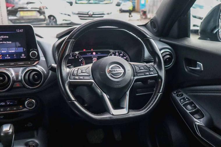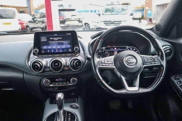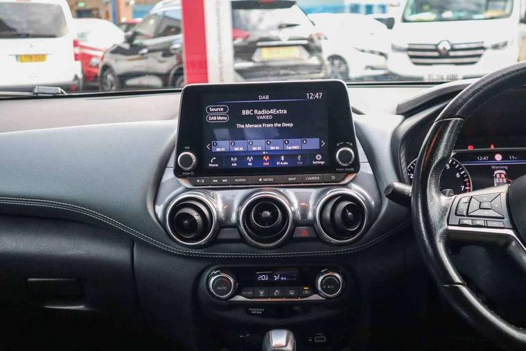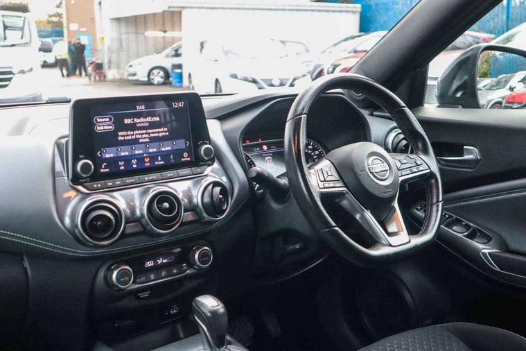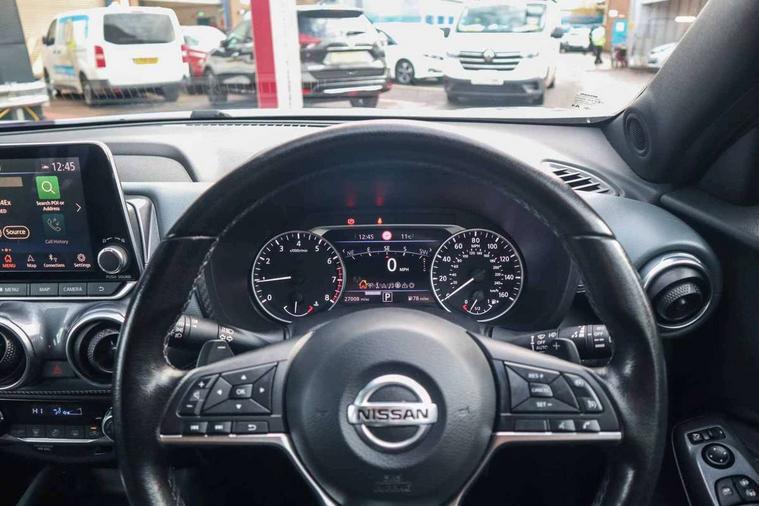 7" full colour TFT screen combimeter, Apple CarPlay and Google Android auto, Drive modes select (Eco, normal and sport), Emergency and breakdown call, Front parking sensor, Idle start/stop system, Intelligent lane intervention, Lane departure warning system, Nissan connect 8" touch screen entertainment system, Nissan connect nav with TomTom traffic, Nissan connect services and Wifi connection, Outside temperature sensor, Power Steering, Rear parking sensor, Traffic sign recognition, Trip computer, Voice recognition, Gasoline particulate filter, 6 speakers, Bluetooth system, USB, Aux-in and 12V socket, DAB Digital radio, Rear console USB port, Auto dimming interior rear view mirror, Auto headlights, Automatic hazard signal with emergency stop signal, Body colour bumpers, Body colour door handles, Electrically adjustable door mirrors with integrated indicators, Follow me home headlights, Front and rear electric window with one touch driver window, Heated and auto folding door mirrors, High beam assist, LED daytime running lights, LED headlamps, LED rear fog lamp, LED rear lamps, Rain sensor windscreen wipers, Rear privacy glass, Rear side wing doors, Rear wiper, Three blink turn signal, 3 height adjustable rear headrests, 3 seat bench in 2nd row, 60/40 split folding rear seat, Automatic climate control, Card holder on driver sunvisor, Cloth upholstery with black and metallic grey syntech leather inserts, Driver and passenger sliding and reclining seats, Driver side rear coat hanger, Driver/passenger sunvisors and vanity mirrors, Front and rear cabin lights, Front armrest, Front door pockets with bottle holders, Front head restraints, Front/rear passenger grab handles, Grey synthetic leather kneepad, Height adjustable driver's seat, Internal chrome door handles, Leather gearshift knob, Leather steering wheel, Luggage board, Luggage space lighting, Monoform sporty seats, Multifunction steering wheel, Rear door bottle holders, Single front passenger seat, Steering wheel mounted gearshift paddles, Telescopic steering wheel adjustment, Two cupholders in front centre console, Two rear isofix child seat anchorage points with top tether, Welcome light and console tray ambient lighting, ABS with EBD and brake assist, Active ride control, Active Trace Control, Driver and passenger airbags, Driver and passenger side airbags, Electric handbrake with auto hold function, Electronic Stability Programme (ESP), Front and rear curtain airbags, Height adjustable seatbelts, Hill start assist, Intelligent emergency braking with pedestrian and cyclist recognition, Rear door child safety locks, Seatbelt reminder for driver/front passenger and rear seats, Single tone horn, Three 3 point rear seatbelts, Traction control, Tyre pressure monitoring system, VDC Dynamic Vehicle Control, Ventilated rear brake discs, Alarm, Immobiliser, Intelligent key and start push button with walk away lock and approach unlock functions, Remote central locking,