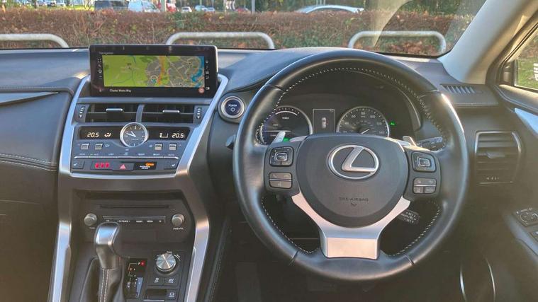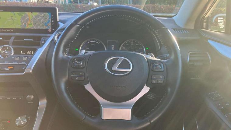 4 driving modes EV/Eco/Normal/Sport, 4 front and 4 rear park assist sensors, 8" display screen with remote touch interface, Analogue clock, Apple car play/Android Auto, Bluetooth telephone connectivity, Electric speed sensitive power steering, Lane change flasher function, Lexus link connected services with available optional wifi, Lexus navigation system, Push button starter, Reversing camera, All wheel drive system, Vehicle Dynamics Integrated Management (VDIM), Vehicle Stability Control (VSC), 2 USB ports, 8 Speakers, AUX socket with VTR compatibility, CD player, DAB Digital radio, Auto dimming interior rear view mirror, Bi LED headlight with Auto high beam, Body adhesive, laser screw welding and laser brazed roof structure, Front and rear one touch power windows, with anti-jam protection, Heated and auto folding door mirrors with turn indicators, Hidden exhaust pipe, LED brake lights and rear lights with emergency brake signal, LED daytime running lights, LED front and rear sequential indicators, Rain sensor windscreen wipers, Roof rails, 12V accessory port centre console and luggage compartment, 2 cupholders in front centre console, 2 map pockets in the rear, 2 x fixed shopping bag hooks in boot, 2 x sun visors with vanity mirror and lamp, 6 tie down hooks in boot, 60/40 split folding rear seat, 8 way driver/passenger electrically adjustable front seats, Adjustable rear seat backrest, Card holder installed in driver and passengers sun visors, Centre armrest with storage box, Dual climate control air conditioning system, Front and rear head restraints, Front and rear textile carpet mats, Heated front seats, Leather gear lever, Leather steering wheel with paddle shifts, LED interior illumination, Rear air vents, Rear centre armrest with 2 cupholders, Self charging hybrid, Tahara leather upholstery, Whiplash Injury Lessening (WIL) feature (active headrest) for seats, 2 x Isofix child rear seat restraints, 3 point ELR front seatbelts with pretensioners, 3x3 point rear seat belts, ABS, Adjustable seat belt anchor points, Driver and front passenger 2 stage airbag, Driver/front passenger side airbags, Drivers knee airbag, EBD + Brake Assist, ECB (Electronically Controlled Brake System), Electronic parking brake, Front and rear curtain shield airbags, Front passenger seat cushion airbag, Hill start assist, Hybrid automatic with 6 stage sequential shift and kick down switch, Lexus safety system - dynamic radar cruise control, pre collision system day and night, lane tracing assist, road sign, automatic high beam, OTA, Passenger airbag cut-off device, Traction control, Tyre pressure warning, 2 x remote key fobs, Anti-theft system with siren, alarm, intrusion sensor, glass breakage sensor, tilt sensor and engine immobiliser, Locking wheel nuts, Speed sensitive auto door locking, Two motion door lock with double lock, VIN Window etching, Silver inlays, Space saver spare wheel,