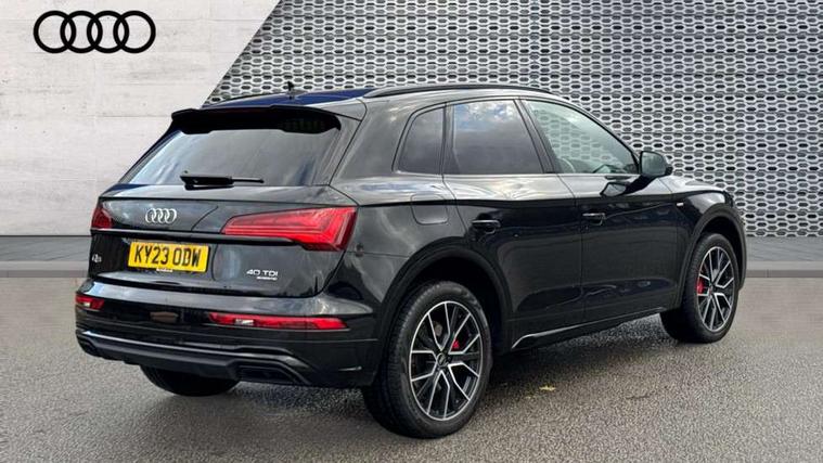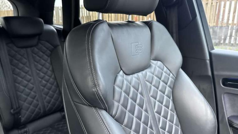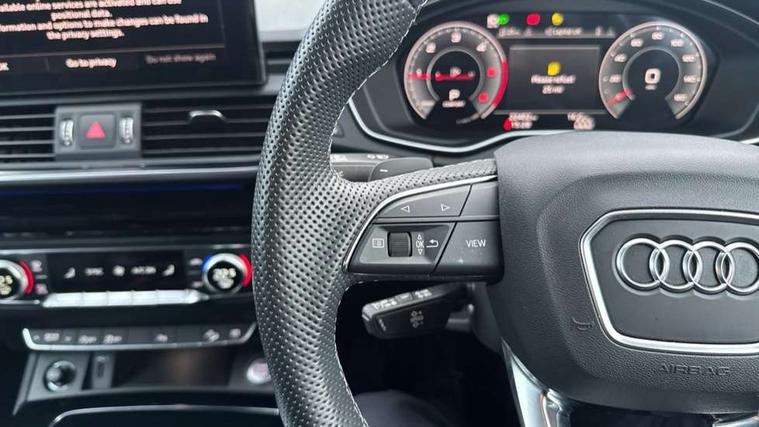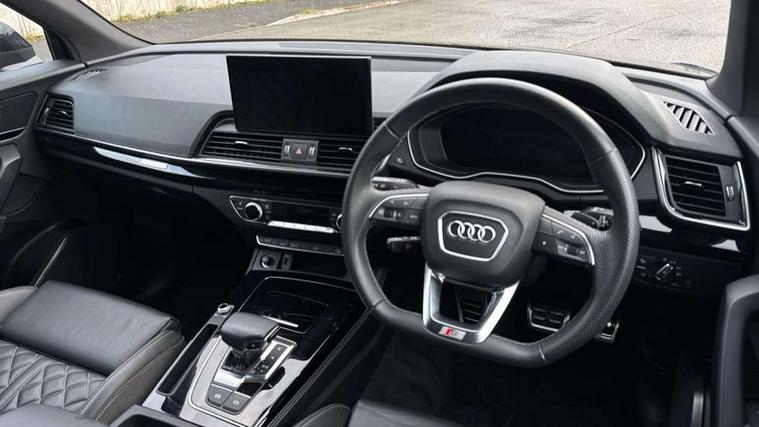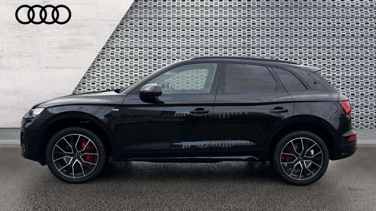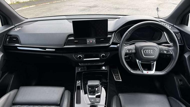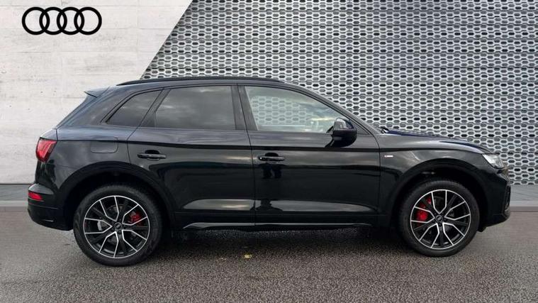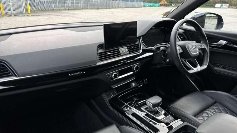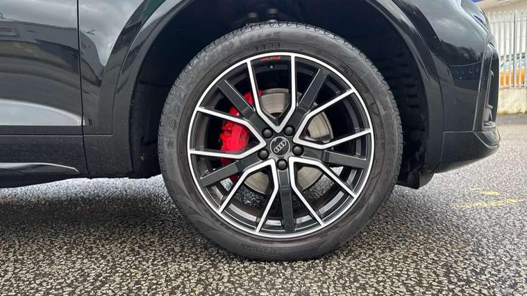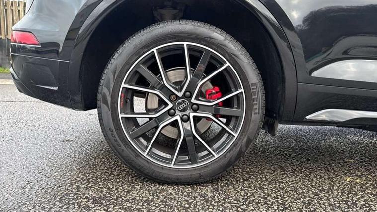 Acoustic front and rear parking sensor, Audi connect safety and service (e-call), Audi connect with Amazon Alexa Integration, Audi drive select, Audi virtual cockpit plus with 12.3" screen and three different layout designs, Audi wireless smartphone interface, Automatic start-stop system with coasting functionality and efficiency programme, Bluetooth interface, Electro - mechanical power assisted steering, MMI navigation plus with 10.1" touch screen, Power tailgate, Reversing camera, Service interval indicator, Voice control system with Audi hotword activation "Hey Audi", Diesel particulate filter, Quattro on demand, S line sports suspension, 8 loudspeakers, DAB Digital radio, Acoustic windscreen, Audi matrix LED headlights with dynamic front and rear indicators, Audi rings at front and rear in black, Audi rings decal on rear doors, Auto dimming door mirrors, Auto dimming frameless rear view mirror, Automatic headlight adjustment, Automatic headlights and windscreen wipers, Black roof rails, Body colour bumpers, Body colour underbody protection, Chrome plated exhaust trims, Daytime running lights, Door sills in Selenite silver, Electric adjustable/heated/folding door mirrors, Front air inlet surrounds in anthracite black, Front and rear electric windows, Headlight washers, High gloss black B pillar trims and triangular rear door trim, High level LED brake light, Rear chrome trim strip below lights, Rear privacy glass and rear side windows, Rear side wing doors, Rear wiper, Roof bars, S Line rear spoiler, 2 x USB charging port with aux input socket, 3 rear headrests, 4 way electric lumbar support for driver and front passenger, 40:20:40 split folding 3 rear bench seat in 2nd row with rear centre armrest, Black cloth headlining, Comfort front centre armrest, Contrast stitching on seats, steering wheel and gear lever gaiter, Deluxe 3 zone electronic climate control, Electrically adjustable front seats, Fine Nappa leather upholstery with diamond pattern contrast stitching + front sport seats with S embossed logo, Front/rear floor mats, Gear lever in black leather, Heated front seats, Height adjustable front head restraints, Height/reach adjustable steering column, Illuminated door sill trims with S logo, Luggage compartment cover, Rear seat bench plus-adjust for forwards/backwards position/backrest angle, cupholders in the armrest, load through hatch and remote backrest release, Removable luggage compartment floor, Single front passenger seat, Stainless steel pedals, Sunvisors with vanity mirrors, Black styling package - Q5 Edition 1, Extended interior upholstery pack - Q5, Extended LED Interior multi coloured Lighting Pack - Q5, 3 point seatbelts on all seats, 6 airbags - Driver, front passenger, curtain and side airbags, Electrically operated child locks on rear doors, Electromechanical parking brake, Electronic stabilisation control including ABS, ASR and EDL, First aid kit with warning triangle and vests, Front and rear brake calipers painted in red, Front passenger airbag deactivation, Hill descent control, Hill hold assist, ISOFIX child seat mounting for front passenger seat and ISOFIX child seat mounting with Top Tether for outer rear seats, Multi collision brake assist, Pop-up bonnet for pedestrian protection, Pre sense city, Seat belt force limiter, Seatbelt monitoring, Tyre pressure warning, Anti theft alarm, Anti-theft wheel bolts, Keyless Go access/ignition system, Remote central locking, Air vents inserts and centre console in gloss black, Piano black finish inlay,