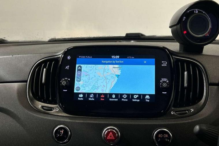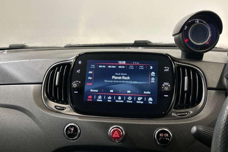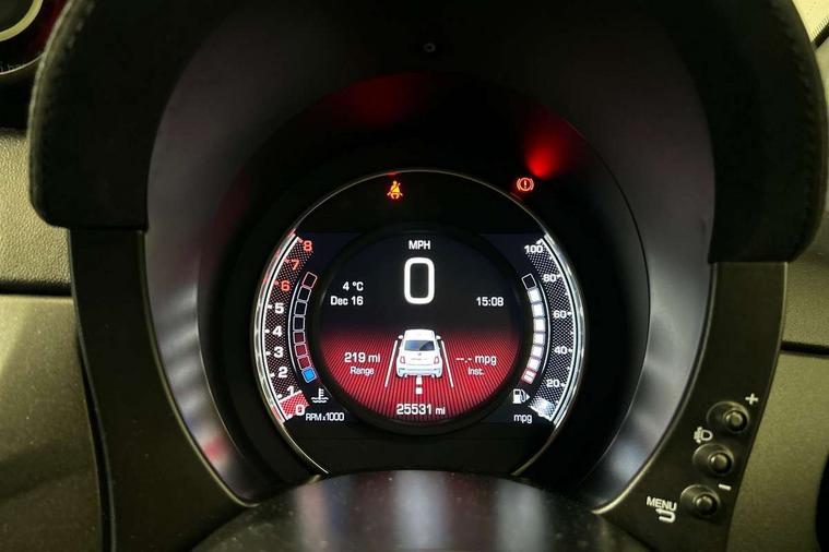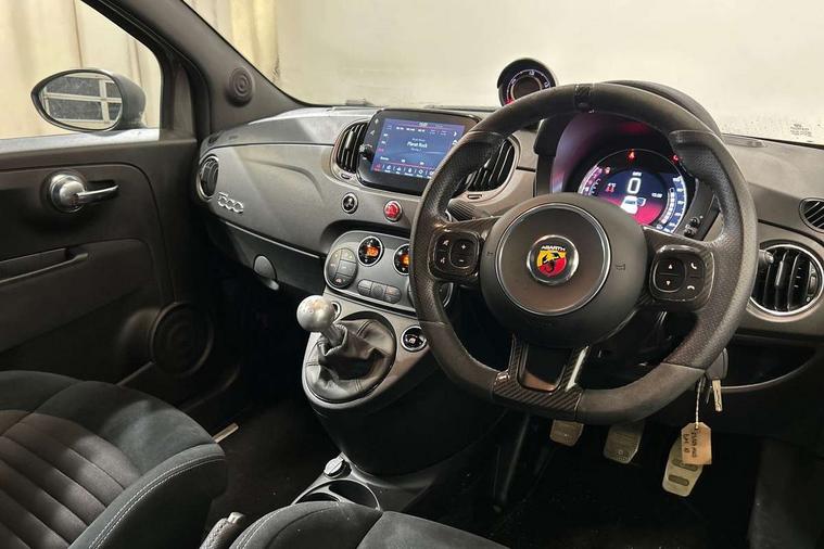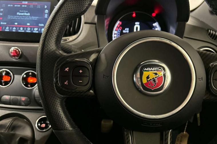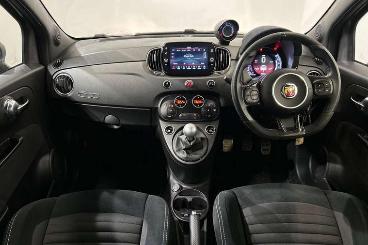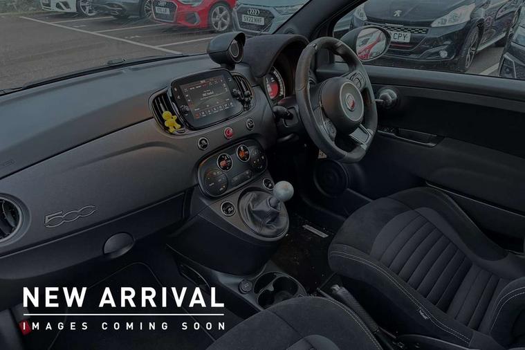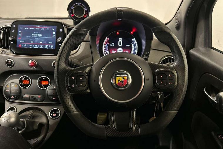 7" TFT instrument display with sports mode, 7" Touchscreen radio with navigation, Bluetooth, audio streaming, USB, Aux-in and DAB, Apple car play/Android Auto, Dualdrive PAS, E-call, Rear parking sensors, Sports button, Trip computer, U-connect access via mobile, Uconnect live service, Wakeup screen for 7" radio, Koni front and rear suspension with Frequency Selective Damping technology, Torque transfer control (TTC), Dark tinted rear windows, Dual mode record monza exhaust system with four tailpipes, Electric adjustable door mirrors, Electric front windows, Front fog lights, LED daytime running lights, Rear wiper, Third brake light, 12V socket, 2 seat bench in 2nd row, Abarth corsa racing seat by sabelt, Aluminium sports pedals, Auto climate control, Front head restraints, Glovebox, Height adjustable steering wheel, High performance BMC air filter, Interior stowage net, Rear headrests, Single front passenger seat, Sports alcantara leather multifunction steering wheel with carbon fibre detailing, 2 x 3-point rear seatbelts, 240x11 mm Drilled rear brake discs, 305x28 mm Drilled and ventilated front brake discs, ABS, Driver and passenger airbags, Drivers knee airbag, ESP + ASR/MSR + HBA + Hill holder, Tyre pressure monitoring system, Window airbags, Alarm, Central locking, Immobiliser, Remote central locking, Alcantara wrapped binnacle, Fix and go kit,