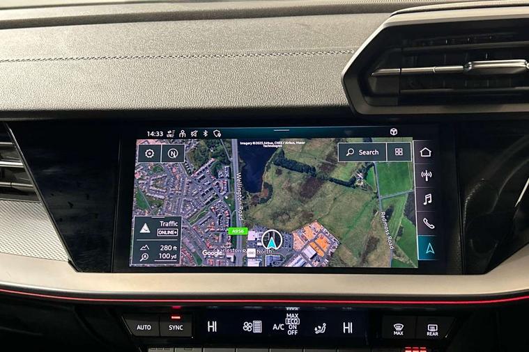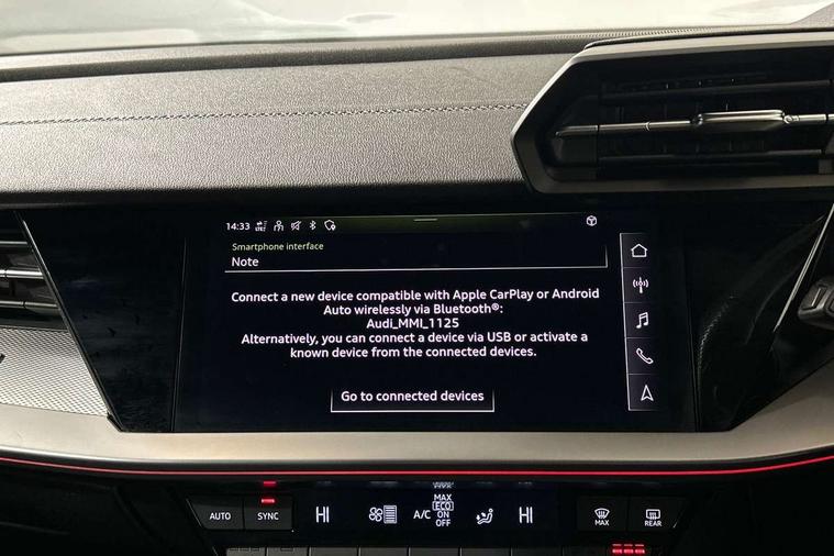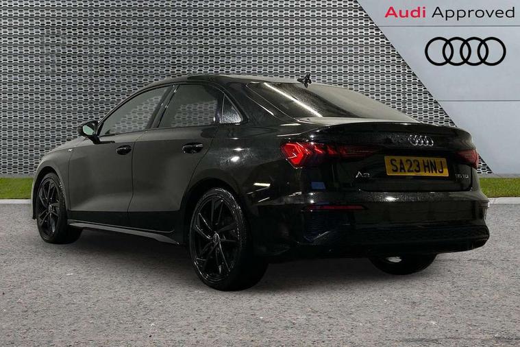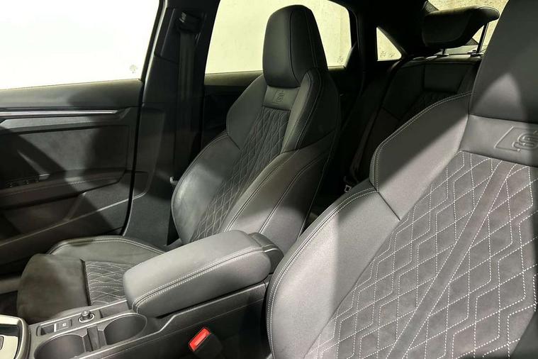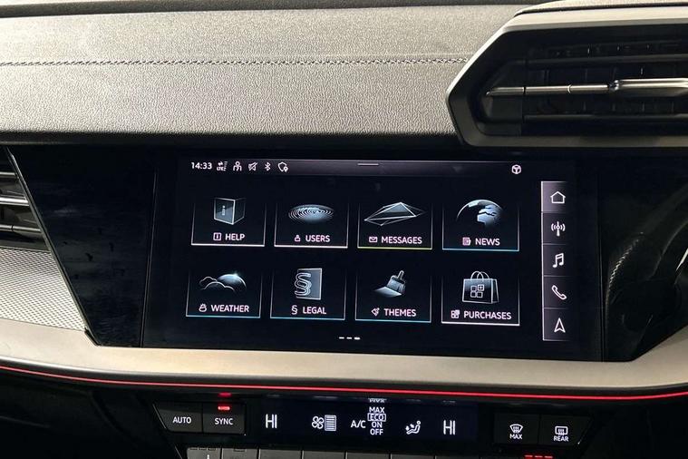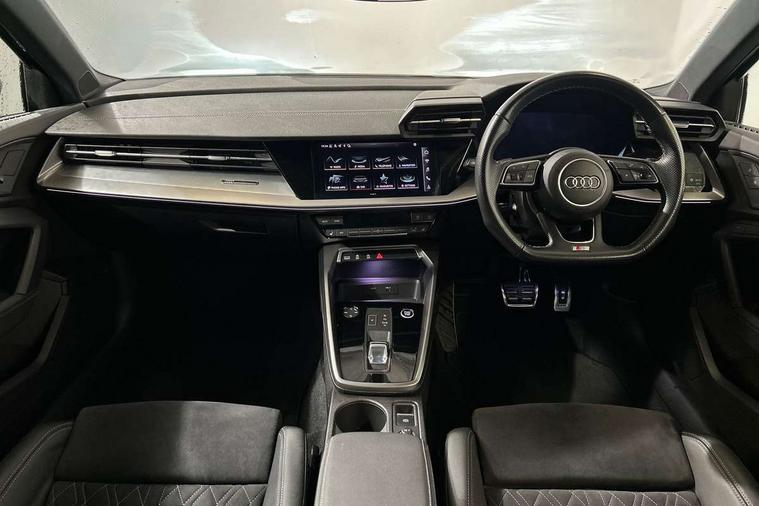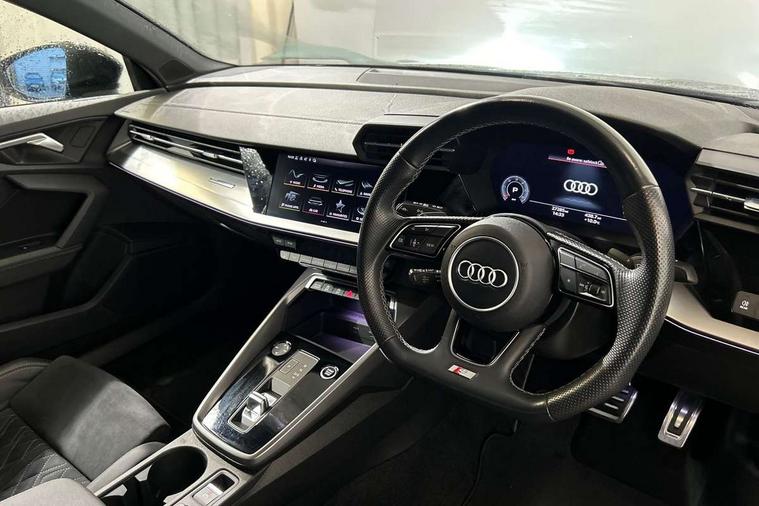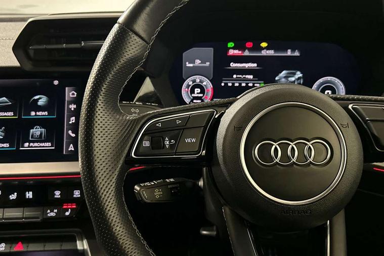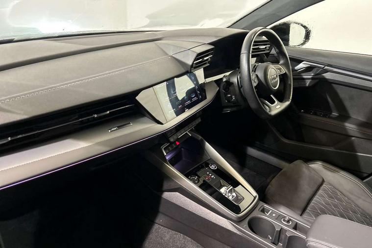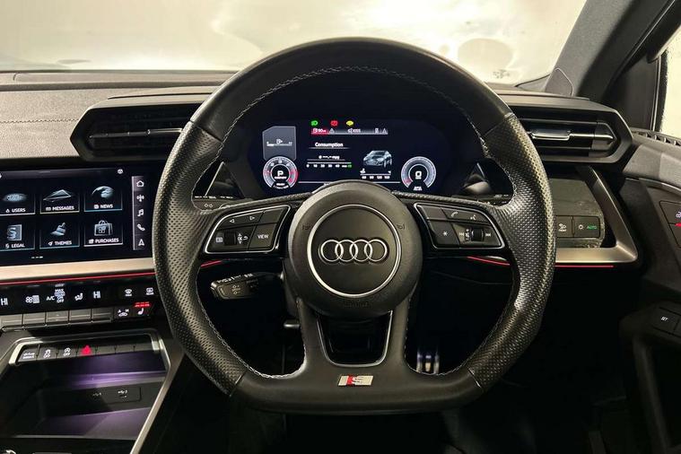 Audi connect emergency call and service, Audi drive select (Auto, Comfort, Dynamic, Efficiency and Individual), Audi smartphone interface, Audi virtual cockpit plus - 12.3" dynamic digital instrument cluster, Automatic start/stop system with recuperation, Bluetooth interface, Collision avoidance assistant, Electromechanical power speed sensitive steering, Lane departure warning system, MMI Navigation Plus with high resolution 10.1" colour touch screen display, Service indicator, Voice control system with natural language interaction, Diesel particulate filter, Sports suspension, 2x USB Type C ports (for charging and data transfer), 6 passive loudspeakers, CD player, DAB Digital radio, 3rd brake light, Acoustic glass windscreen, Audi matrix LED headlights, LED rear lights, dynamic front and rear indicators and headlight cleaning system, Auto dimming frameless rear view mirror, Electrically adj heated/folding + automatically dimming exterior mirrors with memory + automatic kerb side function for passenger side exterior mirror, Front electric windows, Illuminated door sills with aluminium inserts at the front with S logo, Integrated LED indicators in door mirrors, LED daytime running lights, Light and rain sensors, Model and engine designation badges at rear, Privacy glass - dark tinted rear window, rear door and side windows, Rear boot, Rear electric windows, Rear side wing doors, S roof spoiler, 12V socket and storage compartment in front centre console, 3 seat bench in 2nd row, 4 way electrically adjustable lumbar support for driver and front passenger, 40/20/40 split folding rear seat bench with cupholder, Black cloth headlining, Dual zone electronic climate control, Electrically adjustable front seats with memory function for driver's side and exterior mirrors, Front and rear centre armrest in leather, Front and rear headrests, Front/rear floor mats, Heated front seats, Height and reach adjustable steering wheel, Illuminated vanity mirror, Interior lighting - glove compartment light and right hand side, Luggage compartment floor covering, Manual boot compartment lid, Single front passenger seat, Stainless steel pedals and front footrest in black, Aluminium interior elements pack - A3 Saloon, Black styling pack - A3/S3, Dinamica microfibre/mono.pur 550 artificial leather pack - A3 Saloon, Extended ambient lighting pack - A3/S3 Saloon, LED interior lighting pack - A3 Saloon, 3x3 point rear seat belts, Driver and front passenger airbag with passenger airbag deactivation, Electronic Stabilisation Control (ESC) including ABS, ASR and EDL, First aid kit with warning triangle and 2 safety vests, Front side airbags with head airbags and interaction airbag, Hill hold assist, Pre-sense front with pedestrian and cyclist detection, Seatbelt monitoring, Tyre pressure loss indicator, Anti theft alarm, Anti-theft wheel bolts, Electronically operated child locks, Immobiliser, Remote control central locking, Aluminium air vent surrounds, Aluminium trim elements, Dark spectrum aluminium inlays, accent surfaces in the dashboard and centre console in platinum grey silk effect paint finish, 19" 5 arm trapezoid design alloy wheels in matt grey with diamond cut finish,