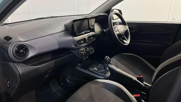Apple car play/Android Auto, Bluelink mobile remote connectivity, Bluetooth connectivity with voice recognition, Cruise control, Driver attention alert system, eCall emergency call system, Forward Collision-Avoidance Assist (FCA) - Pedestrian/Cyclist, Front USB-C charging and USB-A data, Full-width 4.2" LCD instrument cluster, Intelligent speed limit assist, Lane departure warning system with lane keep assist - LKAS, Lane follow assist, PAS, Rear parking sensors, Rear view camera with guidelines, Roadside assistance, Start/Stop function, Tailgate, Trip computer, 2 front/2 rear speakers, Rear USB-C device charger, Steering wheel audio, phone and cruise controls, 1 speed non intermittent rear windscreen wiper, Black finish on B pillars, Body colour door handles, Body coloured bumpers, Body coloured door mirrors, Electric front windows, Electric rear windows, Electrically adjustable and heated door mirrors, Flat metal emblem, Front grille in matte black, Front intermittent wipers, Halogen daytime running lights, Halogen headlights, Headlights inner with Black Blade design, Heated rear window, High beam assist, Indicator light on door mirrors, Rear roof spoiler with integrated LED brake light, Rear side wing doors, 12v power outlet - front, 3 seat bench in 2nd row, 60/40 split folding flat to floor rear seats, Air conditioning, Auto light control, Bottle holders in front/rear doors + front centre console, Cabin and luggage compartment interior lighting, Cloth upholstery, Driver + passenger vanity mirrors, Driver's seat height adjustment, Driver/passenger sunvisors with ticket holders, Floor mats, Front door pockets, Front Head Restraints - Vertical and Horizontal Adjustment, Glove compartment, Height adjustable steering column, Isofix child seat preparation, Leather multifunction steering wheel, Rear door pockets, Single front passenger seat, Vertical adjustment rear head restraints, 3x3 point rear seatbelts, Airbags - front, front side and curtain airbags, Anti-lock brake system (ABS), Autonomous emergency braking (AEB) with forward collision warning system, Brake assist function, Childproof rear door locks, Electronic stability control, Front and rear seatbelt reminder, Front seatbelt pretensioners, Hill start assist control (HAC), Passenger airbag deactivate switch, Traction control, Tyre pressure monitoring system, Immobiliser, Perimeter alarm, Rear occupant alert, Remote central locking, Second remote key, Speed sensitive auto door locking, 15" Alloy wheels, Tyre repair kit,