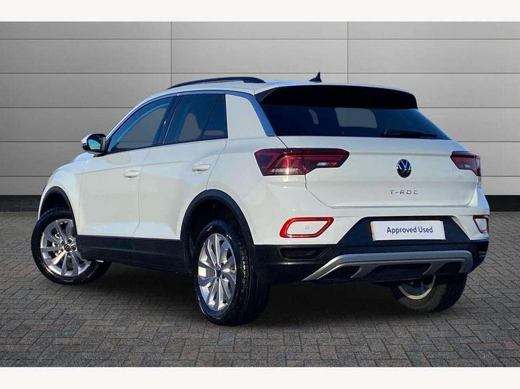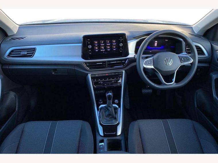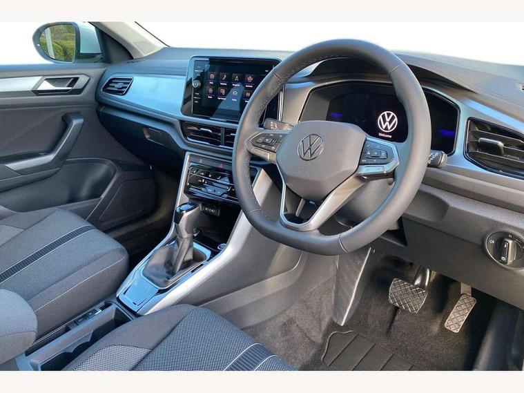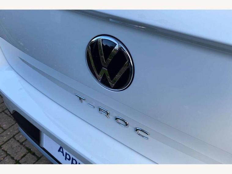 Advanced driver attention and drowsiness monitor, Dynamic road sign display, Emergency call service, Lane keeping system Lane Assist, Mobile phone interface, Modified key software - reduce switch off time for key status change to Long no motion, Online services, Park assist including front and rear parking sensors, Power assisted speed sensitive steering, Rear view camera, Service interval indicator, Tailgate/trunk lid release from outside, Think blue trainer driver tips and journey analysis, Warning sound and light for front seatbelts unfastened, Wireless app connect, Battery regeneration during braking, Front shock absorption, Rear shock absorption chassis with increased ride height, Start/stop function with battery regeneration, DAB Digital radio, Diversity antenna for FM reception, Music playback - MP3, WMA and AAC files, Premium USB cable in choice of either Apple or Android smartphone compatibility, SD card slot, Simultaneous pairing of 2 compatible mobile devices, Title and cover art display, We Connect and We Connect Plus functionality, Auto dimming interior rear view mirror, Automatic hazard lights activation under emergency braking, Automatic headlight control with LED separate daytime running lights with coming/leaving home function, Black roof rails, Body coloured bumpers and radiator grille with chrome trim and front fog lamps with chrome bezel, Body coloured exterior mirror housings and door handles, Electrically adjustable and heated door mirrors, Extended roof spoiler, Exterior mirrors aspherical on driver side, convex on front passenger side, External USB type C socket and charging sockets, Front windscreen wiper with intermittent wipe and 4 position delay, Heated rear window, LED 3rd brake light, LED rear combination lamps, LED rear number plate lights, Power windows with comfort operation and circuit breaker, Privacy glass for rear side windows and rear window, Rain sensor, Rear exhaust tailpipe, Rear fog light on one side and reversing lights on both sides, Rear side wing doors, Rear wash/wipe with intermittent wipe setting, Remote electrically foldable door mirrors, puddle lights and reverse activated passenger's door mirror, 12V power socket in centre console, 3 rear head restraints, 3 seat bench in 2nd row, 4 load lashing points in luggage compartment, Air care climatronic air conditoning system with active combination filter and 2-zone temperature control, Black stitching for floor mats, Ceramique roof liner, Cloth upholstery, Door and side trim panel in cloth, Drawer under drivers seat, Driver/front passenger seat height adjustment, Front centre armrest, Front comfort sports seats, Front cupholders x 2, Front reading light, Front seat back storage pockets, Glove compartment door with light, Instrument lighting, white adjustable panel illumination, Interior ambient lighting and surround lighting, Interior light delay, Isofix child seat preparation, Leather gearshift handle, Load-through provision with cup holder when folded down ('Unsplit rear seat bench, split folding backrest, with centre armrest), Luggage compartment lighting, Lumbar support for driver's and front passengers seat, Non-folding front passenger seat backrest, Single front passenger seat, Storage compartment in left and right luggage area, Storage compartment in rear doors, Storage compartments in driver and front passenger doors, Sunvisors with illuminated vanity mirrors, Variable boot floor, height adjustable and removable, Driver assistance pack without proactive passenger protection - T-Roc Life/Match, 3 point height adj front seatbelts + pretensioners, 3 point seatbelts in outer rear with ECE label, ABS, Child locks on rear doors, City emergency braking and pedestrian monitoring, Driver and front passenger airbag with front passenger airbag deactivation, Driver and front passenger safety-optimised head restraints, Drivers seatbelt reminder, Electronic parking brake, Electronic Stability Control (ESC) inc EDL (Electronic Differential Lock) and ASR (Traction Control), Front and rear passengers curtain airbag system including front side airbags, Front disc brakes, Hill start assist, Predictive pedestrian protection, Rear disc brakes, Two tone horn, Tyre pressure loss indicator, Volkswagen roadside assistance, Alarm with interior protection, Keyless locking and starting system keyless access with safelock, Pewter matt decorative inserts for intrument panel, centre console and door panels at the front, Trims for alloy wheels,