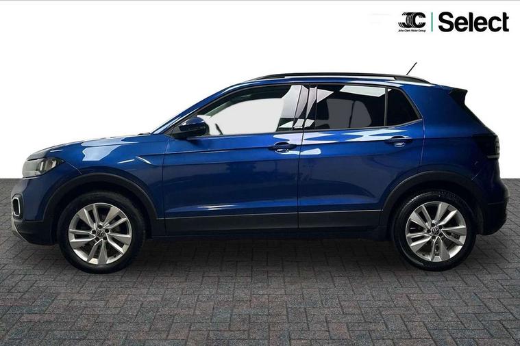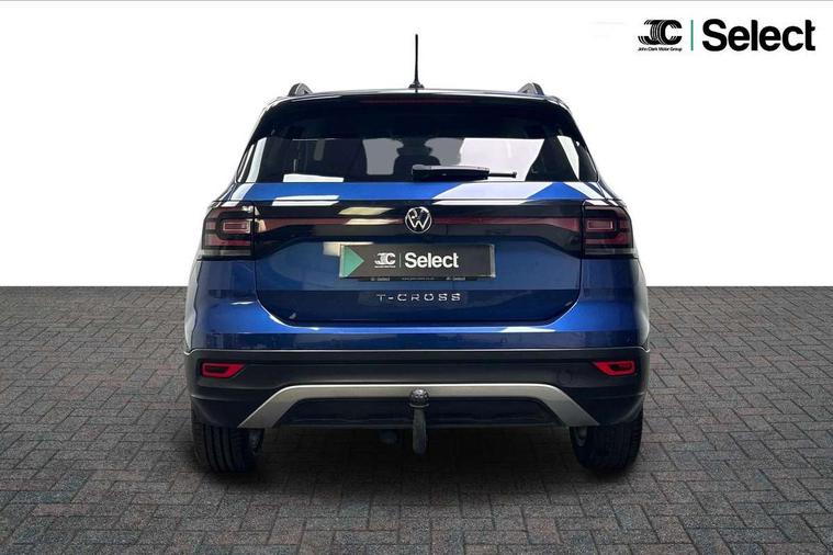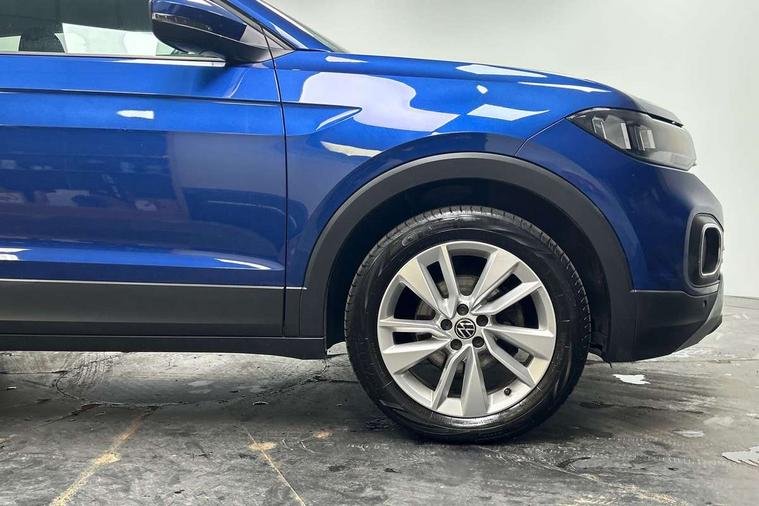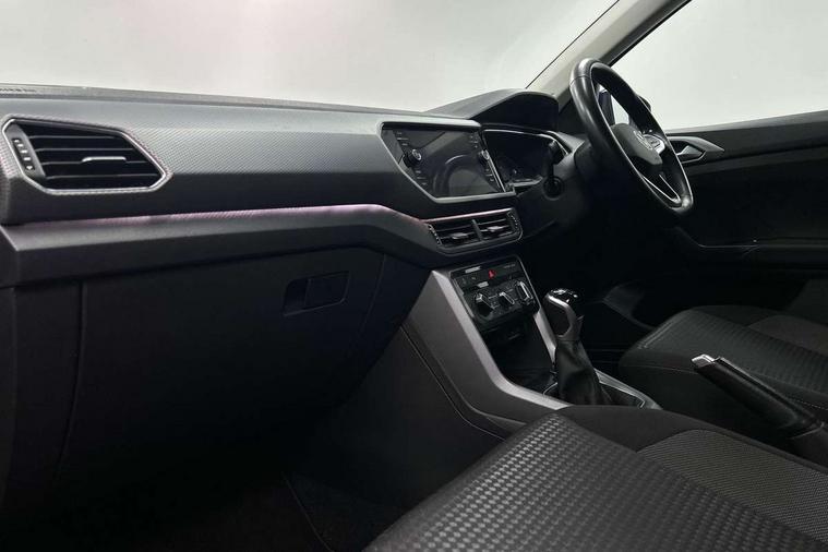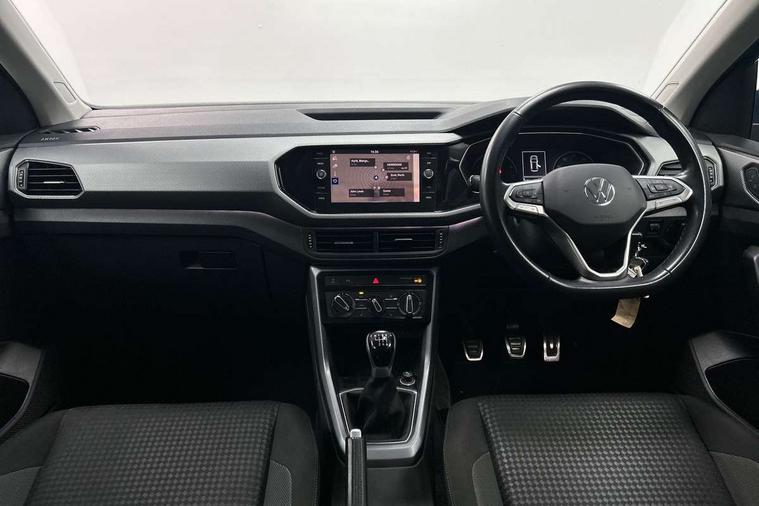 'Lights On' Reminder warning buzzer, Adaptive cruise control including front assist, forward collision warning, autonomous emergency braking, speed limiter, Blind spot monitoring, Bluetooth telephone and audio connection for compatible devices, Car information display, Driver alert system, eCall emergency call system, Lane assist, Low washer fluid warning light, Multifunction computer with visual gear change recommendation for fuel consumption, Operating permit alteration, Power assisted speed sensitive steering, Speedo, rev counter, electronic odometer, trip, service interval display, exterior temperature and fuel gauge, Stop/start system, Warning sound and light for doors and tailgate open, Warning sound and light for front seatbelts unfastened, We Connect Go Dongle, Wireless Car net app connect with Apple CarPlay, combined functionality of Apple CarPlay/Android Auto and MirrorLink, Battery regeneration during braking, Misfuel prevention device, 2x USB connection with USB charging sockets and in rear centre console, DAB Digital radio receiver, Diversity antenna for FM reception, Multi device interface (MDI) with USB connection, Music playback - MP3, WMA and AAC files, Premium USB cable for Apple or Android smartphone compatibility, Simultaneous pairing of 2 compatible mobile devices, Title and cover art display, 3D active badge on B-pillar, Active door sills, Active sill panel trims, Automatic hazard lights activation under emergency braking, Black roof rails, Body colour door handles, Body coloured bumpers, Dusk sensor + automatic driving lights, Electrically foldable, adjustable and heated door mirrors with reverse activated kerb view adjustment on passenger's side, Front and rear electric windows, Front fog lights with static cornering function, Galvanised body, Heated rear window, High level 3rd brake light, Lower door sills and door pillars in black, Radiator grille with high gloss surface and chrome strip, Rear fog light on one side, reversing light on both sides, Rear lights incorporating LED technology, Rear side wing doors, Rear tinted glass 65% approx light absorbing from B pillar backwards, Rear window aerial, Rear windscreen washer and wiper with interval delay, Reflectors in all doors, Tailgate with integrated roof spoiler, Windscreen wipers/ intermittent wipe + 4 position delay, 12V Accessory socket in centre console, 3 rear head restraints and 3 rear three point seat belts with ECE label, 3 seat bench in 2nd row, 60/40 split folding rear seat backrest, Ambient lighting and sourround lighting, Brushed stainless steel pedals, Drawer under drivers seat, Driver and front passenger sunvisor with vanity mirror, Driver's sunvisor with ticket holder, Dust and pollen filter, Front + rear carpet mats, Front and rear reading lights X 2, Front centre armrest with storage compartment, Front seat back storage pockets, Front seats with adj lumbar support, Glovebox, Heating and fresh air system with 4 stage blower, Height/reach adjust steering wheel, Instrument lighting white adjustable panel illumination, Interior light with delay, Isofix child seat preparation for 2 rear child seats, Luggage compartment cover, Luggage compartment lighting, Moveable and foldable Rear bench seat, Single front passenger seat, Storage compartment in drivers and front passengers door, Three spoke multi-function leather trimmed steering wheel and gearknob, Trapeze cloth upholstery, Variable boot floor, Winter pack - T-cross, Anti-lock Braking System (ABS) with Hydraulic Brake Assist (HBA), Automatic post collision braking system, Driver and front passenger safety-optimised head restraints, Drivers and Front Passengers airbags with front passengers airbag deactivation switch, ESC with EDL, ASR, EDTC and trailer stabilisation function, Extended and proactive pedestrian protection, Front and rear curtain airbags, Front seat side impact airbags, Height adjustable 3 point automatic front seatbelts with pretensioners, Hill start assist, Pre crash preventive occupant protection, Rear door child safety locks, Rigid safety cell with front and rear crumple zones, Single torn horn, Tyre pressure loss indicator, Volkswagen roadside assistance, Alarm with interior protection and deactivation via infotainment system, Child security locks in rear doors, Electronic engine immobiliser, Remote tailgate unlocking using key fob, Decorative strips in doors in matt silver/ center console, 17" Clayton alloy wheels + anti theft wheel bolts, Breakdown kit,