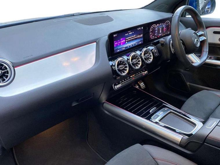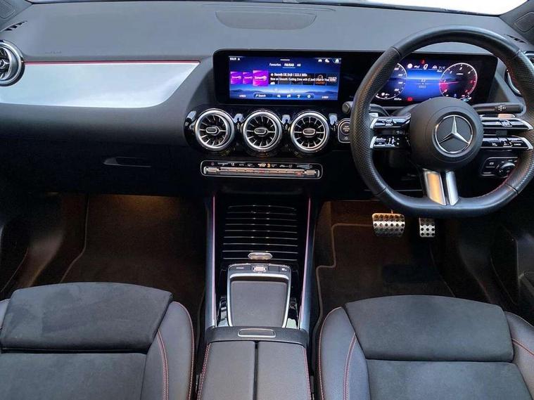 10.25 inch touchscreen central media display, 10.25" Digital instrument cluster display screen, Attention assist, Direct steering, DYNAMIC SELECT with a choice of driving modes (ECO, Comfort, Sport and Individual), Easy-pack tailgate, ECO start/stop function, Fingerprint scanner, Fluid level warning indicator for fuel, oil, coolant and washer fluid, Full color head up display, Hard-disk navigation, Hey Mercedes Voice activation, Lamp failure indicator, Lane keeping assist (LKA), Mercedes me connect including emergency call system, accident recovery, breakdown and maintenance management, Mercedes me remote services, Multi function trip computer, Outside temperature gauge, Owners manual and service booklet in English, Pre-installation of private car share, Radio aerial integrated into front and rear windshields, Service indicator (ASSYST), Smartphone integration with Apple CarPlay and Android auto, Traffic sign assist, Wireless charging, Lowered comfort suspension, Rear axle multi-link, Suspension with adaptive damping system, Bluetooth connectivity including audio streaming, DAB Digital radio, MBUX multimedia system, Mercedes-Benz (225w) sound system with 10 speakers, Adaptive brake lights, Adaptive full LED rear lights with automatic adjustment of light intensity to the surroundings, Aluminium roof rails, AMG front apron with front splitter in the colour of the vehicle with chrome trim element, AMG rear apron with visible tailpipe trim and chrome trim element, AMG specific/dual flow exhaust pipes in chrome (non-functional), Automatic headlamp activation, Beltline trim and window line trim strip in high gloss black, Black grained side sill trim with chrome inlay, Body coloured door handles with chrome insert for keyless entry, Car wash function, Cornering light function with activated high beam, Dark privacy glass from B-pillar backwards, Electric front windows, Electric rear windows, Electrically adjustable and heated door mirrors with integrated LED indicators, Exhaust system with 2 Visible tailpipe trim elements and rear apron with trim in chrome, Heat insulating dark tinted glass, Heated glass rear windscreen + timer control, Illuminated door sill panels with Mercedes-Benz lettering, Interior mirror with black reading lamps and frameless, LED daytime running lights, LED third brake light, Multibeam LED headlamps with adaptive highbeam assist plus, Panoramic sunroof, Rain sensor windscreen wipers, Rear fog lights, Rear side wing doors, Rear wiper, Wheel arch liners in the colour of the vehicle, 3 seat bench in 2nd row, 3 spoke flat bottom multifunction nappa leather steering wheel, 40:20:40 split folding rear seat backrests, Adjustable head restraints, Air conditioning - air vents with silver chrome surround, Air conditioning - Two zone thermotronic luxury automatic climate control with display, AMG floor mats, Auto Mercedes-Benz child seat recognition sensor, Black roof lining, Courtesy light in boot, Electrically adjustable front memory seats with four way lumbar support, Fluorescent jacket, Front centre armrest with stowage, Galvanished gear shift paddles on steering wheel in silver chrome, Heated front seats, Illuminated glovebox, Interior lighting - 64 colour Ambient lighting, Luggage net on driver/front passenger seat backrest, Manually height and reach adjustable steering column, Single front passenger seat, Sports pedals in brushed stainless steel with black rubber studs, Sports seats, Sports steering wheel, Stowage compartment in centre console, Stowage compartment with retractable cover, Sunvisors with illuminated vanity mirrors, Twin front cup holders, Two outer rear seat isofix and top tether child seat fixing points, Comfort seat pack - GLA Class, Driving assistance package - GLA, Interior lighting with light and sight pack - GLA, Keyless go comfort package - GLA, Mirror pack - GLA Class, Night package - GLA, Off road engineering pack - GLA, Parking package with 360-degree camera - GLA, USB package plus - GLA, 3 rear 3 point seatbelts, ABS with Brake Assist, Active bonnet pedestrain safety measure which detects an impact and raises bonnet by 65mm, Active brake assist includes forward collision warning system with autonomous braking, Adaptive brake assist with hold function and hill start assist, Black seatbelts, Bonnet with power domes, Brake pad wear warning indicator, Braking system with larger brake discs on the front axle, Childproof locks manually operated for rear doors and electrically operated for rear power windows, Crash responsive emergency lighting, Driver and passenger head and side airbags, Drivers knee airbag, Dual stage driver/passenger airbags, Electronic parking brake, ESP curve dynamic assist, ESP with ASR, Exit warning, Front and rear seatbelt reminder, Front brake callipers with Mercedes Benz logo lettering on front, Front brake discs internally ventilated and perforated, Front passenger seat occupancy sensor, Sports braking system, Tyre pressure monitoring system, Warning triangle and first aid kit, Window airbags, Alarm system with immobiliser and interior protection -Thatcham category 1, Guard 360 degree vehicle protection, Keyless Go starting function, Remote central locking and crash sensor with emergency opening function, Light longitudinal grain aluminium trim, 20" AMG multi spoke light alloy wheels aerodynamically optimised and painted in black with a high-sheen rim flangle RVT, Summer tyres, Tirefit tyre sealant kit,