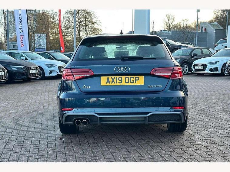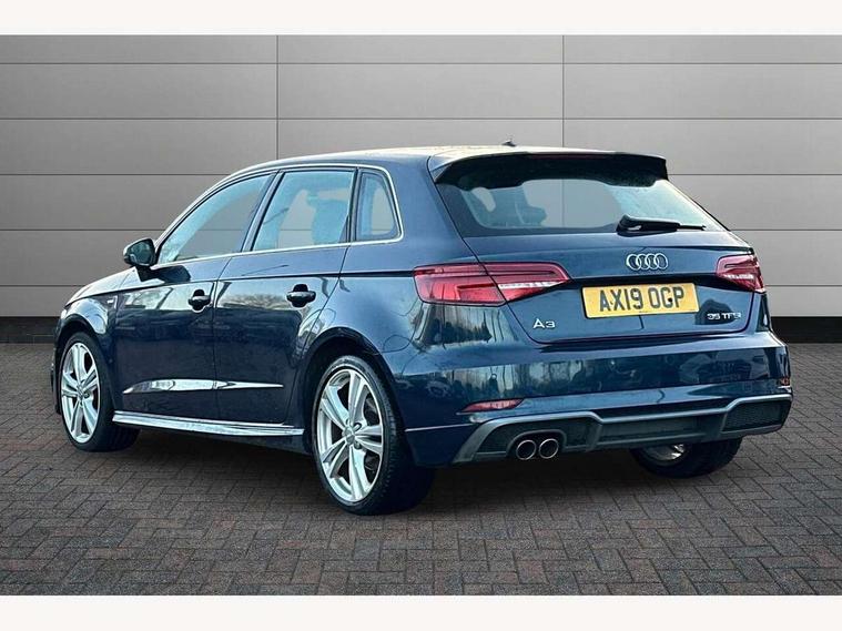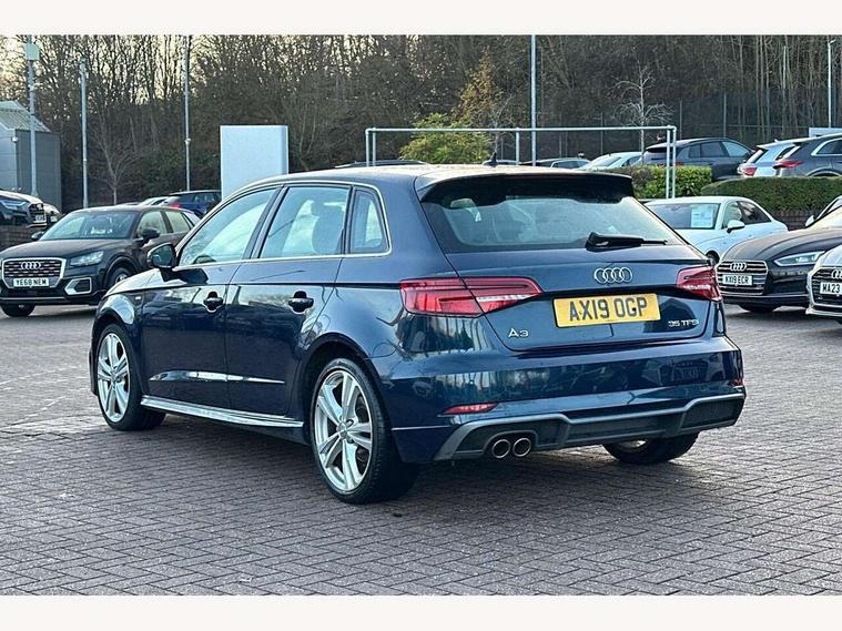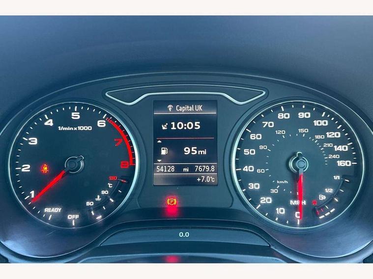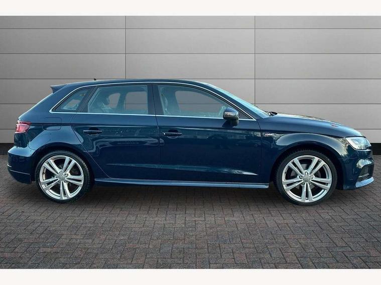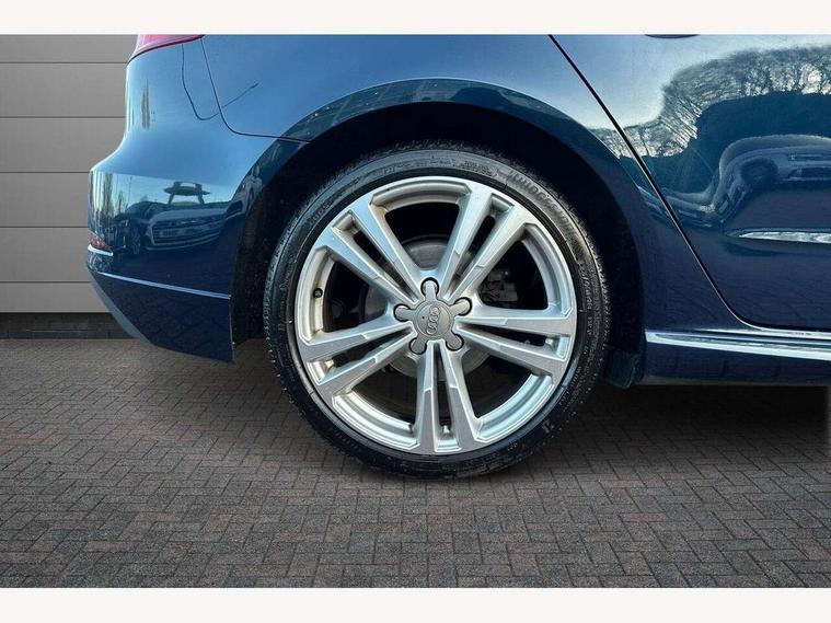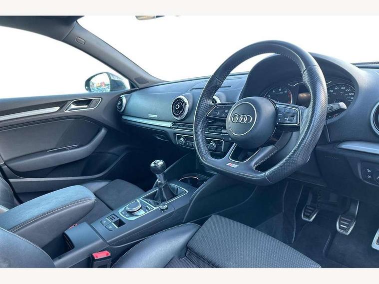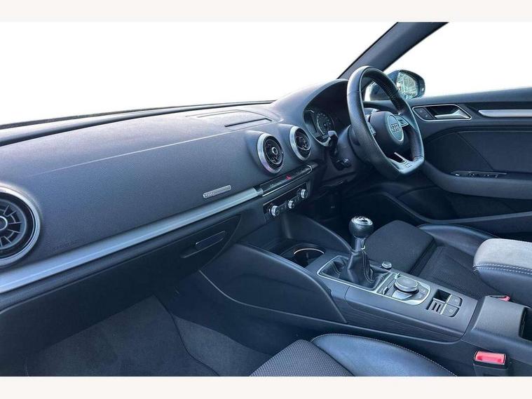 Audi connect, Audi drive select, Audi smartphone interface, Automatic start/stop system, Colour driver's information system display, Electro - mechanical power assisted steering, Mobile telephone preparation - bluetooth interface, SD card based satellite navigation system, Service interval indicator, Speed limit display, Voice control system, Voice recognition for navigation system, 2 USB interfaces and Aux-In jack, Audi music interface, CD player, DAB Digital radio, MMI radio plus with 7" colour MMI screen and MMI controller, Aluminium window trim, Auto dimming rear view mirror with light and rain sensors, Body colour door mirrors, Chrome exhaust tailpipes, Electric front windows, Electric rear windows, Electrically adjustable and heated door mirrors with integrated LED side indicators, Heated windscreen washer jets, LED daytime running lights, Matt black radiator grille, Rear wiper, S line badges on front wings, S Line body styling with front & rear bumpers and side skirts, radiator grille and rear diffuser insert, roof spoiler, Sport specific side air inlet grille and diffuser insert, 3 adjustable rear headrests, 3 spoke flat bottomed multi-function leather sport steering wheel, 4 lashing points to secure luggage, Adjustable front centre armrest, Black cloth headlining, Dual zone electronic climate control, Front and rear interior lights with delay, Front/rear floor mats, Glovebox light, Height and reach adjustable steering wheel, Illuminated door sill trims with S logo, Isofix child seat preparation for front passenger/outer rear seats inc passenger airbag deactivation, Stainless steel pedals, Storage compartments in doors side trims, centre console and under front drivers seat, Tool kit, LED interior light pack - A3/RS3, Non smoking pack - A3, Storage and luggage pack - A3/RS3, 3 point seatbelts on all seats, ABS/EBD, Active bonnet, Active front headrests, Airbags - front driver/passenger, front & rear side, curtain, drivers knee, ASR, EDL, Electromechanical parking brake, ESC - Electronic Stability Control + traction control, Front passenger airbag deactivation, Hill hold assist, Manual rear child locks, Multi-Collision braking, Seatbelt warning, Tyre pressure warning, Warning triangle and first aid kit, Anti theft alarm, Anti-theft wheel bolts, Remote control central locking, Thatcham category 1 alarm + immobiliser, Aluminium air vent surrounds, Aluminium trim elements, Matt brushed aluminium inlays, Tyre repair kit,