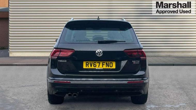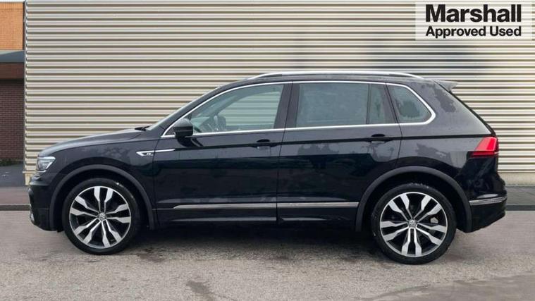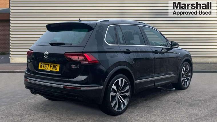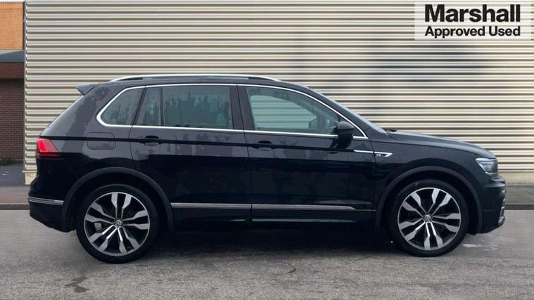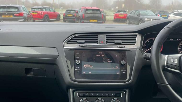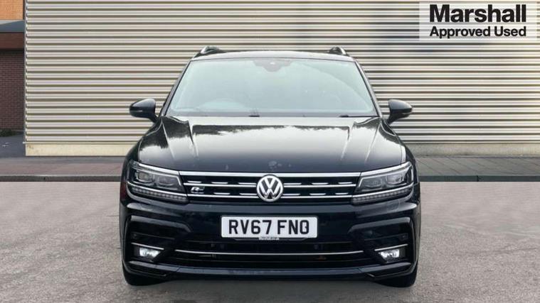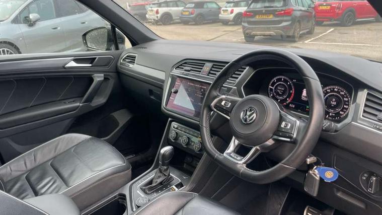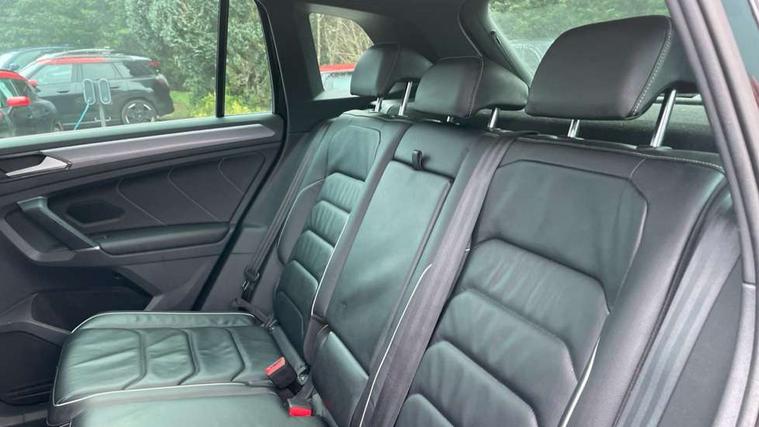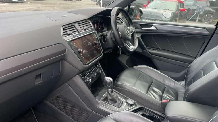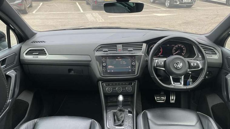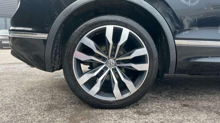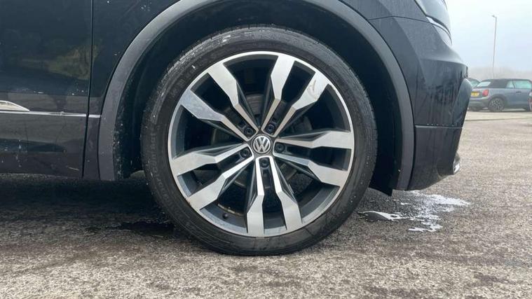 Active information display, Adaptive cruise control, App-Connect, Bluetooth phone integration system, Instrument cluster, Lane assist, Low washer fluid warning light, Outside temperature display, Service interval indicator, Speed limiter, Warning lights, Diesel particulate filter, Sports suspension, XDS electronic differential lock, Aux-in socket, DAB Digital radio, SD card slot, USB connection, Auto dimming interior mirror, Automatic activation of hazard warning lights, Black roof rails, Body colour door handles, Body colour door mirrors, Body colour rear spoiler, Body coloured bumpers, Chrome side window surrounds, Chrome trimmed radiator grille, Coming/leaving home lighting function, Dual chrome exhaust, Dusk sensor + auto driving lights, Electric folding door mirrors, Electric heated + adjustable door mirrors, Electric panoramic sunroof with sunblind, Front and rear electric windows, Heated rear window, LED headlights with dynamic light assist daytime running lights and cornering front fog lights, LED rear lights, Piano black rear diffuser, R Line body kit, Rain sensor windscreen wipers, Rear windscreen washer and wiper with interval delay, Silver under body guard, Tinted windows (B pillar backwards), Twin trapezoid chrome exhaust pipes, 12V Accessory socket in centre console, 3 rear headrests, 3 zone climate control, 4 load lashing points, 40:20:40 split folding rear seats, Bag hook in luggage compartment, Black headlining, Driver + front passenger lumbar support, Foldable passenger seatback, Front + rear carpet mats, Front centre armrest with 12v socket, Front centre armrest with storage + rear 2 air vents + cupholders, Front seatback folding tables, Height/reach adjust steering wheel, Illuminated driver/passenger vanity mirrors, Illuminated scuff plates, Interior light with delay, Isofix Preparation 2 Rear child seats, Leather gear knob, Lockable cooled glovebox, Luggage compartment lighting, Luggage compartment side storage, Map pockets on front seats, Passenger seat height adjuster, Rear cupholders, Removable luggage cover, Sliding/reclining rear seats, Stainless steel pedals, Storage compartment in driver's door, Storage compartment in passenger's door, Storage tray on dashboard, Sunglasses storage, Variable boot floor, Ambient lighting pack - Tiguan, 3 rear 3 point seatbelts, ABS+EBD+Brake assist, Active bonnet, Active pedestrian safety system, Curtain airbags, Driver/Front Passenger airbags, Driver/Passenger whiplash optimised head restraints, Drivers knee airbag, Electronic parking brake with auto hold, ESP with EDL + ASR, First aid kit, Front assist including city emergency braking, Front side airbags, Head airbag system, Height adjustable front 3 point seatbelts + pretensioners, Hill hold control, Passenger airbag deactivate switch, Passenger knee airbag, Pre crash system, Rear side airbags, Seatbelt warning lamp and buzzer, Two tone horn, Warning triangle, Alarm with interior protection, Electronic engine immobiliser, Remote central locking with 2 remote folding keys, Chrome door trim inserts, Piano black interior trim, 20" Suzuka alloy wheels + anti theft wheel bolts, Steel space saver spare wheel,