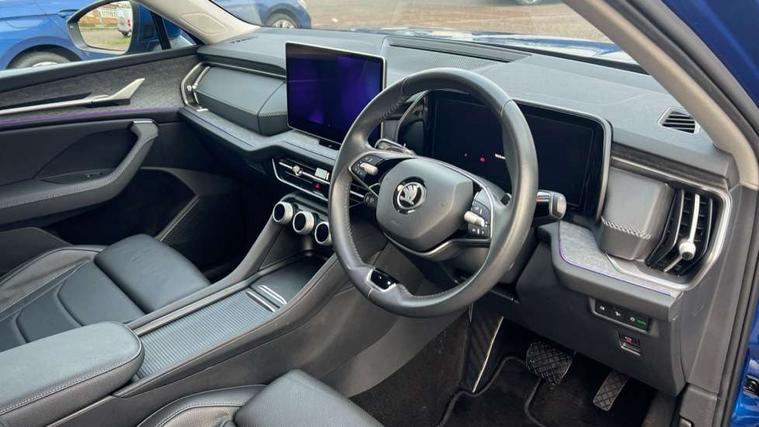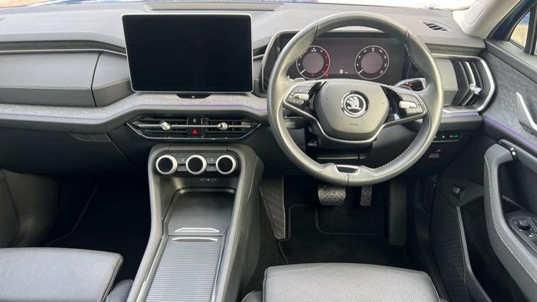 13" satellite navigation touchscreen display, Blind spot detection with door exit warning, Bluetooth system, ChatGPT functionality, Drive mode selector, Driver alert with fatigue sensor, Driver drowsiness alert system, Dry display cleaner, e call+, Front cross traffic assist, Lane assist, PAS, Rear traffic assist, Tailgate unlocking from outside, Traffic sign recognition, USB C Port x 2 in front centre console, Virtual Cockpit - 10.25" digital display, Voice control system, Wireless charging for two smartphones (15W) with cooling function, Wireless SmartLink for Apple CarPlay and Android Auto, Stop/start function, 2x USB-C in the rear, DAB Digital radio, Aero front windscreen wipers with intermittent function, Auto dimming rear view mirror, AWL (all weather lighting) and all weather light with cornering function, Black wheel arch surrounds, Body colour bumpers, Body colour door mirrors and handles, Cornering light and poor weather light, Electric folding /adjustable/separted heated/folding door mirrors, auto dimming with boarding sports and memory function, Electric front and rear windows, Exterior black decorative trims, Heat insulating glass in windshield, Heated rear window, Ice scraper in fuel tank cap, Invisible tailpipe, LED daytime running lights, LED rear fog light, LED third brake light in rear spoiler, Light assistant with automatic headlight control and coming home feature, Logo projection in door mirrors, Privacy glass, Rear side wing doors, Rear spoiler, Rear window wiper, Red decorative strip between rear LED lights, Safety reflectors on front and rear doors, Window control switches with black trim, Windscreen wipers with rain sensor, Without engine designation, 1.5l bottle holder points in all door, 12V socket in boot, 1x centre rear reading light, 2 seat bench in 3rd row, 3 configurable smart dials with 32mm coloured display, 3 seat bench in 2nd row, 4 foldable roof handles with rear coat hooks, Ambient interior lighting - Dashboard, front-door stowage compartments, front and rear door panels and footwell lighting, Automatic gear selector on steering wheel, Chrome interior door handles, Driver/front passenger reading lights, Fabric headlining, Fixed bench 40:60:40 split folding backrests, Front and rear floor mats, Front centre armrest with jumbo box storage compartment, cup holder and 12V socket, Front courtesy lights, Height adjustable front headrests, Isofix child seat fittings in outer middle row rear seats and front passenger with top tether, Manually adjustable steering column, Pollen filter, Rear centre armrest with cupholders, Rear seat boot backrest release, Retractable luggage compartment cover, Single front passenger seat, Sliding trunk cover, Small Bags on the inner sides of the front backrests, Storage pocket including mobile phone pockets on the backs of the front seats, Sunvisors with illuminated vanity mirrors, Three rear height adjustable headrests, Ticket holder on A Pillar, Tri zone climate control, Umbrella in door panel x1 made from sustainable materials, Upper and lower glovebox with card holder and coin compartment, USB C port by rear view mirror for charging only (15W), Exterior styling pack - Kodiaq, Auto door release and activation of warning lights in the event of an accident, Driver and front passenger airbag with knee airbag and front passenger airbag deactivation, Electric child locks, Electronic parking brake, ESC (incl. ABS+EMD+MSR+ASR+EDL+HBA+DSR+RBS+ESBS+MCB+TSA+XDS), Front assist with braking reaction to vehicles, pedestrians and cyclists, Front disc brakes, Fuel cut off safety device, Height adjustable front 3 point seatbelts + pretensioners, Hill hold control, Junction assist with automatic emergency braking, Rear disc brakes, Safety vest holder in door, Seat belt reminder for all seats, Three point rear seat belts, Two tone horn, Tyre pressure monitor, Anti-theft wheel bolts, Immobiliser, Remote central locking with 2 keys, Breakdown kit,