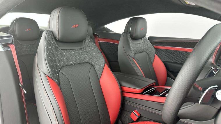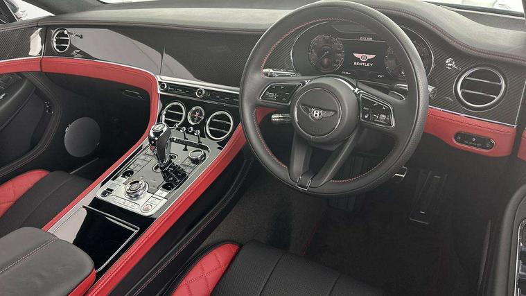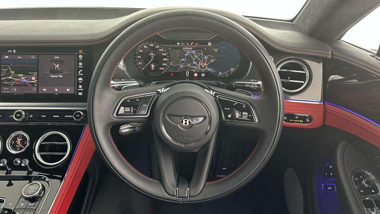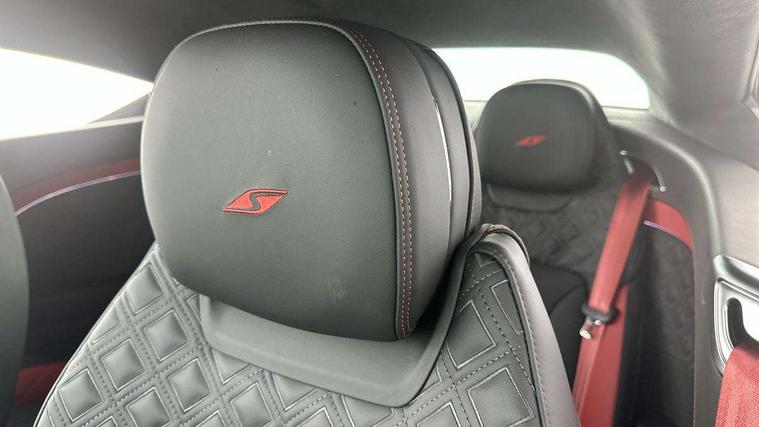 4G LTE telephone module, Apple car play, Blind spot warning, Bluetooth and Wi-Fi audio streaming, Brake pad wear indicator warning light, City assist, Collision prevention assist, E-call, Engine start/stop button, Front/rear park distance control, Hands free boot opening, Inductive phone charger, Infotainment system with 12.3 high resolution touch screen retina disp + proximity sensors + advance music interface, single DVD/CD, 2 SD card slots, Navigation system, Online real time traffic information, Park assist system, PAS, POI (search), Power latching to all doors for easy entry, Reversing camera, Reversing traffic warning, Top view camera, Traffic sign recognition, Trip computer, 3 Chamber air suspension with continuous damping control, Battery charger, Bentley Dynamic ride, Dynamic ride height control + ground clearance function, 60GB hard drive, Acoustic and heat insulating front windscreen, Acoustic glass, Adaptive brake lights, Auto dimming door mirrors, Auto dimming rear view mirror, Automatic headlights, Bentley lettering on the boot, Black and Chrome bonnet and boot Bentley wing badges, Black headlamp and tail lamp embellishers, Black matt lower bumper grille, Black quad oval exhaust finishers, Black rear bumper strike and number plate embellishers, Bright boot finisher, Dark tint front and rear lights, Daytime running lights, Deployable rear boot spoiler, Electrically adjustable door mirrors with heating, power fold, memory and dip on reverse functions, Full LED Matrix headlamps with high-beam assist, Full LED tail lamps, Heated rear windscreen, Hidden antennae, LED third brake light, Rain sensing windscreen wipers, Rear boot, S fascia badge, S fender badge, S sport sills, Sports exhaust, Treadplates inner with "Handbuilt in Crewe, England" inserts, 12 way heated electric memory front seats, 12v power sockets 2 in cabin and 1 in boot, 2 cupholders in front centre console, 2 individual rear seats, Air Ioniser, Bentley analogue clock with plain bezel, Bentley hide upholstery, Black seat belt buckles, Boot carpet in Beluga, Boot lid down lighters, Deep Pile Carpets to match upholstery, Dinamica headlining, Electric tilt and reach adjustment steering column with memory and easy entry functions, Fluted seat S design, Footwell illumination and ambient lighting, Four occupant seating positions, Front head restraints, Lockable cooled glovebox, Metal bulls eye vents with organ stop, Multi-zone automatic climate control - two zone, Rear headrests, Seats with straight fluted style hide cover, Single front armrest with fore/aft adjust and stowage, Single front passenger seat, Ski hatch, Steering wheel gearshift paddles, Stowage to front doors, centre console and under centre armrest, Sunvisors with illuminated vanity mirrors, Two rear seats with centre stowage and cup holders including 12v socket and 2 USB charging points, Continental Blackline Specification with Matrix Grille - GT/GTC, Driver and passenger airbags, Electronic parking brake with drive away assist, Electronic stability programme with traction control, Anti lock braking System , Electronic brake force distribution, HBA + drag torque control, Electronic tyre pressure monitoring, Exit warning, Front vented 420x40mm disc brakes with Bentley branded red brake callipers, Multicollision braking system, Pedestrian warning, Pre crash system, Pre sense braking system, Rear vented 380x30mm disc brakes with Bentley branded red brake callipers, Side airbags, Torque vectoring brake, Alarm, Bentley GPS advanced tracking system, Immobiliser, Keyless entry and start, Tyre inflation kit,