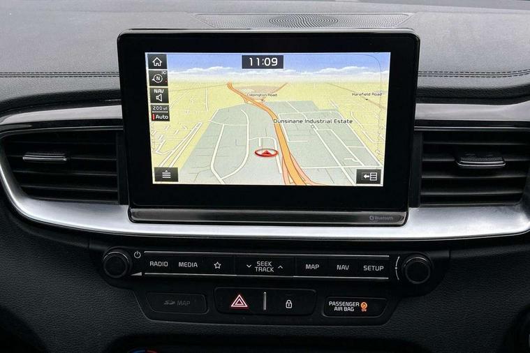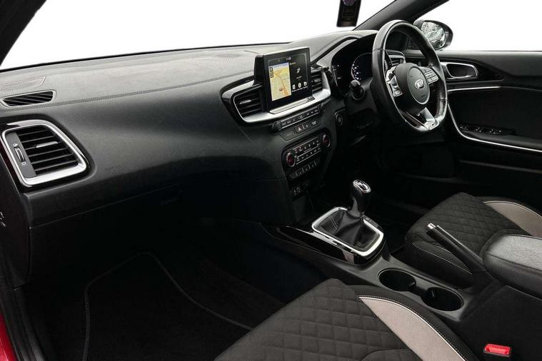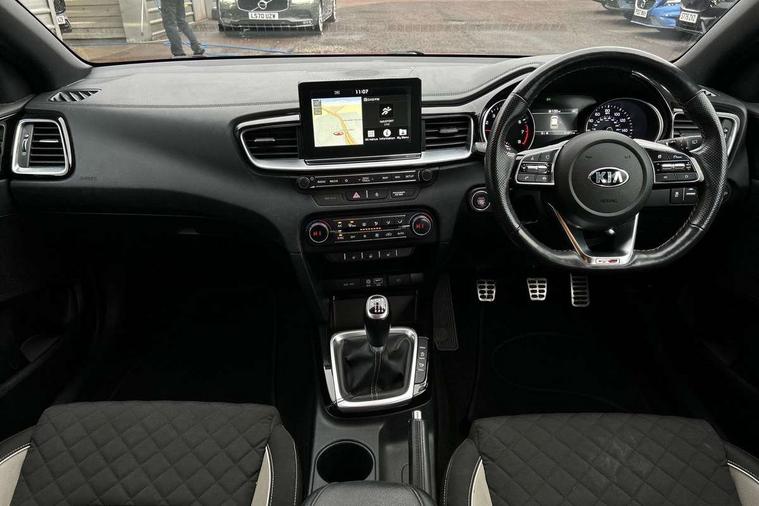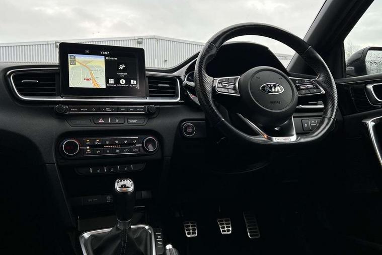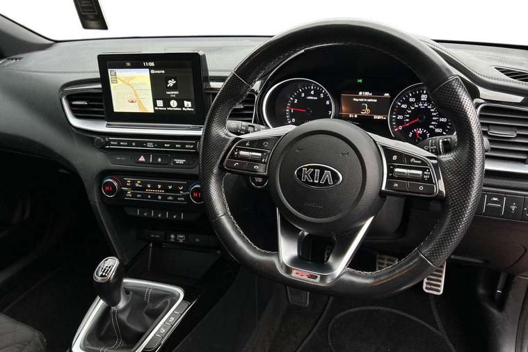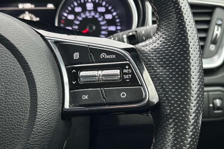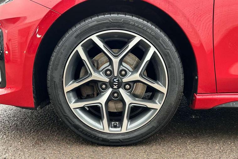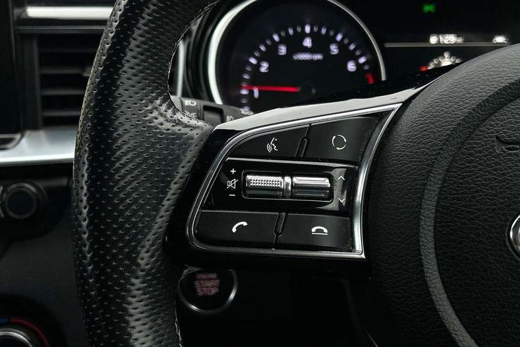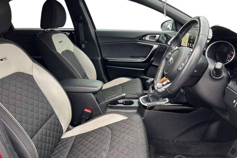 10.25" touchscreen satellite navigation including telematics, 4.2" supervision colour cluster display, Apple car play/Android Auto with voice control, Bluetooth with Voice Recognition & Music Streaming, Cruise control + speed limiter, Driver attention warning, Emergency stop signalling system, Forward Collision-Avoidance Assist (FCA) - City/Pedestrian, Kia connected services featuring TomTom live, Lane keep assist, Motor driven power steering, Outside temperature gauge, Rear parking sensor, Reversing camera with dynamic guide lines, Service interval indicator, Trip computer, Intelligent Stop and Go, 6 speaker audio system, DAB Radio with MP3, Illuminated USB & aux ports, Steering wheel mounted controls, USB & AUX Ports for Connection of a Media Device, USB Fast Charger in Front Centre Console, Air intake with black accent lower lip, All-round Electric Windows with Front Auto Up & Down Function, Auto dimming rear view mirror, Automatic defog system, Automatic headlights, Body colour bumpers, Body colour exterior door handles, Body coloured rear roof spoiler with high gloss black trim, Chrome window surround, Electric adjustable/heated/folding door mirrors with LED Indicators and Kerbside Lights, Front fog lights, Front wiper de-icer, Heated rear window with timer, High beam assist, High Gloss Black and Satin Chrome Radiator Grille, High gloss black door mirrors, High gloss black side sill mouldings, Illuminated front door handles, LED daytime running lights, LED High-mounted Brake Light, LED rear fog light, LED rear lights, Privacy glass (rear side windows and rear screen), Projection headlights, Rain sensing front wipers, Rear bumper with dual exhaust, Rear wash/wipe, Tinted glass, Wide view drivers door mirror, Windscreen Washer Level Warning, 12V socket in luggage compartment, 3 x passenger assist grips, 60/40 split folding rear seat, All-round height adjustable headrests, Aluminium pedals, Black headlining, Centre console storage box/armrest, Cloth/faux leather upholstery, Cupholders in centre console, Cupholders in rear armrest, Dash illumination dimmer switch, Driver & Front Passenger Sunvisors with Vanity Mirror Illumination & Ticket Holder, Driver + front passenger electric lumbar support, Driver's seat height adjuster, Dual Height Luggage Area Floor, Dual zone automatic air conditioning, Faux leather door trim, Front and rear door storage, Front map light with sunglasses case, Front Passenger Seat Height Adjuster, Front seat and rear pockets, Gear shift indicator, Heated front seats, Heated steering wheel, Interior door lock/unlock function, ISOFIX Child seat top tethers and anchor fixings, Leather D-Cut steering wheel with grey stitching, Leather handbrake, Leather steering wheel and gearshift, Luggage area light, Luggage area parcel shelf, Luggage hooks, Rear centre armrest, Rear coat hooks, Satin chrome interior door handles, Tilt/telescopic adjustable steering wheel, ABS with Electronic Brakeforce Distribution (EBD) and Brake Assist System (BAS), All round 3-point seatbelts, Dual front side airbags, Dual horn, Electronic stability control (ESC) and vehicle stability management (VSM), Front passenger airbag deactivation, Height adjustable front seatbelts, Hill start assist control (HAC), Impact sensing auto door unlocking, Rear door child safety locks, Seatbelt reminder warning, Traction control, Twin curtain airbags, Twin front airbags, Tyre pressure monitoring system, Alarm system, Engine Immobiliser & Deadlocks, Engine Start/Stop Button with Smart Entry System, Locking wheel nuts, Speed sensitive auto door locking, Black high gloss front console tray garnish & door trim, Satin Chrome Fascia Trim, 17" GT-Line alloy wheels, Tyre mobility kit,
