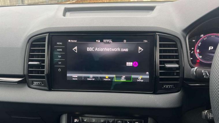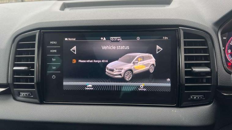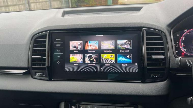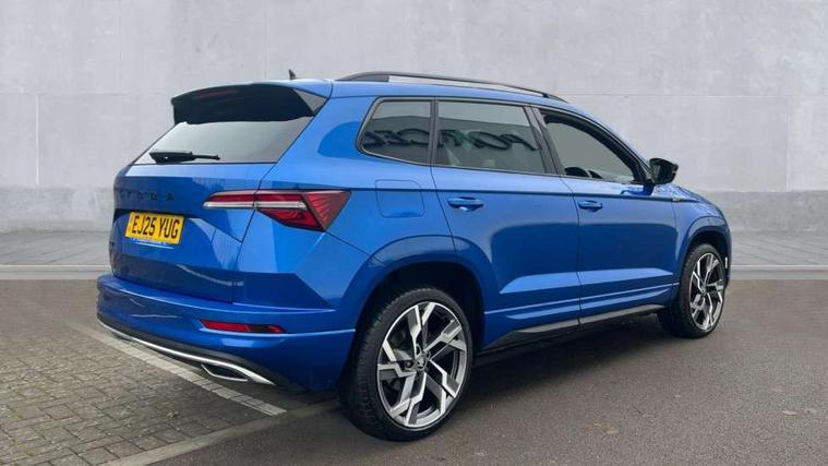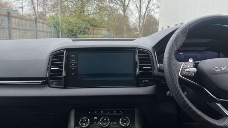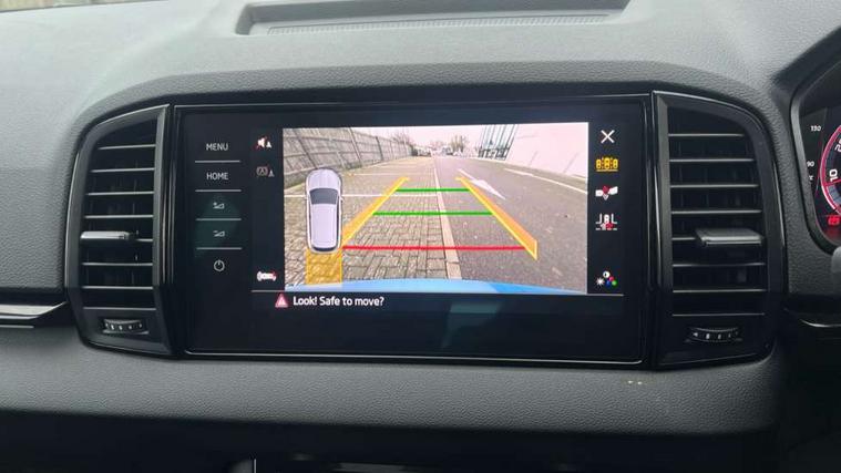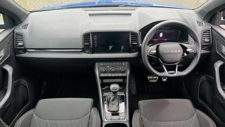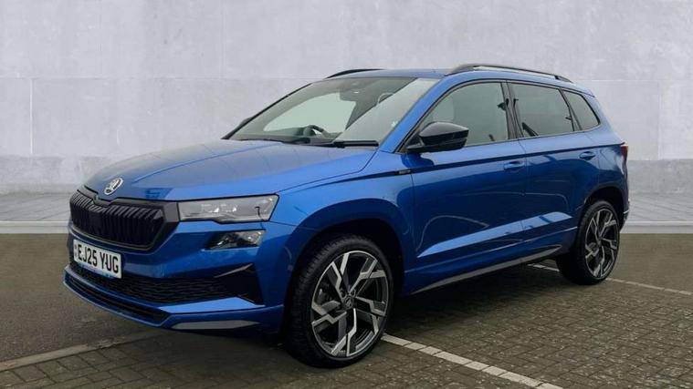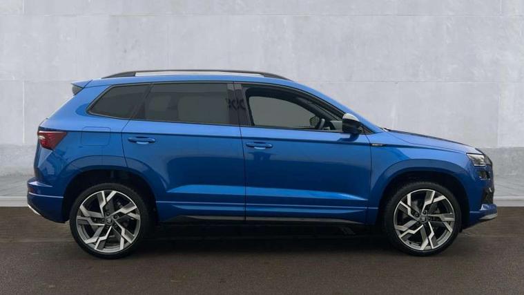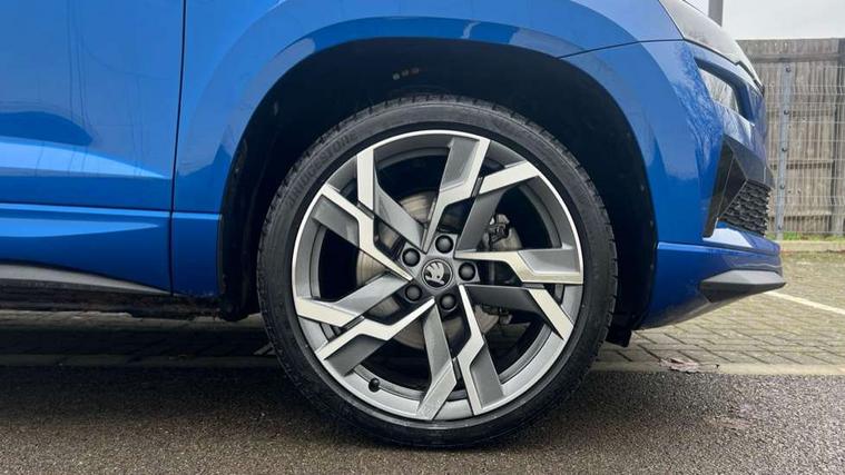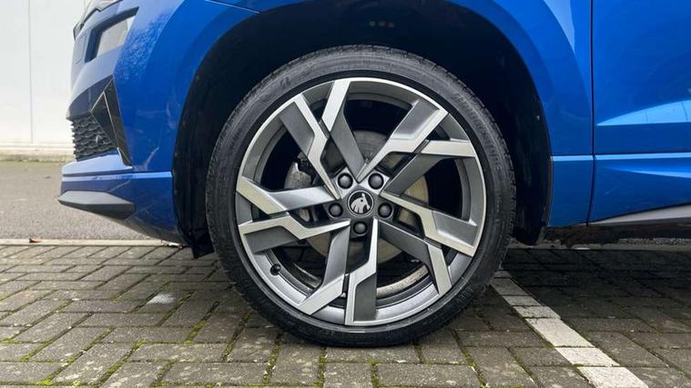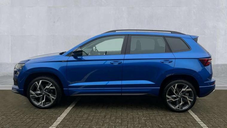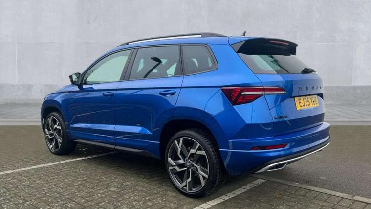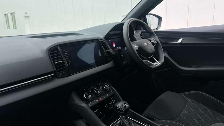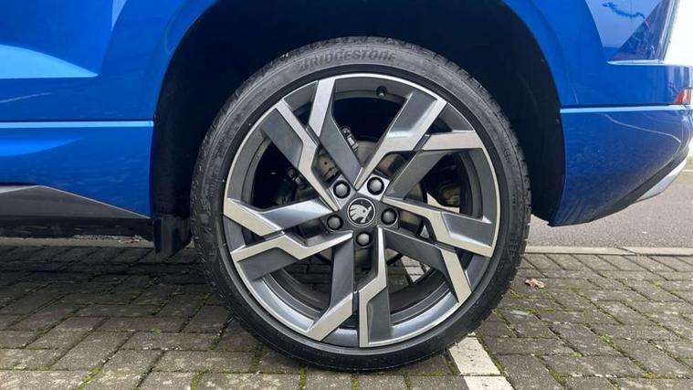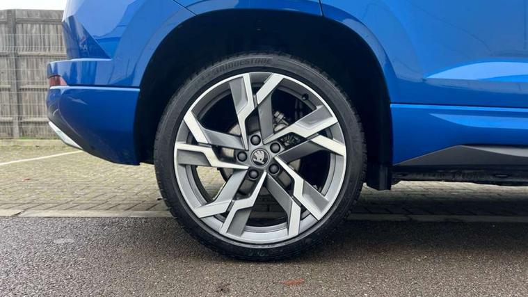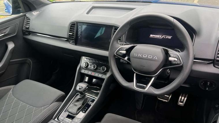 Advanced driver attention and drowsiness monitor, Emergency services call system, Outside temperature gauge, Sensor for driver assistance systems, Service interval indicator, SmartLink wireless for Apple and wired for Android, Start/stop system with regenerative braking, Traffic sign recognition, USB C Port x 2 in front centre console, Virtual Cockpit - 10.25" digital display, Virtual pedal with electrically operated boot door, Wireless smartphone charging, DAB radio with Bluetooth, USB connection, Acoustic glass, Aero front windscreen wipers with intermittent function, Auto dimming rear view mirror with light and rain sensors, Black door mirrors, Black electric window control buttons, Black radiator grille, Black roof rails, Body colour door handles, Electric front and rear windows with child proof lock, Extended rear roof spoiler, Front door steps with SportLine logo, Heated rear windscreen, LED daytime running lights, LED rear lights with high functionality welcome effect and dynamic indicators, Light assistant (coming/leaving home/tunnel light), Panoramic sliding sunroof, Plastic scuff plates in door apertures, Privacy glass, Protective door side sills in body colour, Rear diffuser, Rear side wing doors, Rear window wiper with washer system and intermittent control, Safety reflectors on front doors, Skoda lettering on tailgate in black, Sportline badge on front fender, Sports front and rear bumpers, Third brake light, Unique dark chrome design logo on alloy wheels, 1.5 litre bottle holders in driver and front passenger door panels, 12V socket in boot, 12v socket in front centre armrest with storage compartment and rear air vents, 2 x Tablet holder, 3 rear height adjustable headrests, 3 seat bench in 2nd row, 3 spoke sports leather heated multifunction steering wheel with DSG paddles, 4 foldable roof handles with rear coat hooks, Black floor carpet, Cargo elements in boot, Chrome inner door handles, Foldable hooks in the boot, Front head restraints, Height adjustable front three point seats belts with tensioners, Height/reach adjust steering wheel, Ice scraper, Illuminated glovebox, Illuminated luggage compartment, Isofix child seat preparation for front passenger seat, Isofix child seat preparation outer rear, Manual lumbar support for front seats, Pen holder, Pollen filter, Rear backrest release from boot, Rear boot cover, Rear package tray, Rear reading lights, Rear seats fixed folding and divided 60:40, Rubbish bin door, Safety vest holder, Single front passenger seat, Skoda lettering on steering wheel, Sportline decorative inserts, Storage box in upper central dashboard closed, Sunvisors with illuminated vanity mirrors, Textile floor mats, Ticket holder, Titan black interior ceiling, Umbrella under passenger seat, Under passenger seat storage compartment, Columbus pack - Karoq, LED Interior lighting pack with Skoda welcome logo - Karoq, Light Pack - Karoq, Non Smokers pack, Performance pack - Karoq, Winter plus pack with heated front and rear seats - Karoq, Automatic door unlocking in case of crash, Automatic fuel cut off in case of crash, Driver airbag, Electronic parking brake with auto hold function, Emergency rear braking signal, ESC (incl. ABS+MSR+ASR+EDS+HBA+DSR+RBS+MKB), Front side airbags, Head airbags, Hill hold control, Knee airbags, Passenger airbag with switch-off function, Pedestrian monitor, Seatbelt reminder signalisation and pretensioner for all seats, Three point seatbelts rear, Two tone horn, Tyre pressure monitor, Alarm with interior monitoring, back up horn and tilt sensor with safe function, Electronic engine immobiliser, Keyless entry and start/stop, Remote central locking with 2 remote folding keys, Black air vent surround, Black centre console, carbon door decor, Satin black dashboard, Satin black door trim, 19" Sagittarius anthracite alloy wheels, Anti-theft wheel bolts protection, Breakdown and tool kit,