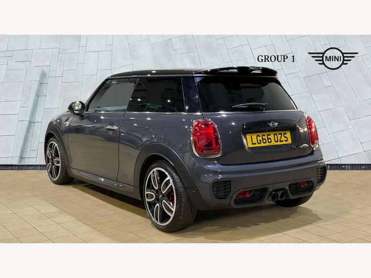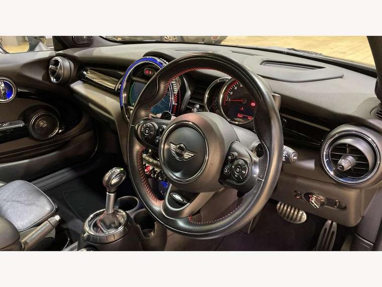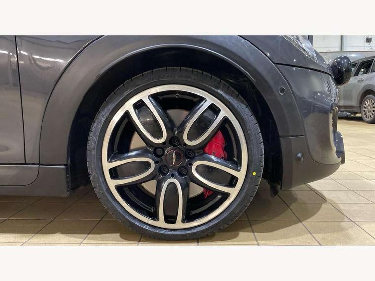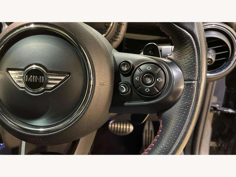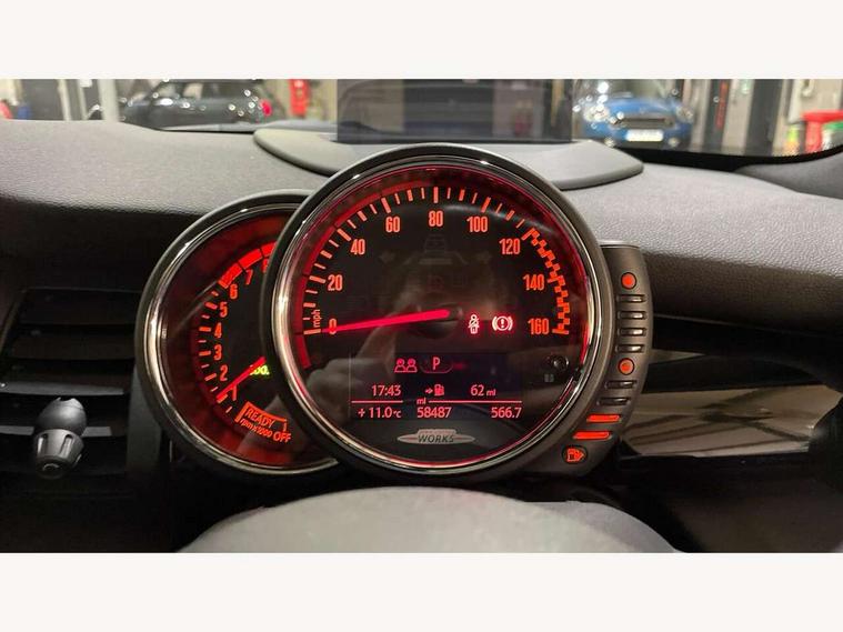 Acoustic seat-belt warning, Brake fluid level warning light, Brake pad wear indicator warning light, DTC - Dynamic traction control, Exterior temperature gauge, Intelligent emergency call, MINI Driving Modes - centre toggle switch to control driving setting (sport, mid and green), MINI TeleServices, Oil level indicator, On board computer, Push button starter, Service interval indicator, Servotronic PAS, Electronic differential lock, Performance Control, Auxiliary input socket, DAB digital radio module, 2 speed wipers+intermittent wipe, Anti dazzle mirror, Anti trapping/one touch open close front windows, Body colour scoop integrated into engine- compartment lid, Body coloured bumpers, Chili red grille bar, Chrome bezels around rear lights and headlights, Chrome door handles, Chrome plated fuel cap, Chrome plated trim on bottom edge of window, Chrome strip on lower grille, Electric front windows, Electrically adjustable door mirrors, Extended wheel arches, Follow me home headlights, Green tinted heat insulating glass, Heated door mirrors/heated windscreen washers, Heated rear window with auto timer, High gloss black tailgate, Honeycomb radiator grille, John Cooper Works roof spoiler, Metal look door sill finishers, Rear wiper, Side scuttles, Twin chromed exhaust pipes, White indicator lights, 2 rear head restraints, 4 boot load lashing points, 6 way manually adjustable passenger seat, 6-way manually adjustable driver's seat, Active carbon filter, Air recirculation system, Anthracite headlining, Auxiliary socket in centre console storage compartment, Centre console storage, Driver's seat height adjuster, Driver/passenger sunvisors, Easy entry seats, Front and rear cupholders, Front head restraints, Front interior light, Front passenger grab handle, Front seat backrest storage nets, Front sports seats, Gear/selector and handbrake in artificial leather, Internal chrome door handles, Isofix child seat preparation, Luggage compartment lighting, Multifunction steering wheel, Passenger seat height adjuster, Reach + rake adjustable steering column, Rear grab handles, Rear storage trays, Split folding rear seats, Storage compartments in doors, Toolkit in luggage compartment, Vanity mirrors, 3 point seatbelts, ABS/EBD, ASC+T, Brake calipers in red, Cornering brake control (CBC), Crash Sensor - activates hazard/interior lighting + unlocks doors, Driver and passenger airbags, Driver/front passenger side airbags, DSC - Dynamic Stability Control, Fuel cut off safety device, Head airbags, Hill start assist, Passenger airbag deactivation system, Seatbelt pretensioners, Tyre pressure warning, Ventilated front disc brakes, Drive away door locking, Locking wheel bolts, Remote central locking/doors+fuel cap+tailgate, Second remote key, Thatcham category 1 alarm + immobiliser,