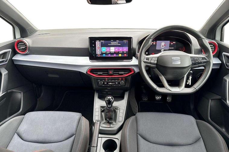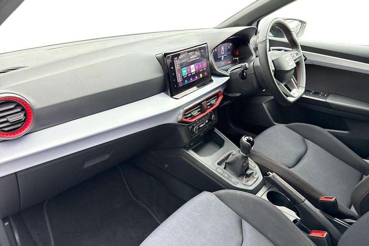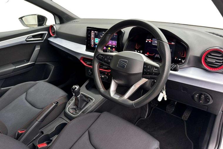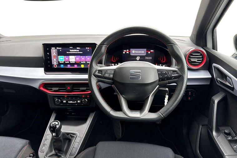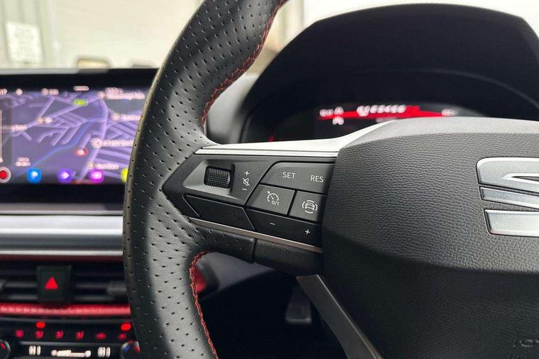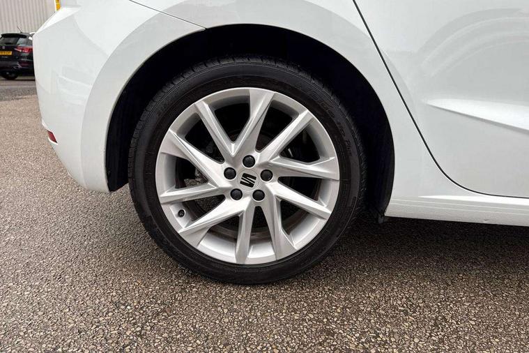 'Lights On' Reminder warning buzzer, 8" Digital cockpit, 9.2" touchscreen navigation system with type C USB socket, Voice control and DAB/AM/FM radio, Auto start and stop system, Bluetooth audio streaming with handsfree system, Digital clock, E-call, Full link smartphone integration with mirror link, wireless apple carplay, Google android auto + USB Type C cable for apple and android devices, Lane assist, Low fuel warning light, Outside temperature gauge, Power Steering, Seat connect with safety, service, remote and online, SEAT drive profiles and ECO function, SEAT logo boot release, Speed limiter, Trip computer, Sports suspension, Auxiliary input socket, Radio/MP3 player, SD card slot, Steering wheel mounted controls, Anti theft roof antenna, Auto dimming rear view mirror, Automatic rain sensing wipers, Black door mirrors, Body colour bumpers, Body colour door handles, Brilliant black window surrounds, Dark tinted rear windows, Electric adjustable/heated/folding door mirrors, Electric front windows, Electric headlight adjustment, Electric rear windows, Front/rear fog lights, FULL LED automatic headlights with dynamic headlight range control, coming and leaving home, LED daytime running lights, LED tail lights, Rear roof spoiler with FR twin exhausts, Rear side wing doors, Rear wiper, Third brake light, 3 seat bench in 2nd row, 60/40 split folding rear seat, Ambient interior lighting, Chrome detailing and black headlining, Cloth upholstery, Dual zone climate control with combination filter, Front courtesy lights, Front cupholders x 2, Front reading lights, Gear shift indicator, Glovebox, Height adjustable front and rear headrests (five), Height adjustable front seats, Height/reach adjust steering wheel, Illuminated air vent surrounds, Illuminated boot, Instrument lighting with brightness control, Isofix, Leather multifunction flat bottomed sports steering wheel, Passenger sunvisor, Single front passenger seat, Sports seats, Sunvisors with mirror and driver side card holder, 3 point seatbelts on all 3 rear seats, ABS, Active front headrests, Child locks on rear doors, Electronic stability control, Energy recovery system, Front assist forward collision warning and autonomous emergency braking, Front driver and passenger side airbags with curtain airbag and front passenger airbag deactivation, Hill hold control, Multi-Collision braking, Seat belt reminder for front and rear seats, Tiredness recognition system, Tyre pressure monitoring system, Electronic engine immobiliser, Locking wheel bolts, Perimeter alarm and interior monitoring with backup horn and tow away protection, Remote central locking + deadlocks, 17" Alloy wheels in Brilliant silver,