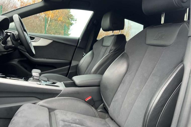 Audi connect safety and service (e-call), Audi connect with Amazon Alexa Integration, Audi drive select (Auto, Comfort, Dynamic, Efficiency and Individual), Audi parking system plus with front and rear sensors, Audi smartphone interface, Audi virtual cockpit - 12.3" full colour digital instrument cluster, vehicle/engine speed, Radio/media information+Driver assistance systems, Automatic start-stop system with coasting functionality and efficiency programme, Bluetooth interface, Electro-mechanical power steering, Email, calendar and text messages displayed via MMI, MMI nav+ with MMI touch - 10.1" high resolution MMI display, touch sensitive, 3D map, route/country info, dynamic route guide, personal route assist, Power operated tailgate, Rear view camera, Service interval indicator, Voice control system, Diesel particulate filter, Sports suspension lowered by 23mm, 8 passive loudspeakers, CD player, DAB digital radio reception, Two additional USB ports for rear passenger in rear centre console, Two SDXC card slots, Auto dimming door mirrors, Auto dimming rear view mirror, Body colour bumpers, Body colour door handles, Body colour front spoiler lip, Body colour side sill trim, Body coloured door mirrors, Electric adjustable heated door mirrors, Electric folding door mirrors, Electric front windows, Front fog lights, Honeycomb structure radiator grille in grained matt black, Kerb-view function for passenger side, LED headlights and rear lights with LED daytime running lights, LED side indicator lights integrated into door mirrors, LED third brake light, Matt aluminium silver tailpipe trim, Privacy glass, Rain and light sensors, Rear side wing doors, Rear wiper, S line badges on front wings, S line front and rear bumpers with side skirts, S Line rear diffuser in matt anthracite black with trim strip in matt aluminium silver, Side air inlets in grained matt black with matt aluminium silver inlay, Variable front intermittent wipers, Windscreen with acoustic glazing, 3 seat bench in 2nd row, 3 spoke high multifunction leather sport steering wheel with paddle shfit and S badging perforated leather grips, 4 way electric lumbar support for driver and front passenger, 40/20/40 split folding 3 seater rear bench seat, Adjustable steering column, Black cloth headlining, Black perforated leather gearknob, Contrast stitching on seats, steering wheel and gear lever gaiter, Deluxe 3 zone electronic climate control, Front centre armrest, Front head restraints, Front/rear floor mats, Heated front seats, Illuminated door sill trim with S logo, ISOFIX child seat mounting and top tether, Luggage compartment mat, Manual seat adjustment, Rear centre armrest, Rear headrests, Single front passenger seat, Stainless steel pedals, Sunvisors with vanity mirrors, LED interior light pack - A5/RS5, 3x3 point rear seatbelts, 6 airbags - Driver, front passenger, curtain and side airbags, Electromechanical parking brake, Electronic Stabilisation Control (ESC) including ABS, ASR and EDL, Front passenger airbag deactivation, Height adjustable front seatbelts, Hill hold assist, Manual child lock in rear doors, Multi collision brake assist, Pop-up bonnet for pedestrian protection, Pre sense city, Seatbelt monitoring, Tyre pressure warning, Variable restraint system, Warning triangle and first aid kit, Anti theft alarm system, Anti theft wheel bolts, Immobiliser, Keyless Go, Remote central locking, Matt brushed aluminium inlays, Tool kit, Tyre repair kit,
