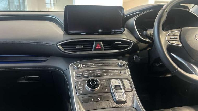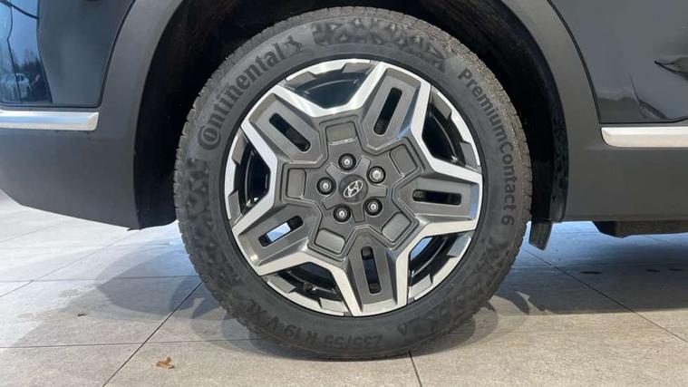 10.25" touchscreen satellite navigation with mapcare and live services, 4.2" TFT supervision cluster display, Apple car play/Android Auto, Blind spot collision avoidance assist, Bluetooth connectivity with voice control, Cruise control - smart adaptive speed control with stop and go function, Drive mode selector, Driver attention alert system, E-call, Emergency stop signalling system, Forward Collision Avoidance Assist (FCA) - Car, Pedestrian and Cycle, Forward Collision Avoidance Assist Junction Turning (FCAJX), Front parking sensor, Intelligent speed limit warning, Lane departure warning system with lane keep assist - LKAS, Parking - rear view monitor with parking guidance dynamic, PAS, Rear parking sensor, Safe exist assist (SEA), Smart electric tailgate with hand's free opening function, Smart posture control, Smartphone connectivity, Smartphone wireless charging plate, Trip computer, 3.3 kW On Board Charger, Charging cable - 7 pin type 2, Emergency 3 pin connector charging cable (ICCB), Self levelling suspension, Auxiliary input socket, DAB Digital radio, Krell premium audio with 10 speakers including external amplifier and subwoofer, Rear USB port, Steering wheel mounted controls, USB connection located in centre console, Automatic defog system, Automatic dimming rear view mirror, Automatic headlights with dusk sensor, Automatic windscreen wiper control, Body colour door handles, Body coloured bumpers, Body coloured door mirrors, Dynamic bending headlight/cornering lights, Electric adjustable/heated/folding door mirrors, Electric front/rear windows/one touch/anti trap, Follow me home headlights, Full LED headlights, Heated rear windscreen with washer, LED daytime running lights, LED front fog lights, LED rear fog light, LED rear lights, Positioning Lights - LED, Privacy glass in rear window and tailgate, Puddle lights, Rain sensor, Rear side wing doors, Rear wash/wipe with intermittent wipe setting, Roof rails, Smart high beam headlights, Solar glass with windscreen shade band, Third brake light, Trailer stability assist, Variable front intermittent wipers, Windscreen wiper de-icer, 12V power point in luggage area, 12V power points in front + rear centre consoles, 2 seat bench in 3rd row, 3 seat bench in 2nd row, 50/50 split/folding 3rd row of seats, 60/40 split folding slide/recline seats 2nd row, Adjustable head restraints, Bottle holders, Driver's lumbar support, Driver's seat electric adjustments, Driver/passenger sunvisors + illuminated vanity mirrors (drivers with ticket holder), Dual zone climate control, Faux leather door trim, Front and rear door pockets, Front armrest with storage compartment, Front cupholders, Front map reading lights, Front passenger's seat electric adjustments, Front seat and rear pockets, Front/rear interior lights, Grab handles (x3), Heated front seats, Heated outer rear seats, Heated steering wheel, Height/reach adjustable steering column, Illuminated cooling glove compartment, Isofix child seat preparation for front passenger seat, Isofix on 2nd row outer seats, Leather upholstery, Leather wrapped gear shift knob, Leather wrapped hand brake, Leather wrapped steering wheel, Luggage compartment lighting, Luggage cover, Luggage hooks, Luggage net, One-touch folding rear seats, Rear armrest with storage, Retractable load area cover, Single front passenger seat, Sunglasses holder, Underfloor storage system in load area, Trailer wiring pack - Santa Fe, 3 point seatbelts on all seats, ABS/EBD, Childproof rear door locks, Curtain airbags, Downhill brake control, Driver and passenger airbags, Electric parking brake, ESP, Front seatbelt pretensioner, Front side airbags, Height adjustable front seatbelts, Hill start assist control (HAC), Passenger airbag deactivate switch, Rear seat belt pretensioners, Rear seat Occupancy alert, Seat belt reminder, Seatbelt warning lamp, Traction control, Tyre pressure monitoring system, Deadlocks, Engine immobiliser, Keyless entry with start/stop button, Locking wheel nuts, Remote control central locking, Speed sensitive auto door locking, Thatcham category 1 alarm, Faux leather wrapped dashboard, 19" Alloy wheels, Temporary spare wheel (space saver),