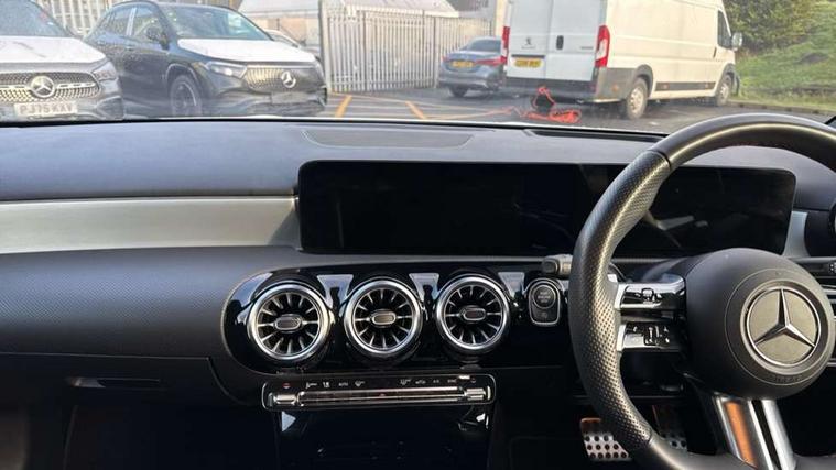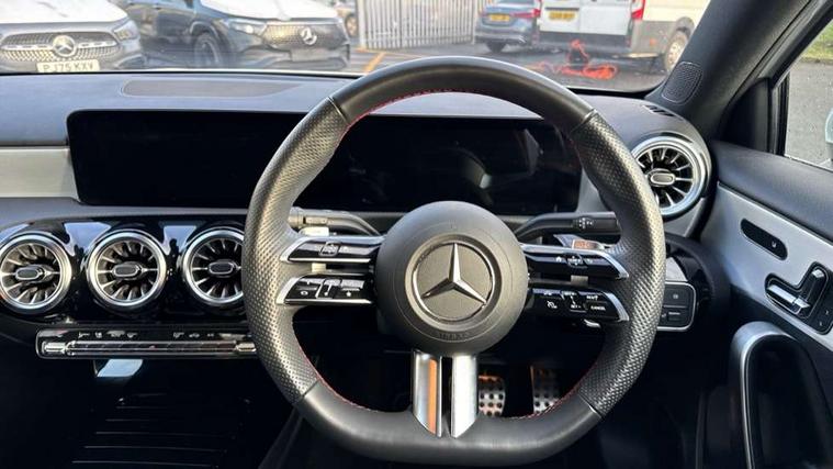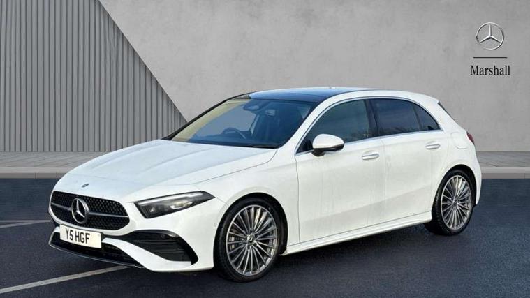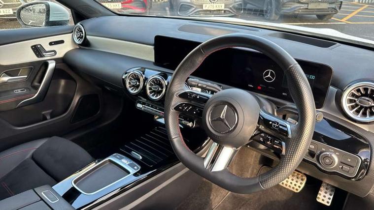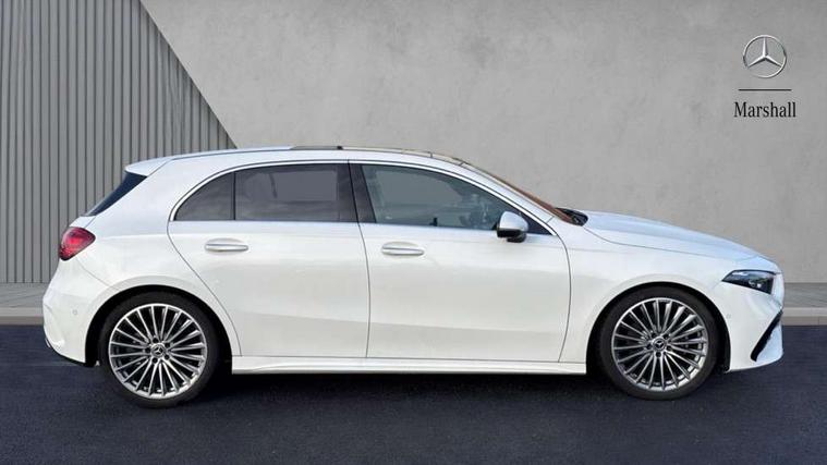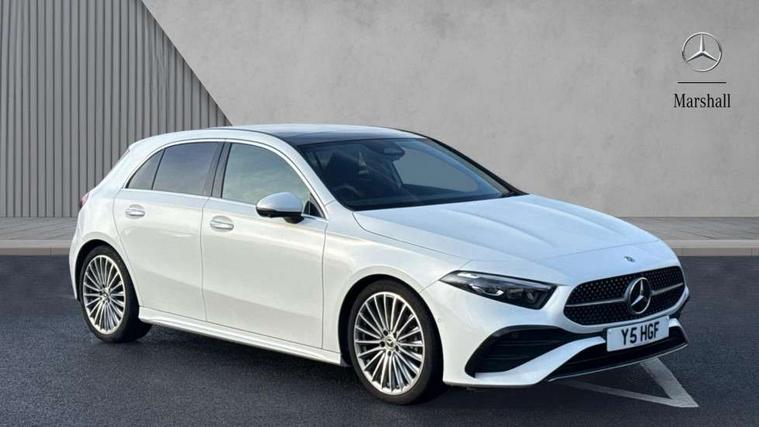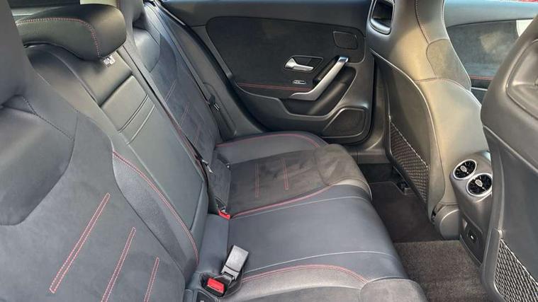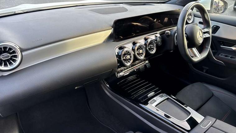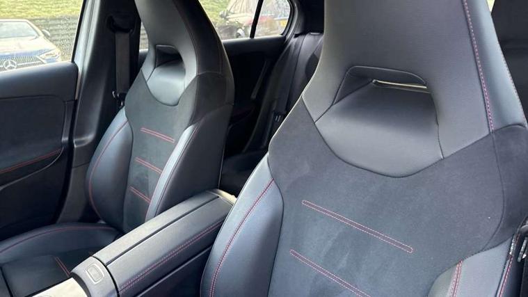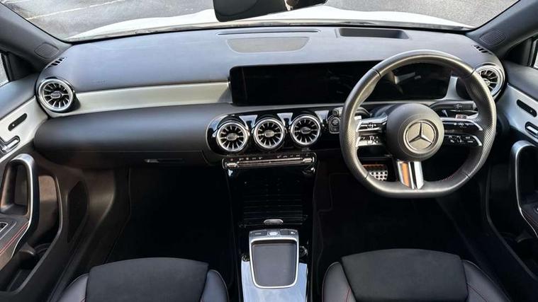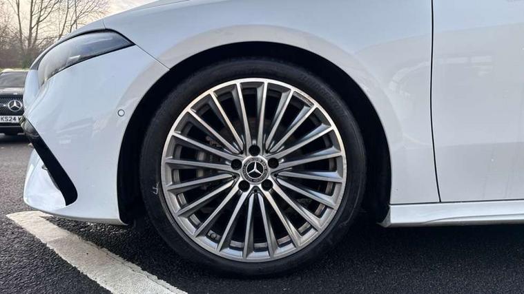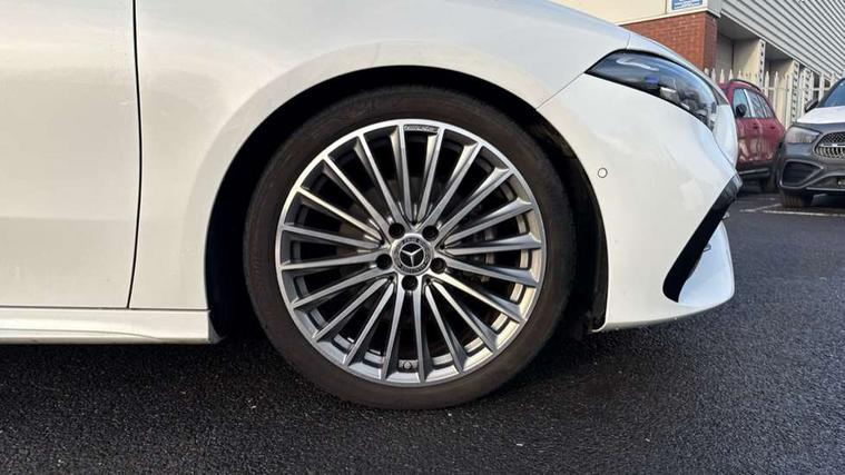 10.25 inch touchscreen central media display, 10.25" Digital instrument cluster display screen, Attention assist, Brake pad wear indicator warning light, Car wash mode, Cruise control + speed limiter, Direct steering, Direction indicators with lane change function, Dual bluetooth interfaces, DYNAMIC SELECT with a choice of driving modes (ECO, Comfort, Sport and Individual), Easy pack tailgate hands-free access, ECO start/stop function, Engine start/stop button, Fluid level warning indicator for fuel, oil, coolant and washer fluid, Hard-disk navigation, Head up Display, Hey Mercedes Voice activation, Lamp failure indicator, MBUX augmented reality for navigation, MBUX Interior assistant, Mercedes me connect including emergency call system, accident recovery, breakdown and maintenance management, Mercedes me remote services, Outside temperature gauge, Owners manual in English, Pre-installation of private car share, Preinstallation for Mercedes Benz link, Remote boot closing, Service indicator (ASSYST), Smartphone integration with Apple CarPlay and Android auto, Speed sensitive power steering, Trip computer in multifunction display with current consumption indicator, Wireless charging, Lowered comfort suspension, DAB Digital radio, MBUX multimedia system, Mercedes Benz advanced sound system (225 W) with 10 speakers, 1 central speaker, speakers on doors, a tweeter on door, one sub woofer + boost amplifier, 4 Electric Front and Rear windows, Adaptive brake lights, AMG body styling - AMG front apron with front splitter and AMG rear apron and visible exhaust tailpipe trim elements, Body colour bumpers, Body colour door handles with chrome inserts, Body colour side skirt, Body coloured door mirrors, Chrome beltline strips, Diamond radiator grille with pins in fine star pattern, Electric adjustable and heated door mirrors with integrated LED side indicators, Exhaust system with 2 visible tailpipe trim elements and rear apron, Headlamp assist automatic headlamp activation, Heat insulating dark tinted rear and rear side windows, Heated glass rear windscreen + timer control, LED daytime running lights, LED High level third brake light, LED tail lamp, Multibeam LED headlamps with adaptive highbeam assist and cornering function, Panoramic sliding sunroof, Privacy glass, Radio aerial, Rain sensing windscreen wipers with two sensitivity settings, Rear fog lights, Rear side wing doors, Rear windscreen wiper, Window line trim strip in chrome, 3 seat bench in 2nd row, 3 Spoke flat bottom leather multi function steering wheel with perforated leather in grip area, 40:20:40 split folding rear seats, AMG floor mats, Automatic child seat recognition sensor, Black air vents with surround in silver chrome, Black roof lining, Brushed stainless steel sports pedals with rubber studs, Electrically adjustable front memory seats including lumbar support and backrest inclination, Front centre armrest with stowage, Front seat backs luggage nets, Galvanished gear shift paddles on steering wheel, Heated front seats, Height/reach adjustable steering column, Illuminated Mercedes Benz lettering front door sills with changeable cover, Interior lighting - 64 colour Ambient lighting, Interior mirror with reading lamps in black and frameless, Rear armrest with 2 cupholders, Seat occupancy sensor for front passenger seat, Single front passenger seat, Sports seats with integrated headrests, Stowage compartment in centre console with retractable cover, Sunvisors with illuminated vanity mirrors, Twin front cupholders, Two zone thermotronic luxury automatic climate control, Light and sight pack - A Class, Mirror package - A Class, Parking pack with 360 degree camera - A Class, Seat comfort pack - A Class, USB pack plus - A Class, 3 rear 3 point seatbelts, ABS with Brake Assist, Active bonnet, Adaptive brake assist with hold function and hill start assist, Black seatbelts, Bonnet with power domes, Childproof locks manually operated for rear doors and electrically operated for rear power windows, Crash responsive emergency lighting, Driver and passenger head and side airbags, Drivers knee airbag, Dual stage driver/passenger airbags, Electronic parking brake, ESP curve dynamic assist, ESP with ASR, Exit warning, Front and rear seatbelt reminder, ISOFIX and top tether child seat fixing points in two outer rear seats, Tyre pressure monitoring system, Warning triangle and first aid kit, Window airbags, Alarm system/interior protection/immobiliser, Guard 360 degree vehicle protection, Keyless entry lock/unlock, Keyless Go, Remote central locking and crash sensor with emergency opening function, Light longitudinal grain aluminium trim, 19" AMG multi-spoke light alloy wheels, aerodynamically optimised, painted in titanium grey with high sheen finish, Summer tyres, Tirefit sealant kit,