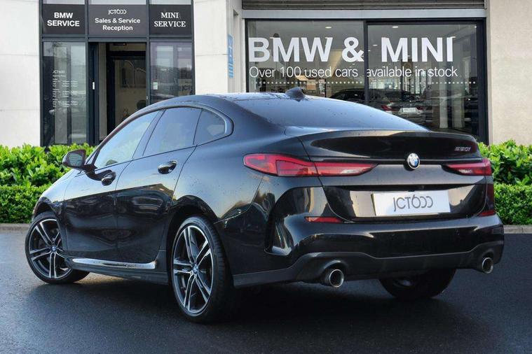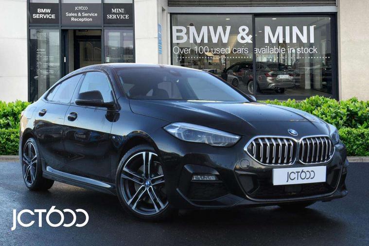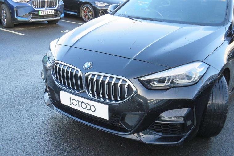 Active guard plus, Attentiveness assist, Auto start-stop, Bluetooth hands free facility with USB audio interface + WiFi interface for wireless connection of mobile terminal devices + audio streaming, BMW Intelligent Personal Assistant, BMW Live Cockpit Professional with 10.25" high resolution instrument and control display, BMW Online services, BMW operating system with 7.0 mid interface, BMW Teleservices, Characteristic map controlled oil pump system, Check Control warning system for monitoring of lights and door/luggage compartment open warning, Cruise control with braking function, iDrive controller with 7 short cut favourite buttons on centre console, Integrated navigation data with map data via USB +features such as 3D landmarks and micro city models, Integrated owners handbook, Intelligent voice assistant, Lane departure warning system, M Sports steering, On board computer - average speed+fuel consumption, service interval, clock/date, odometer/trip meter, outside temperature display and ice warning, Optimum shift indicator, Personal Profile, Pull away assistant, Speed limiting function, 2 balance shafts, 7 speed sport automatic transmission with double clutch technology and sportier application, Aluminium lightweight construction, BMW TwinPower twin-scroll Turbo four-cylinder petrol engine, Double VANOS, Drive performance control with ECO PRO comfort + sport mode, Electronic differential lock, High precision injection, Larger fuel tank capacity (50 litres), M Sport suspension with stiffer spring/damper set-up and vehicle lowered by 10mm + twin tube gasfilled shock absorbers and Anti roll bars, Performance Control, Petrol Particulate Filter, VALVETRONIC engine management, 2x USB Type C ports (for charging and data transfer), 4G LTE Connectivity with hard wied 4G network sim card, DAB digital radio, MP3 players and RDS double tuner, Automatically dimming rear view mirror, Body colour door handles, Body colour mirror caps, Chrome 'M' logo side designation, Chrome exhaust single tailpipe, round, Direction indicator side lights integrated exterior mirrors, Electric windows - front and rear, with open/close fingertip control and trap release, Exterior mirrors - electrically folding with anti-dazzle, Fading support, Follow me home headlights, Front and rear bumper system with replaceable deformation elements, Front door sill finishers in black plastic with M designation in metallic look, Heated, electrically adjustable exterior mirror aspheric on driver side, convex on passenger side, High gloss black B pillar finish, High gloss shadow line exterior trim, High level third brake light, LED daytime running lights, LED front fog lights, Lightweight engineering, Model designation on right side of tailgate, Preparation for high beam assistant, Rain sensor with automatic headlight activation, Rear boot, Rear fog lights, Rear side wing doors, Reversing light in rear light cluster, Welcome lighting, 12V power socket in centre console, 2 cupholders in front centre console, 3 rear seat head restraints, 3 rear seats, 3 spoke M sports design leather steering wheel finished in nappa leather with specific M badge, Anthracite finished floor mats with contrasting surround, Anthracite headlining, Automatic two zone climate control air conditioning, Child seat ISOFIX attachment for two outer rear seats and front passenger seat with anchorage points, Conditioned based service, Driver and front passenger seat heating, Front and rear door pockets including bottle trays, Front and rear side armrests integrated into door trim, Front armrest foldable with integrated storage compartment, Front centre interior light over interior mirror and rear centre automatic interior light when door is opened/ignition switched off or via remote key, Front head restraints, Front passenger seat, Front sports seats with electric side bolster adjustment, Glove compartment, Glovebox with light, Luggage compartment lighting, Manually adjustment steering wheel column, Multi-function controls for steering wheel, Sun visors with vanity mirrors and insert tab, Through loading system with 40/20/40 split folding rear seat, Two lashing eyes, Additional interior lighting pack - 2 Series Gran Coupe, Connected pack professional - 2 Series Gran Coupe, Extended storage pack - 2 Series Gran Coupe, M Sport exterior styling aerodynamics pack - 2 Series Gran Coupe, 2 tone horn, Airbag - Front driver and passenger, front and rear head, front side, curtain head protection, manual deactivation of front passenger airbag possible, Anti lock braking system (ABS) with cornering brake control, BMW emergency call, Brake drying, Braking readiness, City braking function, Crash sensor activating of airbags, Unlocking doors, hazard warning lights, interior light, safety battery terminal, Dynamic stability control + (DSC+), Dynamic Traction Control - DTC, Electrically operated hand brake, Rear brake discs, Rear child proof door locks, Seat belt security check for driver and front passenger, Seatbelt warning, Side impact protection, Three point seat belts on all seats including front belt stopper, pyrotechnic belt tensioners and belt force limiters, Trailer stability control, Tyre pressure monitoring system, Ventilated front disc brakes, Warning triangle and first aid kit, Central locking switch for all doors, fuel filler cap and luggage compartment, Deadlocking function system to all doors, Drive away locking system on all doors and luggage compartment, Locking wheel bolts, Start/Stop button (illuminated) in centre console with keyless engine start and Auto Start-Stop deactivation button, Thatcham Cat.1 alarm and immobiliser, Two remote control key with integrated key - open/close doors/fuel flap/tailgate +1 button for unlock compartment with M design high gloss black inlay, Contrast stitching on instrument panel, 18" Burnished M double spoke bi-colour alloy wheels finished in orbit grey - style 819M, Reduced rolling resistance tyres,