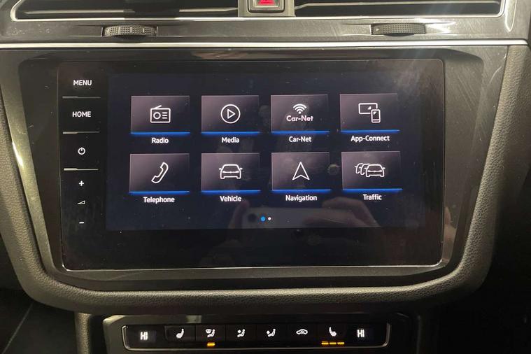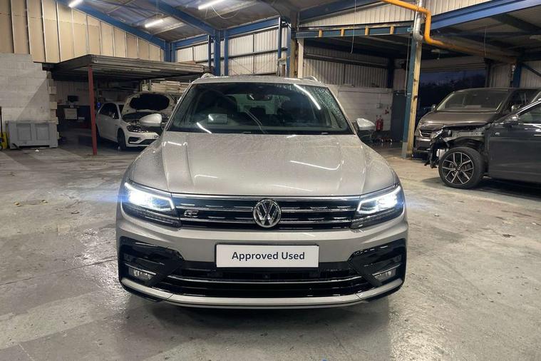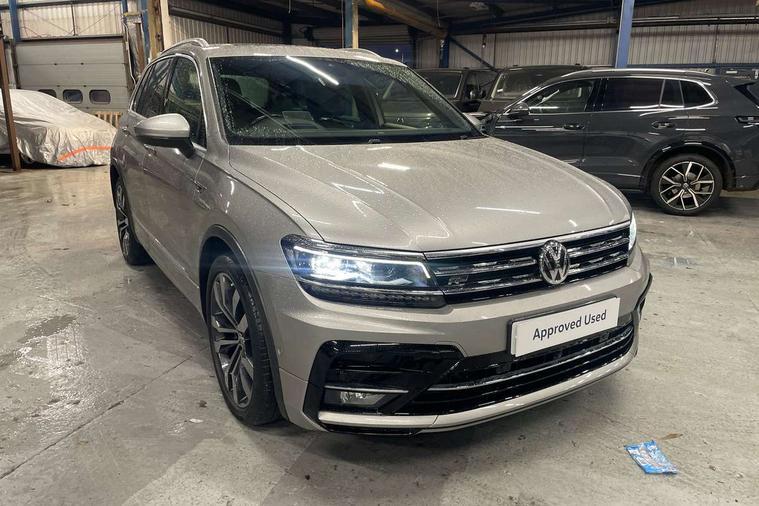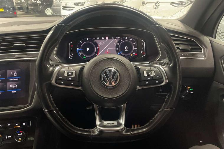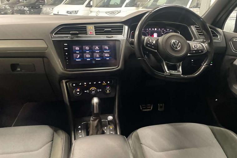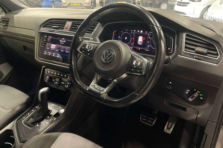 2D/3D map view, Active information display, Adaptive cruise control, App-Connect, Area view with park assist steering and front and rear parking sensors, Bluetooth phone integration system, Car information display, Distance control assist, Driver alert system with fatigue detection, Driver profile selection, Front assist, radar sensor controlled distance monitor, city emergency braking + predictive pedestrian protection, Fully electric tailgate + keyless entry and start, Instrument cluster, Lane assist, Lights on warning, Multifunction computer with visual gear change recommendation for fuel consumption, Outside temperature display, Progressive power assisted steering, Service interval indicator, Speed limiter, Start/Stop function, Warning sound and light for doors and tailgate open, Battery regeneration during braking, Diesel particulate filter, Misfuel prevention device for diesel engine, XDS electronic differential lock for improved traction and handling, 2 x USB connection + USB charging socket, 4 X 20 watt output, DAB Digital radio, SD card slot, Simultaneous pairing of 2 compatible mobile devices, SMS functionality - read, compose and send SMS messages using touch-screen display, Title and cover art display, 3D effect cherry red LED rear tail lights, Aluminium decorative inserts in dash and door panels, Auto dimming interior mirror, Automatic activation of hazard warning lights, Body colour door handles, Body colour door mirrors, Body colour rear spoiler, Body colour side skirt, Body coloured bumpers, Chrome side window surrounds, Chrome trimmed radiator grille, Coming/leaving home lighting function, Dusk sensor + auto driving lights, Electric panoramic sunroof with sunblind, Electrically heated and foldable door mirrors, door mirror puddle lights and reverse activated kerb view adjustment on passenger's door mirror, Front and rear electric windows, Heated rear window, High level 3rd brake light, LED headlights with dynamic light assist daytime running lights and cornering front fog lights, LED rear number plate lights, Piano black front air intake and rear diffuser, R Line body kit, R Line side sills, Rain sensor windscreen wipers, Rear tinted glass from B-pillar backwards approx 65% tinted, Rear windscreen washer and wiper with interval delay, Side skirts and rear bumper with chrome insert, Silver front underbody protection and rear diffuser, Silver roof rails, Trailer Stability Programme, Unique R Line badging, Windscreen wipers/ intermittent wipe + 4 position delay, 12V socket in centre console storage area, 2 cup holders in front, 3 rear headrests, 3 zone climate control, 4 load lashing points, 40:20:40 split folding rear seats, Bag hook in luggage compartment, Black headlining, Foldable front passenger seat backrest, Front + rear carpet mats, Front centre armrest with 12v socket, Front centre armrest with storage + rear 2 air vents, Front seat back storage pockets, Front seat R Line logo with rear seat backrest, Front seatback folding tables, Height/reach adjust steering wheel, Illuminated driver/passenger vanity mirrors, Illuminated scuff plates, Instrument lighting white adjustable panel illumination, Interior light with delay, Isofix Preparation 2 Rear child seats, Leather gear knob, Load through provision with 2 cupholders when folded, Lockable cooled glovebox, Luggage compartment lighting, Map pockets on front seats, Passenger seat height adjuster, Removable luggage cover, Sliding/reclining rear seats, Stainless steel pedals, Storage compartment in driver's door, Storage compartment in passenger's door, Storage compartment in rear doors, Storage compartments in luggage area left and right, Storage tray on dashboard, Sunglasses storage, Three spoke leather trimmed multifunction steering wheel with aluminium inserts and R Line Logo including paddle shift, Unique R Line door sill protectors, Variable boot floor, height adjustable and removable, Ambient lighting pack - Tiguan, R Line styling pack - Tiguan, 3 rear 3 point seatbelts, ABS+EBD+Brake assist, Active bonnet, Active pedestrian safety system, Curtain airbags, Driver/Front Passenger airbags, Driver/Passenger whiplash optimised head restraints, Drivers knee airbag, DTC - Drag torque control, Electronic parking brake with auto hold, ESC with EDL, ASR, EDTC and trailer stabilisation function, First aid kit, Front seat side impact airbags, Front side airbags, Front ventilated disc brakes and rear disc brakes, Head airbag system, Height adjustable front 3 point seatbelts + pretensioners, Hill hold control, Passenger airbag deactivate switch, Passenger knee airbag, Pre crash preventive occupant protection, Rear side airbags, Rigid safety cell with front and rear crumple zones, Two tone horn, Warning sound and light for front seat belts if unfastened, Warning triangle, Alarm with interior protection, Electronic engine immobiliser, Remote central locking with 2 remote folding keys, Chrome door trim inserts, Dark grey decorative inserts in dash and door panel, Piano black decorative inserts in centre console, 20" Suzuka alloy wheels with mobility self sealing tyres + anti theft wheel bolts, Steel space saver spare wheel,