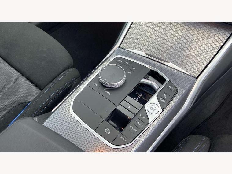 Active guard plus, Attentiveness assist, Automatic Start/stop button, Bluetooth Wi-Fi interface, BMW iDrive, BMW Teleservices, ConnectedDrive Services - last state call, Intelligent voice assist, 2 USB, 4G LTE connect, Live cockpit plus with Navigation + 12.3" instrument display + 14.9" display, Intelligent voice assist, 2 USB, 4G LTE connect, Oil sensor for level and grade, Personal e-SIM, Shifting point display, Variable sport steering, Double joint spring strut front axle, Fuel tank breather system, Steptronic Sport automatic transmission with steering wheel mounted gearshift paddles launch control and xtreme drive lever control, DAB tuner, 3rd brake light, Auto dimming rear view mirror, Automatic headlight beam throw control with load dependent regulating reaction, dynamic compensation of braking dive and acceleration squat, Bi-LED Low and high beam headlights, BMW emblem, engine compartment lid and tailgate, Body colour roof fin, Door sill strips, Electric windows - front and rear, with open/close fingertip control, anti-trap facility and comfort closing, Fading support, Follow me home headlight function, Front and rear bumper system with replaceable deformation elements, Front apron plastic in body colour, Fuel filler flap - right rear in body colour, Heat protection glazing on front windows and windscreen, High gloss chrome kidney frame with high gloss black kidney struts, LED daytime running lights, LED rear lights, LED turn indicator, Licence plate panel integrated into front bumper and tailgate, M high gloss shadow line exterior trim, Matt black B-pillar finsher, Matt black window recess cover, One piece front bumper cover including towing eye cover in body colour, Rain sensor with automatic headlight activation, Rear boot, Rear side wing doors, Reversing lights, Side frame decorative moulding black matt, Trailer stabilisation logic, Visible exhaust tailpipe finisher, Welcome lights in interior and door handle area, Windscreen washer jets, 12V power socket in front storage compartment, 2 front cupholder in centre console with clamping elements and matt black inlay, 3 seat bench in 2nd row, 3 spoke M Sport multifunction flat bottom leather steering wheel, 3 zone automatic air conditioning, 40:20:40 split folding rear seat with loading system, Anthracite headlining, Armrest integrated in front and rear door trim + front centre console armrest, BMW ID, Cruise control operation in steering wheel, Driving experience mode switch, Folding rear centre armrest with 2 cupholders, Front and rear headrests, Front and rear velour floor mats, Front reading light, Heated front seats, Height adjustable mechanically and infinitely variable steering column, Illuminated armrest storage compartment, Illuminated glove compartment, Illuminated luggage compartment, Lashing eyelets in luggage compartment, Single front passenger seat, Sunvisors with illuminated vanity mirrors and ticket pocket, Through load system, Toolkit located in luggage compartment, Connected pack professional - 3 Series Saloon/Touring, Interior and exterior mirror pack - 3 Series Touring/Saloon, M sport exterior styling pack - 3 Series Saloon/Touring, Parking assistant pack - 3 Series, 3x3 point rear seatbelts, ABS, Automatic Stability Control (ASC), BMW emergency call, Child locks on rear doors, Cornering brake control, Crash sensor activating of airbags, Unlocking doors, hazard warning lights, interior light, safety battery terminal, Drive-off assistant, Driver and front passenger with seat occupancy detection for driver's and passenger side, Driver and passenger side airbags, body protection at side and airbags deploy from seat backrests, Dry braking, DSC - Dynamic Stability Control, Dynamic brake control, Dynamic Traction Control - DTC, Electric parking brake including automatic hold function and automatic release of the parking brake when driving off, Electronic differential lock control (EDLC), Front airbag deactivation, Front airbags for driver and front passenger, Head airbags in 1st and 2nd row, head protection at side, curtain airbags open from headliner above 1st and 2nd row, Plastic fuel tank, Side impact protection, Tyre pressure sensors, Ventilated front and rear disc brakes, Warning triangle and first aid kit, Alarm system, Centre lock switch, Closing system with central locking, Electronic vehicle immobiliser, Locking wheel bolts, Tyre repair kit,