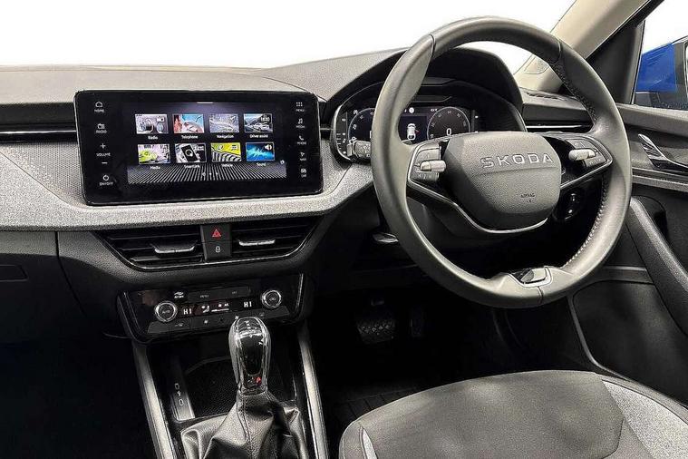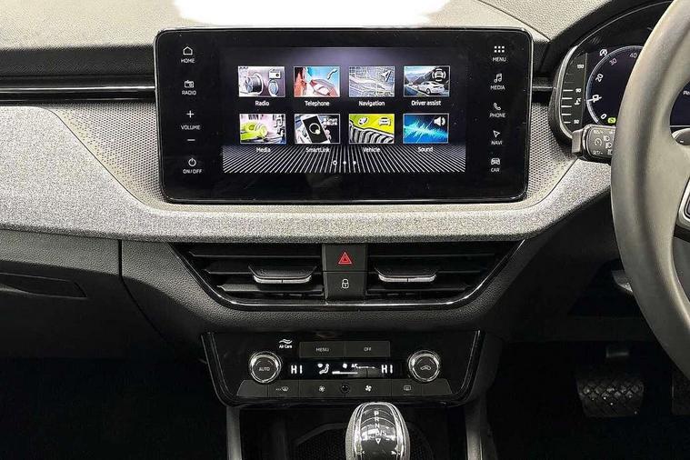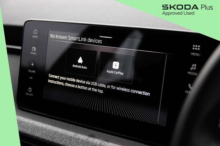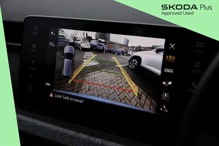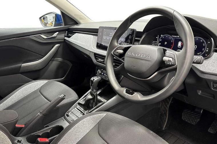 Advanced driver attention and drowsiness monitor, Bluetooth, e-Call (emergency call), Front assist system, PAS, Rear parking sensors, Rear view camera, Speed limiter, Tailgate, Traffic sign recognition, Virtual Cockpit - 10.25" digital display, Voice control system, Wireless smartlink, 4 USB C ports, 8 Speakers, 9.2" Skoda navigation display, DAB radio, Auto dimming rear view mirror, Automatic headlamp activation with Coming home and Leaving home feature, Automatic high/low beam, Body colour bumpers, Body colour door mirrors and handles, Chrome moulding around grille, Front and rear electric windows, Full LED headlights, Heated rear window, LED 3rd brake light, LED brake lights, LED daytime running lights, LED front turning lights, LED high beam, LED low beam, LED taillights, Rear LED fog light, Rear side wing doors, Rear wiper, Tinted windows, Unique dark chrome design logo on alloy wheels, 12V socket in luggage compartment, 3 seat bench in 2nd row, Black / Grey armrest stitching, Black hotstamping, Cargo elements, Chrome inner door handles, Door inserts in satin black, Driver and passenger sun visors with vanity mirror, Dual zone climate control, Front and rear roof lights, Front centre armrest, Front head restraints, Glasses storage in roof liner, Height adjustable driver seat, Height adjustable passenger seat, Ice scraper, Illuminated glove compartment, Inner circulation control with pollen filter, ISOFIX for front passenger seat, Isofix preparation for back seats, Leather gearknob and handbrake lever, Loft cloth upholstery, Luggage net under rear parcel shelf, Manual lumbar support for front seats, Net package and top tether hooks in boot space, Pearl grey ceiling, Pocket on the back of both front seats, incl. mobile phone pockets, Single front passenger seat, Skoda lettering on steering wheel, Textile floor mats, Third rear headrest, Ticket holder, Top tether for front passenger seat, Umbrella in driver's door, 3x3 point rear seatbelts, ABS, Child locks, Curtain airbags and front side airbags, Disc brakes, Driver and front passenger airbags, ESP, Hill hold control, Manual leather parking brake, One tone horn, Passenger airbag switch off function, Seatbelt reminder for driver and front passenger, Tyre pressure monitoring system, Anti theft alarm system with interior monitoring, backup horn and towing protection, Anti-theft wheel bolts, Remote central locking with 2 remote folding keys, SAFE function for remote central locking, Decord pad, door inserts Kota uni,