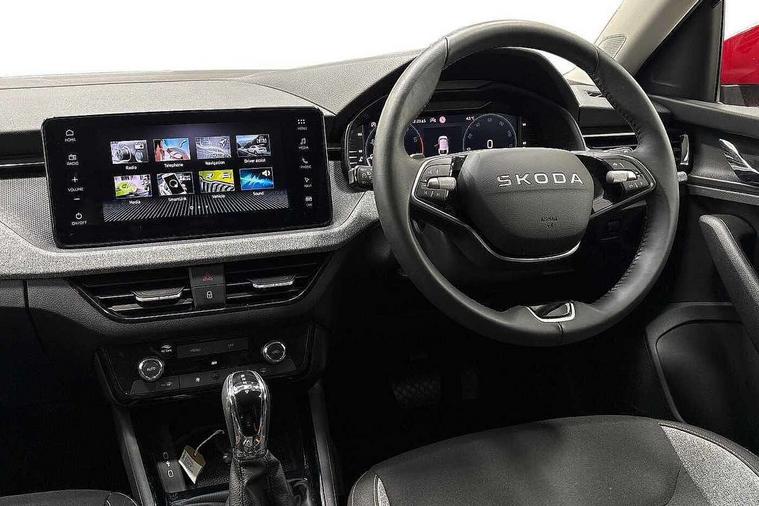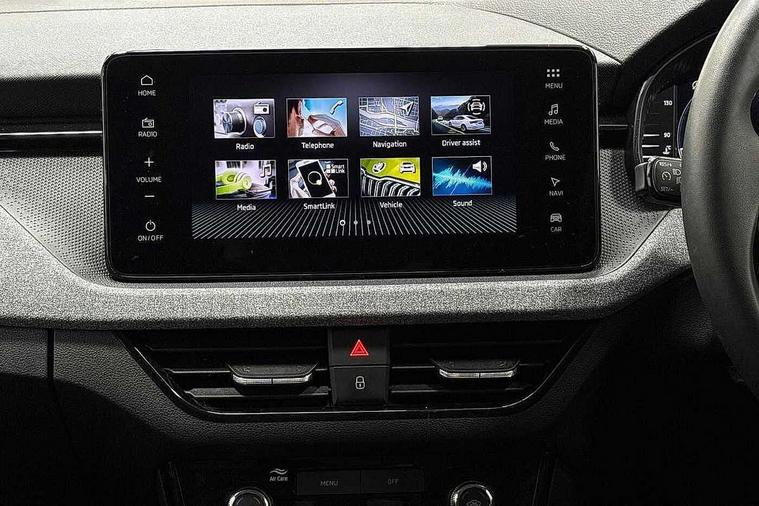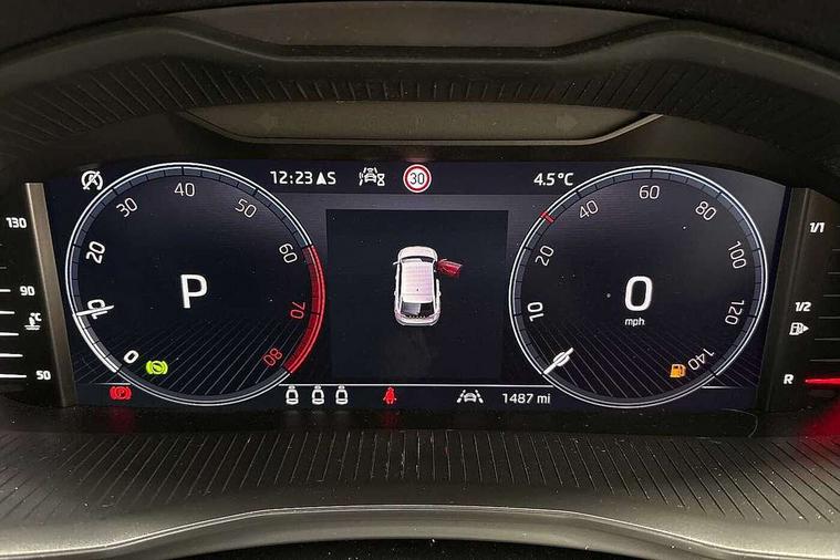 Advanced driver attention and drowsiness monitor, Bluetooth, e-Call (emergency call), Front assist system, PAS, Rear parking sensors, Rear view camera, Speed limiter, Tailgate, Traffic sign recognition, Virtual Cockpit - 10.25" digital display, Voice control system, Wireless smartlink, 4 USB C ports, 8 Speakers, 9.2" Skoda navigation display, DAB radio, Auto dimming rear view mirror, Automatic headlamp activation with Coming home and Leaving home feature, Automatic high/low beam, Body colour bumpers, Body colour door mirrors and handles, Chrome moulding around grille, Front and rear electric windows, Full LED headlights, Heated rear window, LED 3rd brake light, LED brake lights, LED daytime running lights, LED front turning lights, LED high beam, LED low beam, LED taillights, Rear LED fog light, Rear side wing doors, Rear wiper, Tinted windows, Unique dark chrome design logo on alloy wheels, 12V socket in luggage compartment, 3 seat bench in 2nd row, Black / Grey armrest stitching, Black hotstamping, Cargo elements, Chrome inner door handles, Door inserts in satin black, Driver and passenger sun visors with vanity mirror, Dual zone climate control, Front and rear roof lights, Front centre armrest, Front head restraints, Glasses storage in roof liner, Height adjustable driver seat, Height adjustable passenger seat, Ice scraper, Illuminated glove compartment, Inner circulation control with pollen filter, ISOFIX for front passenger seat, Isofix preparation for back seats, Leather gearknob and handbrake lever, Loft cloth upholstery, Luggage net under rear parcel shelf, Manual lumbar support for front seats, Net package and top tether hooks in boot space, Pearl grey ceiling, Pocket on the back of both front seats, incl. mobile phone pockets, Single front passenger seat, Skoda lettering on steering wheel, Textile floor mats, Third rear headrest, Ticket holder, Top tether for front passenger seat, Umbrella in driver's door, 3x3 point rear seatbelts, ABS, Child locks, Curtain airbags and front side airbags, Disc brakes, Driver and front passenger airbags, ESP, Hill hold control, Manual leather parking brake, One tone horn, Passenger airbag switch off function, Seatbelt reminder for driver and front passenger, Tyre pressure monitoring system, Anti theft alarm system with interior monitoring, backup horn and towing protection, Anti-theft wheel bolts, Remote central locking with 2 remote folding keys, SAFE function for remote central locking, Decord pad, door inserts Kota uni,