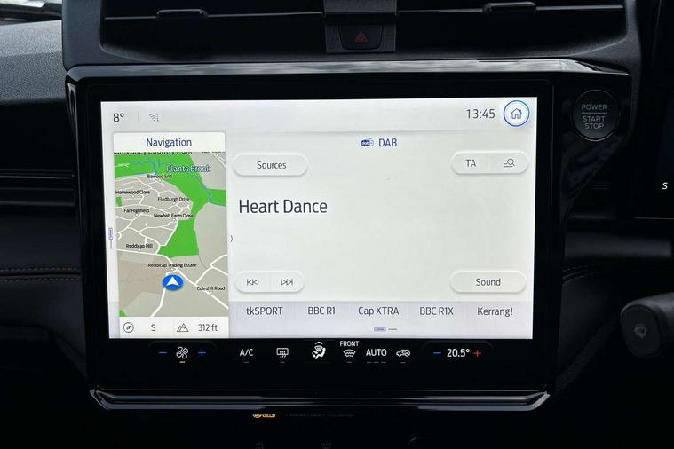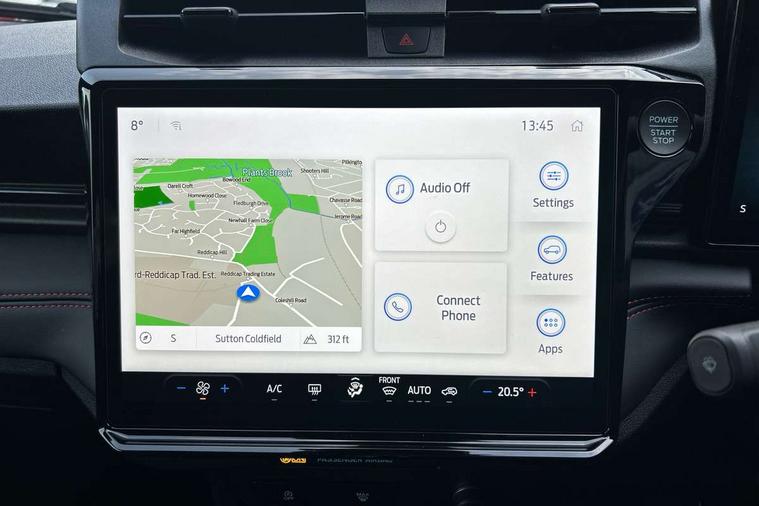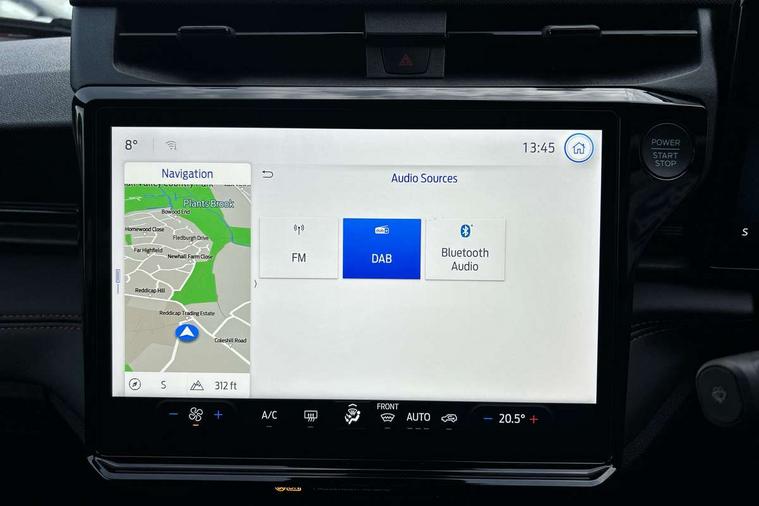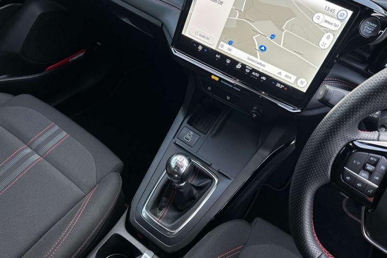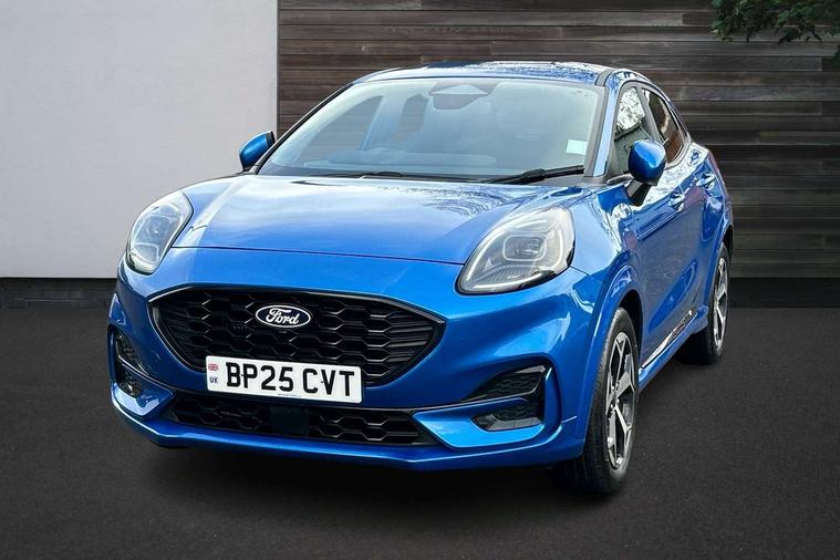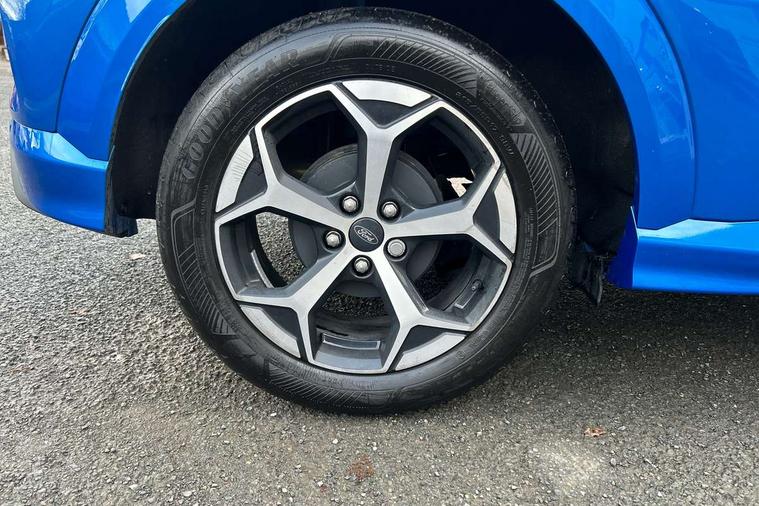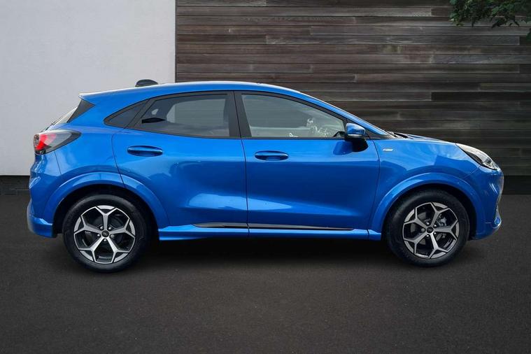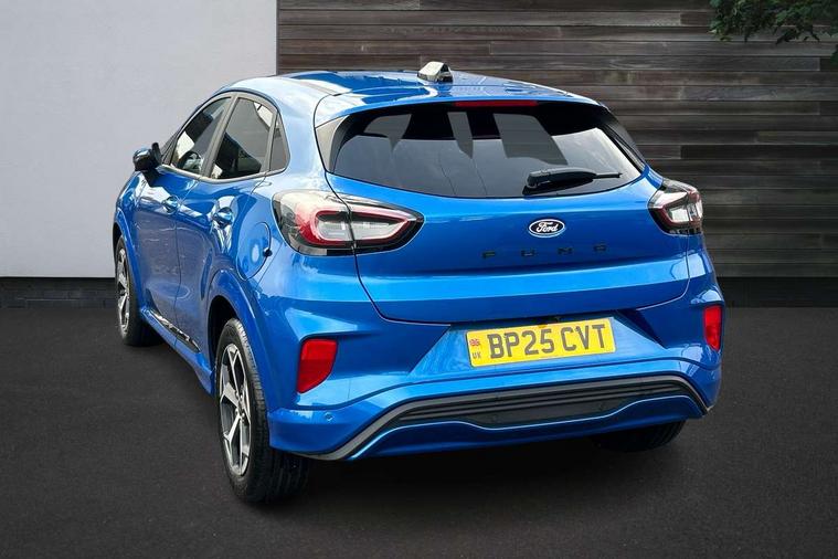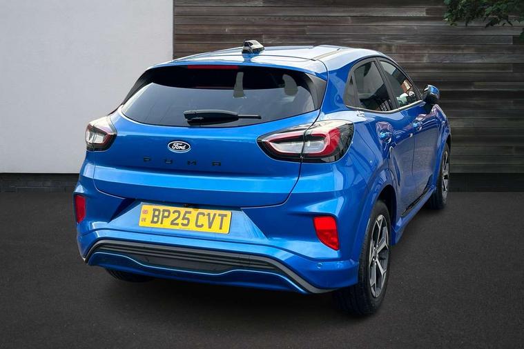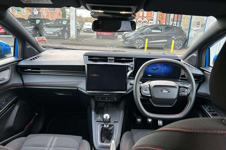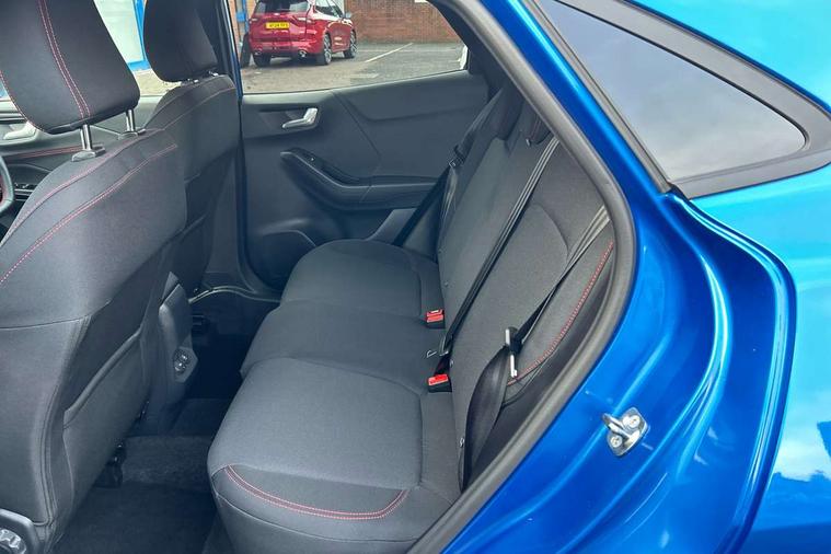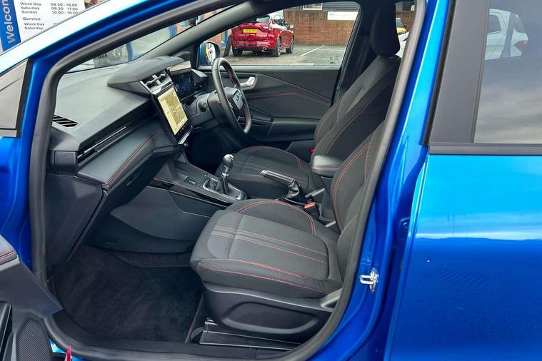 Driver impairment monitor, Emergency call service, Ford easy fuel, Full digital 12.8" instrument cluster, Lane keeping aid with lane departure warning, Power assist steering, Selectable drive modes(Normal, Eco, Sport, Slippery and Trail), Speed sign recognition, Sport suspension, 12" landscape touchscreen display with wireless apple car play and android auto 6 speaker audio system, Ford pass connect and emergency assistance, Ford SYNC4 with connected navigation, Automatic headlights with rain sensing wipers and auto high beam, Front fog lamps, LED daytime running lights, LED rear lamps, LED third brake light, Power foldable heated door mirrors with puddle lamps and puma logo protection, Quickclear heated windscreen, Rear privacy glass, Rear side wing doors, Rear wiper, ST-Line body styling kit with unique grille, 3 seat bench in 2nd row, Centre console with armrest and stowage, Electronic automatic temperature control (EATC), Ford megabox extended bootspace, Front and rear head restraints, Front floor mats, Manual 4 way driver seat adjust with lumbar adjustment, Single front passenger seat, ST- Line cloth trim with red stitching, 3 rear seatbelts, Child safety lock, Electronic stability control (ESC) and hill start assist, Pre-collision assist with autonomous emergency braking, pedestrian/cyclist detection & post-collision braking, Tyre pressure monitoring system (TPMS), Thatcham alarm,