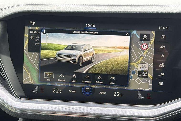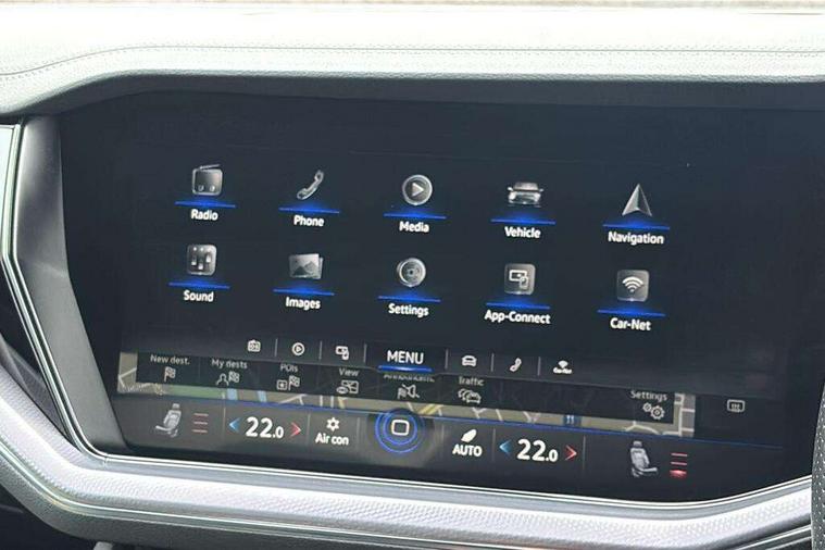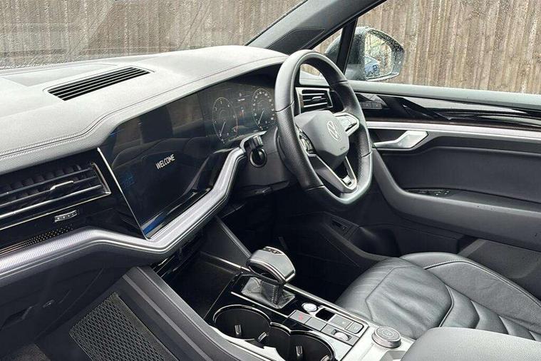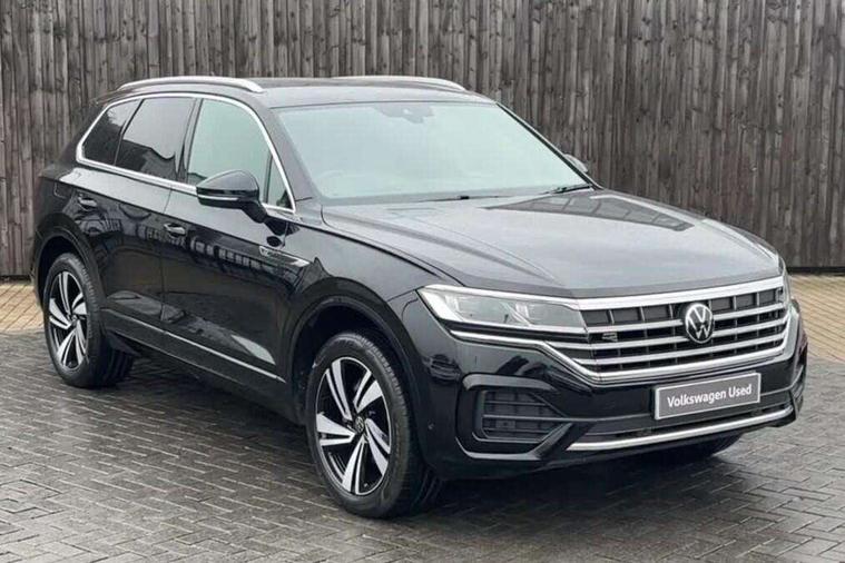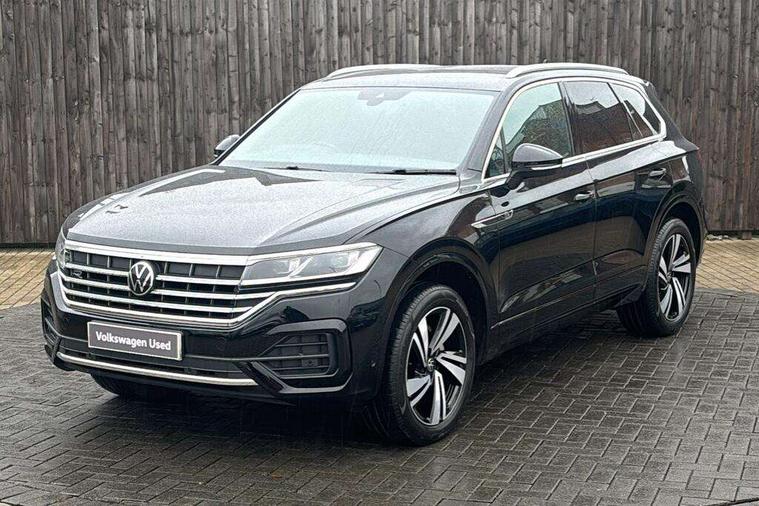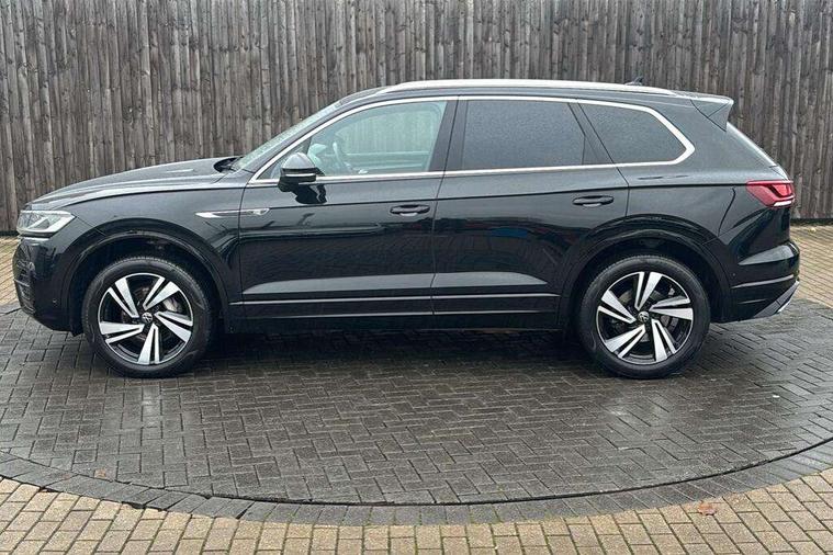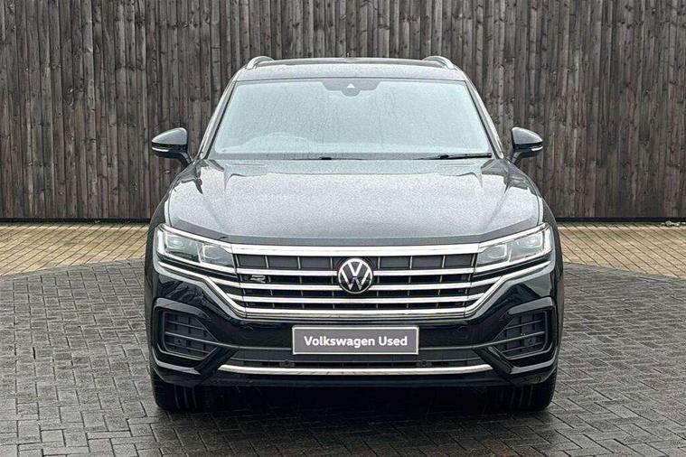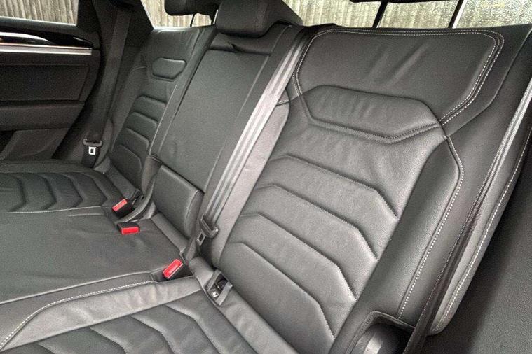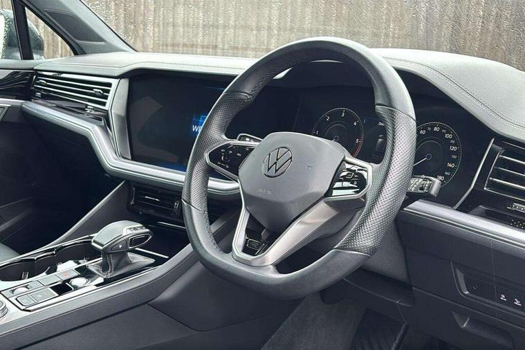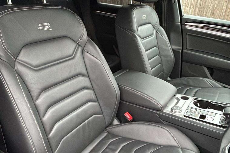 2D/3D map view, ACC - Adaptive cruise control with front assist, forward collision warning, distance monitoring, city emergency brake and speed limiter, Apple car play/Android Auto, Audible and visual fatigue detection system, Bluetooth hands free telephone connection, Car information display, Drive select with Damper control, Driver alert system, Driving Mode Selection with four preset modes - Eco, normal, sport or individual modes, Dynamic road sign display camera controlled system with visual warning for traffic and road signs, eCall emergency system, Instrument cluster, MirrorLink, Multifunction camera, Multifunction computer premium with 7" colour display, One touch indicators with repeat function, Service interval indicator, Speed sensitive power steering, Start/stop system with regenerative braking, Tailgate power latch, Think blue trainer driver tips and journey analysis, Traffic sign recognition, Voice control system, Wireless Smartphone charger, 24 litre AdBlue tank, Torsen limited slip differential, DAB Digital radio, Dynamic navigation based on TMC+, Gesture control for infotainment system, Multi device interface (MDI) with illuminated USB-C connection, Music playback - MP3, WMA and AAC files, SD card slot, Simultaneous pairing of 2 compatible mobile devices, SMS functionality - read, compose and send SMS messages using touch-screen display, Title and cover art display, Volkswagen media control, Adaptive low beam for urban and motorway use, Auto dimming rear view mirror, Automatic coming/leaving home lighting function, Automatic headlights, Body colour door handles, Body colour door mirrors with integral indicators, Body coloured wheel arches, C signature gloss black front air intake, Chrome trimmed radiator grille and air intake, Chrome trimmed side windows, Chromed tailpipe on the left and right integrated in the bumper with trapezoid design, Dusk sensor, Dynamic headlight range control, Electrically power adjustable, heated, folding, auto dimming, front passenger exterior door mirror lowering function, Front and rear electric windows, Full LED headlights and LED tail lights, Galvanised body, Gloss black finish B pillar, Gloss black rear diffuser, Heat insulating glass in side and rear windows, Heated windscreen washer jets, LED 3rd brake light, LED cornering headlights, LED daytime running lights, LED Indicators, LED rear fog light, LED rear number plate lights, Plastic scuff plates in door apertures, Poor weather light, Puddle lights, Rain sensor, Rear side wing doors, Rear wiper, Silver anodised roof rails, 12V socket in front and rear centre console and boot, 2 Coat hooks on B pillar, 3 rear head restraints, 3 seat bench in 2nd row, 3 spoke sport heated leather multi-function sports steering wheel with gear shift paddles - generation 2, 4 way adjustable front head restraints, 4 way electric lumbar support for driver and front passenger, 4 zone climate control, 40:20:40 split folding slide/recline rear seat, B pillar vents, Branded points of interest, Double sun visor for drivier and passenger with LED illuminated vanity mirrors, Electric luggage compartment cover, Folding rear centre armrest with 2 cupholders, Front + rear carpet mats, Front centre armrest with storage box, Front seats with R-line logo on seat backrest, Gear shift indicator, Height/reach adjust steering wheel, Illuminated air conditioned glovebox, Isofix preparation for 2 rear child seats, Jack and tool kit, Leather trimmed gear knob with gloss black inlay/aluminum trim, Leatherette door trim, LED luggage compartment lighting, Load through provision, Luggage compartment with load lashing rings, Plastic loading edge protection, R Line badge, Rear seat remote release levers, Single front passenger seat, Soul black headlining, Stainless steel pedals, Innovision cockpit pack - Touareg, 3 point front seatbelts with pre-tensioners, ABS, Active bonnet, Automatic post collision braking system, Curtain airbags, Driver/Front Passenger airbags, EBD + Brake Assist, EDL, Electronic parking brake with auto hold, ESC with ASR, Front seat side impact airbags, Hill descent control, Hill start assist, Passenger airbag deactivate switch, Seatbelt warning lamp and buzzer, Three 3 point rear seatbelts, Two tone horn, Volkswagen roadside assistance, Warning triangle and first aid kit, Alarm with interior monitoring in cab, backup horn and towing protection, Child security locks for front and rear doors, Electronic engine immobiliser, Remote central locking, High gloss black centre console, Silver wave design aluminium decorative inlays,