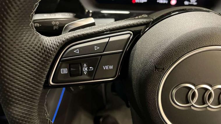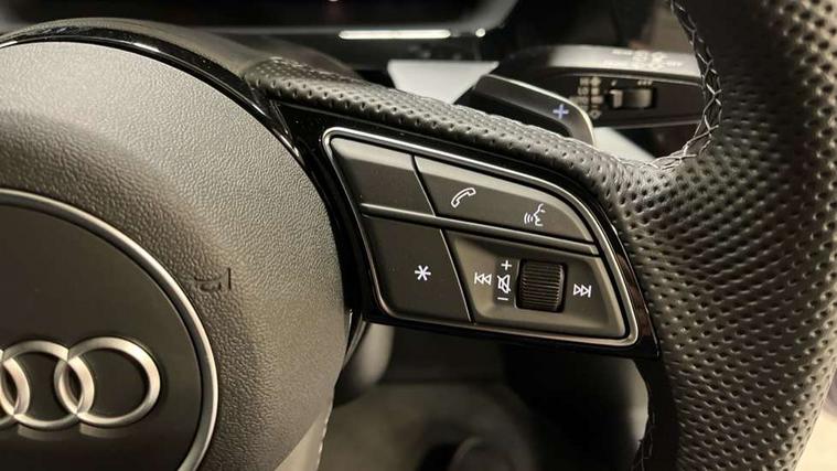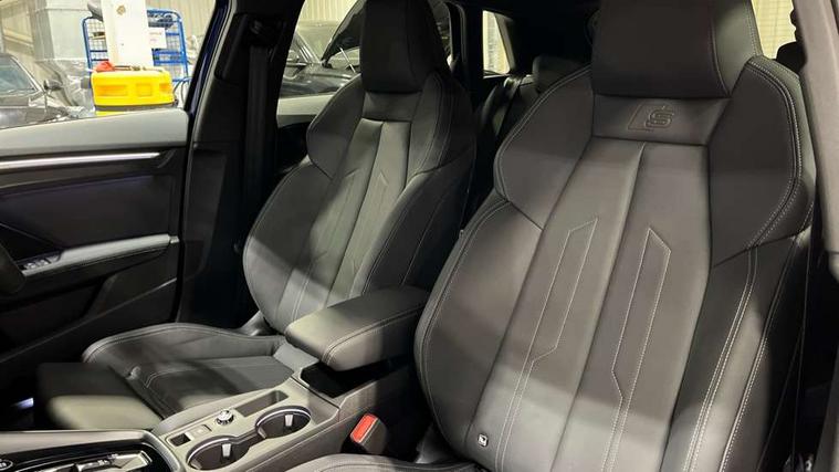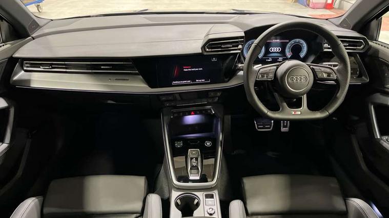 Adaptive cruise control (ACC), Adjustable speed limiter, Audi drive select (Auto, Comfort, Dynamic, Efficiency and Individual), Audi virtual cockpit plus - 12.3" full HD resolution dynamic digital instrument cluster, Automatic start/stop system with recuperation, Bluetooth interface, Camera based traffic sign recognition, Collision avoidance assistant, Driver attention and fatigue detection, e-Call (emergency call), Electromechanical power speed sensitive steering, Emergency assist, Intersection assist, Lane departure warning system, MMI Navigation Plus with high resolution 10.1" colour touch screen display, Park Assist with parking system Plus, Reversing camera, Service indicator, Smartphone interface with app store includes wireless Apple carplay, Android auto and Amazon alexa integration, Trip computer, Voice control system with natural language interaction, Sports suspension, Audi Phonebox light with wireless charging, Audi sound system - 10 loudspeakers including centre loudspeaker and subwoofer, DAB Digital radio, USB ports with charging function in the rear, Acoustic glass windscreen, All weather light, Aluminium window trim, Auto dimming frameless rear view mirror, Automatic dynamic range control, Body colour exterior mirrors, Chrome exhaust tailpipes, Dipped beam, main beam, position light and turning light, Electrically adjustable/heated/folding/auto dimming door mirrors with integrated LED indications + kerb view function for passenger side, Exterior model badging, Front and rear side air inlets in grained matt black with dark liquid chrome frame, Front electric windows, Front radiator grill in high gloss dark chrome, Heat insulating glass windscreen, Illuminated door sills with aluminium inserts at the front with S logo, Intersection light, LED 3rd brake light, LED brake lights, LED daytime running x3, LED headlights with LED rear lights and dynamic rear indicators, LED rear number plate lights, LED reverse light, LED tail lights, Light and rain sensors, Manoeuvring light, Motorway light, Privacy glass - dark tinted rear window, rear door and side windows, Rear diffuser and grill in grained matt black with inlay in dark liquid chrome, Rear electric windows, Rear side wing doors, Rear wiper, S line bumpers, S roof spoiler, Side S line emblems on front wings, Side sill trim in dark liquid chrome, Static cornering light, 12V socket and storage compartment in front centre console, 3 seat bench in 2nd row, 3 spoke flat bottomed leather multifunction sport steering wheel with gear shift paddles, 3-zone deluxe automatic air conditioning, 4 way electrically adjustable lumbar support for driver and front passenger, 40/20/40 split folding rear seat bench, Black cloth headlining, Black front and rear floor mats, Front and rear centre armrest in artificial leather with contrasting stitching on armrests and instrument panel, Front and rear headrests, Heated front seats, Height and reach adjustable steering wheel, i-Size child seat mounting on the front passenger side and outer rear seats, i-Size and top tether on the outer rear seats, Manual boot compartment lid, Manually adjustable front seats, Rear centre armrest with cupholder, S badging on the steering wheel, Seat side bolsters, Single front passenger seat, Stainless steel pedals and front footrest in black, Twin leather upholstery with front sports seats S embossed logo, Aluminium interior elements pack - A3, Multi-coloured LED interior lighting package with Multi-coloured contour lighting of instrument panel - A3, 3x3 point rear seat belts, Driver and front passenger airbag with passenger airbag deactivation, Electronic Stabilisation Control (ESC) including ABS, ASR and EDL, First aid kit with warning triangle and 2 safety vests, Front side airbags with head airbags and interaction airbag, Hill hold assist, Pre-sense front with pedestrian and cyclist detection, Seatbelt monitoring, Tyre pressure loss indicator, Anti theft alarm, Anti-theft wheel bolts, Electronically operated child locks, Immobiliser, Black dashboard, Inlay in dark aluminium spectrum,