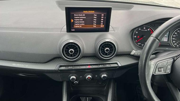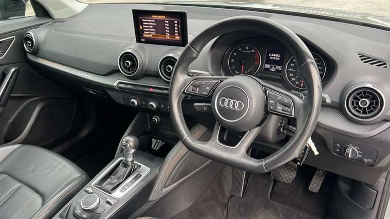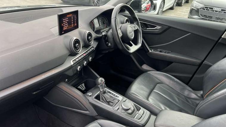 Aluminium interior trim, Illuminated format design inlays, Black styling pack - Q2, Extended interior upholstery pack - Q2, LED interior lighting pack advanced - Q2, Manhattan grey bumper pack - Edition 1 - Q2, Non smoking pack - Q2, 19" 5 arm rotor design anthracite black alloy wheels, Locking wheel bolts, Remote central locking, Thatcham category 1 alarm + immobiliser, Audi music interface, Aux input, CD player, DAB digital radio module, MMI radio plus with 7" colour MMI screen and MMI controller, USB port, 3x3 point rear seatbelts, ABS+Electronic Brake force Distribution, Curtain airbags, Driver and passenger airbags, Driver and passenger side airbags, EDL + ASR, Electrically operated child locks on rear doors, Electromechanical parking brake, ESP, Multi-Collision braking, Pre-sense front with pedestrian recognition, Seatbelt warning light, Tyre pressure monitoring system, Warning triangle and first aid kit, Brilliant black C-Pillar blade, Chrome exhaust tailpipe, Door mirror integrated indicators, Electrically adjustable and heated door mirrors, Front and rear electric windows, Headlight washers, LED headlights with LED rear lights + dynamic rear indicators, Rear wiper, S Line body styling, Solid paint, Sunband for windscreen, Centre console with storage/cupholders, Fine Nappa leather upholstery, Floor mats with contrast stitching, Front and rear door pockets, Front and rear headrests, Front centre armrest, Front sports seats, Glovebox, Height adjustable front seats, Height/reach adjust steering wheel, Illuminated door sills, ISOFIX on front passenger and rear outer seats, Storage compartment in rear centre console, Audi drive select, Audi smartphone interface, Bluetooth hands free telephone connection, MMI - Multi Media Interface control system, MMI SD card Navigation, PAS, Service interval indicator, Voice control system,