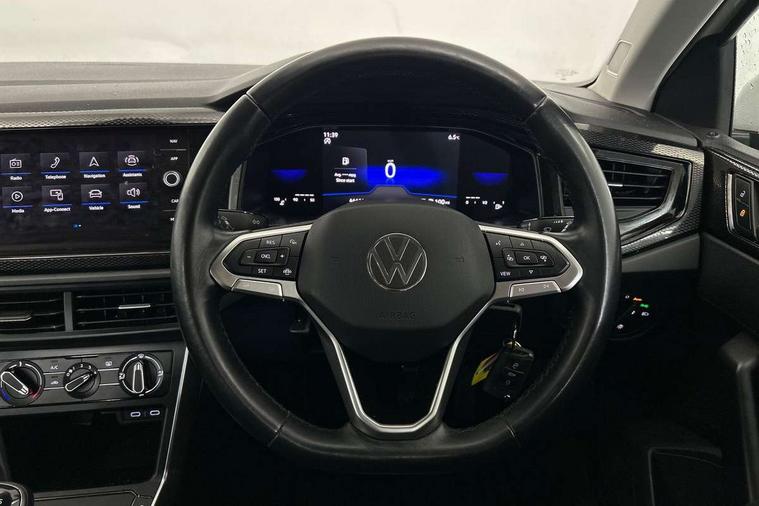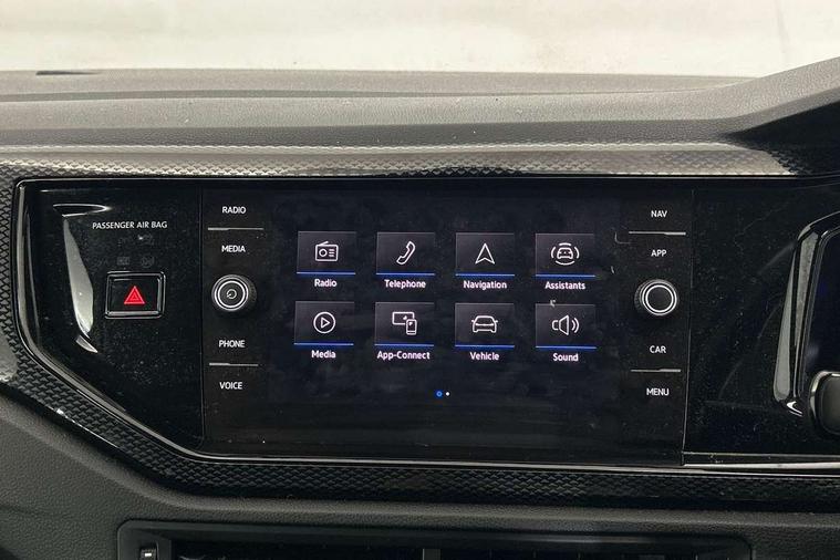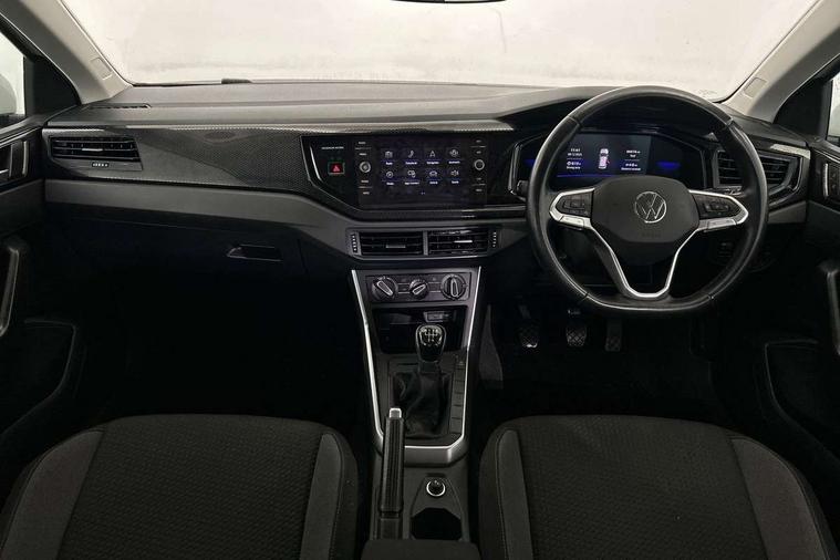 Bluetooth mobile phone interface, Cruise control + speed limiter, Driver alert system, Emergency call service, Lane keeping system Lane Assist, Power assisted speed sensitive steering, Preparation for We connect and We connect plus, Speedo and rev counter, electronic odometer, trip, service interval display and fuel gauge, Standard rear axle, Trip computer, Warning signal and warning light for front and rear seatbelts not fastened, Washer fluid level indicator, Wireless app connect, Front wheel drive, Rear shock absorpion, Start-stop system with battery regeneration (recuperation - energy recovery during braking), DAB Digital radio, Diversity antenna for FM reception, Automatic dimming interior rear view mirror, Body colour bumpers, Body colour door handles, Body colour door mirrors, Electric front windows, Heat insulating darkened glass in side and rear windows, Heat insulating glass windscreen, Power folding adjustable/heated exterior mirrors and front passenger exterior mirror lowering function, Rain sensor, Rear electric windows, Rear fog light, Rear side wing doors, Rear windscreen washer and wiper with interval delay, Third brake light, 12V power socket in centre console, 2 front and 2 rear reading lights, 2 USB-C ports in the front, 2 USB-C charging sockets on the center console in the rear, 3 rear head restraints, 60/40 split folding rear seat and rear seat bench not split, Ceramique headliner, Chrome plated radiator grille inserts, air vent surrounds and light switch surrounds, Door and side trim panel, Driver and front passenger seat height adjustment, Driver/passenger sunvisors with illuminated vanity mirrors, Front centre armrest, Front seat backrest storage pockets, Front standard seats, Handbrake lever handle in leather, Hartley/Thomas cloth upholstery, Isofix child seat preparation easy-fit (for two outer rear seats, and front passenger seat) compatible with I-size, Leather trimmed gear knob, Luggage compartment cover, Luggage compartment floor, Luggage compartment lighting, Multifunction steering wheel, Single front passenger seat, Standard pedal cluster, Light and vision pack - Polo, 3 point height adj front seatbelts + pretensioners, 3x3 point rear seatbelts, ABS, Driver and front passenger airbag with front passenger airbag deactivation, Drivers and front passengers safety optimised head restraints, ESC (Electronic stability control) + EDL (Electronic Differntial lock) and ASR (Traction control), Extended and predictive pedestrian/ cyclist protection, Front assist including city emergency braking, Front curtain and side airbags with center airbag, Front disc brakes, Hill hold control, Manual child lock in rear doors, Rear drum brakes, Single tone horn, Tyre pressure loss indicator, Alarm with interior protection, Anti-theft alarm system with interior monitoring, backup horn, and towing protection, Anti-theft wheel bolts, Electronic engine immobiliser, Lava stone black gloss/matt decorative inserts in dash and front door panels, Low rolling resistance tyres,