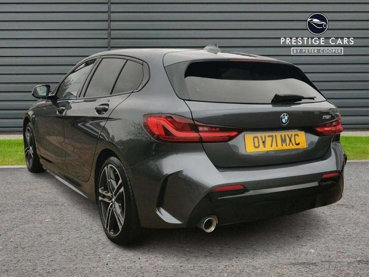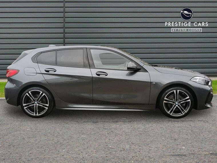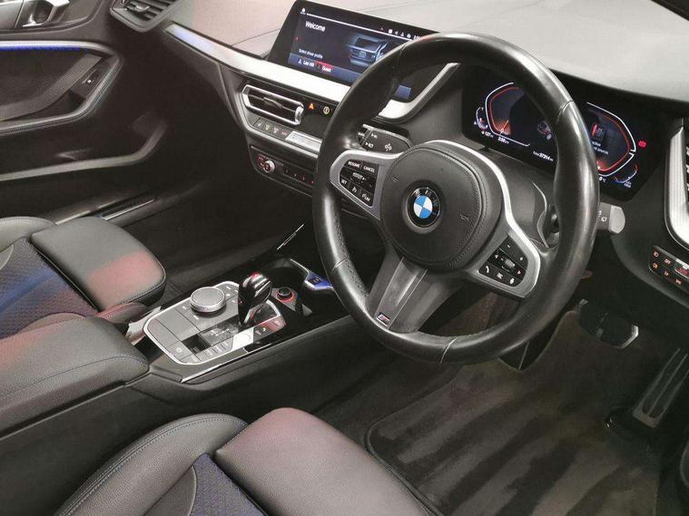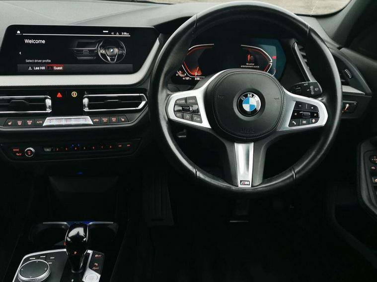 Active guard plus, Attentiveness assist, BMW Online services, BMW Teleservices, Check Control warning system for monitoring of lights and door/luggage compartment open warning, Connected eDrive Services, Eco pro mode, Integrated owners handbook, Oil sensor for level and grade, On board computer, Optimum shift indicator, Personal Profile, Pull away assistant, Speed limiter, Aluminium lightweight construction, Anti roll bar front and rear, Balancer shaft, Double VANOS, Drive Performance Control, Electronic differential lock, High precision injection, M sport suspension, Petrol Particulate Filter, VALVETRONIC engine management, Bluetooth audio streaming, DAB Digital radio, Auto dimming rear view mirror, Automatic headlight beam throw control, Automatic windscreen wipers and automatic headlight, Body colour door handles, Body colour mirror caps, Chrome 'M' logo side designation, Chrome exhaust tailpipe in single, round (Exhaust tailpipe, stainless steel - single, round), Chrome kidney grille frame with Satin Aluminium struts, Direction indicator side lights in exterior mirrors, Electric folding and anti dazzle exterior mirrors, Fading support, Follow me home headlights, Front and rear bumper system with replaceable deformation elements, Front and rear electric windows with open and close fingertip control, anti trap facility and comfort closing, Front door sill finishers in black plastic with M designation in metallic look, Green tinted heat protection glazing, Heated, electrically adjustable exterior mirror aspheric on driver side, convex on passenger side, High gloss shadowline window frame, Recess cover mirror frames and B/C pillar embelisher trim, High level third brake light, LED daytime running lights, LED eyebrow turn indicators, LED front fog lights, Lightweight engineering, Matt black air guide grilles, Model designation on right side of tailgate, Nearside reverse light in rear light cluster, Preparation for high beam assistant, Rain sensor including auto headlights activation, Rear fog lights, Rear window wiper, Shark fin antenna, Visible VIN plate, Welcome lighting, 12V power socket in centre console, 3 rear seat head restraints, 3 spoke M sports design leather steering wheel finished in nappa leather with specific M badge, Anthracite headlining, Anthracite Velour floor mats, Child seat ISOFIX attachment for two outer rear seats and front passenger seat with anchorage points, Conditioned based service, Dakota leather upholstery with perforation and contrast stitching, Driver and front passenger seat heating, Folding rear clothes hook, Four grab handles integrated in roof lining, Front and rear door pockets, Front and rear door pockets with bottle holders, Front and rear side armrest integrated into door trim, Front armrest foldable with integrated storage compartment, Front sports seats with electric side bolster adjustment, Glove compartment, Height adjustable front head restraints, Manual adjust steering wheel, Multi-function controls for steering wheel, Storage compartment in centre console, Sun visors with vanity mirrors and insert tab, Two zone automatic air conditioning, Additional interior lighting pack - 1 Series, Connected pack professional - 1 Series, Extended storage pack - 1 Series, Interior lights pack - 1 Series, Luggage compartment pack - 1 Series, M Sport exterior styling aerodynamics pack - 1 Series, 2 tone horn, 3 point seatbelts on all seats, front pyrotechnic belt tensioners, stopper and belt force limiters, rear coded belt buckles, Airbags - front driver/passenger, front & rear curtain, front side, Anti lock braking system (ABS) with brake assist, BMW emergency call, Brake drying, Braking readiness, Crash sensor activating central locking release, hazard warning lights, fuel cut off, interior lighting + activation of safety battery terminal clamp, Driver and front passenger seat belt security check, Dynamic stability control + (DSC+), Dynamic Traction Control - DTC, Electrically operated hand brake, Front and rear disc brakes, Front passenger manual airbag deactivation, Seatbelt warning, Side impact protection, Tyre pressure monitoring system, Warning triangle and first aid kit, Automatic drive away locking facility, Central locking switch for all doors, fuel filler cap and luggage compartment, Deadlocking function system to all doors, Locking wheel bolts, Remote control with integrated key with High-gloss Black inlay and M designation and 1 button for open/ close lock, window, open luggage compartment, Start/stop button with comfort go keyless engine start and auto start stop deactivation button, Thatcham Cat.1 alarm and immobiliser, Contrast stitching on instrument panel, Reduced rolling resistance tyres,