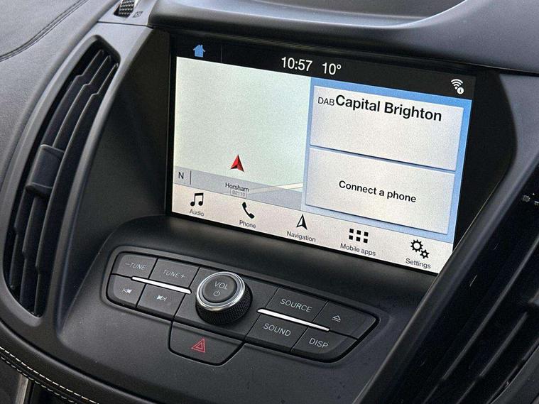 Enhanced active park assist including perpendicular parking pull out assist, flank guard and front/rear parking sensor, EPAS, Ford SYNC bluetooth connection with advanced voice control and USB port, Premium SYNC 3 nav system with DAB, rear view camera + 9 speakers, Rear parking sensor, Rear view camera, SYNC Emergency Assistance, Trip computer, Auxiliary socket for external device, Remote audio controls on steering wheel, Auto dimming rear view mirror, Automatic headlights, Bi-Xenon headlights with dynamic bending and active beam shape, Body colour rear spoiler, Body styling kit, Electric folding mirrors, Front fog lights, Front scuff plate, Headlight washer jets, LED daytime running lights, LED tail lights, Power front and rear windows, Quickclear heated windscreen, Rain sensor windscreen wipers, Rear diffuser, Tailgate wash/wipe, Twin exhaust pipes, 10 way electric adjustable drivers seat, 2nd row air vents, 6 way manually adjustable passenger seat, 60/40 split/folding rear back and cushion, Auxiliary power socket in luggage area, Centre console with stowage tray/bottle holder/CD stowage/front and rear 12V power point, Driver/front passenger manual lumbar adjust, Driver/passenger front seatback pockets, Dual electronic automatic temperature control, Folding rear centre armrest, Footwell courtesy lights front and rear, Front head restraints, Front overhead courtesy lights with theatre style dimming and delay, Front/rear reading lights, Gearshift paddles, Heated front seats, Isofix system on outer rear seats, Leather gearknob, Leather steering wheel, Memory for drivers seat/door mirrors, Multi-colour ambient interior lighting, Premium floor mats, Reach + rake adjustable steering column, Rear head restraints, Sports style front seats, Stowage unit in upper instrument panel, Tie down hooks, Tonneau cover, Variable intensity instrument illumination, Windsor leather upholstery, 3 point seatbelts on all 3 rear seats, ABS/EBD, Driver and passenger airbags, Driver and passenger side airbags, Electric traction assist system, Electronic parking brake, ESP+EBA, Front and rear curtain airbags, Hill start assist, Intelligent Protection System (IPS), Roll stability control, Tyre pressure monitoring system, Immobiliser, Keyless entry system with hands free boot opening, Keyless Start, Locking wheel nuts, Remote central locking, Thatcham Cat.1 alarm, Mini steel spare wheel,