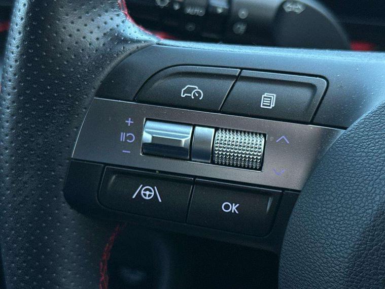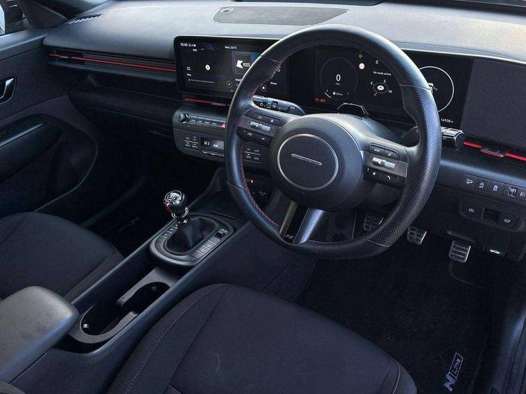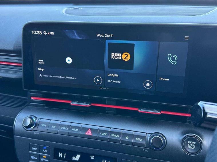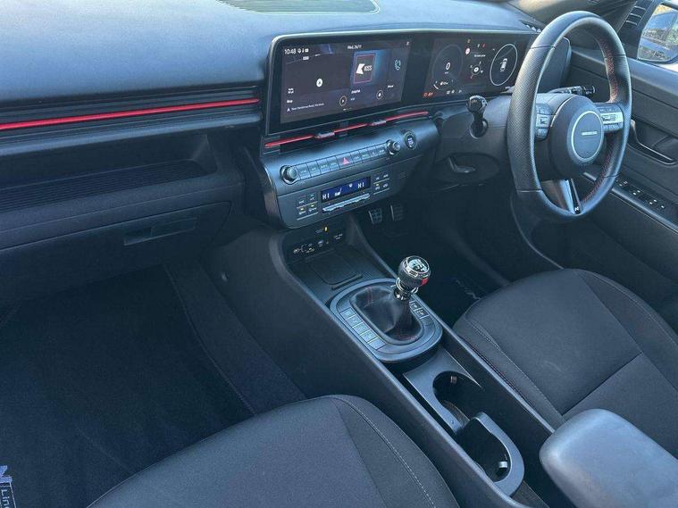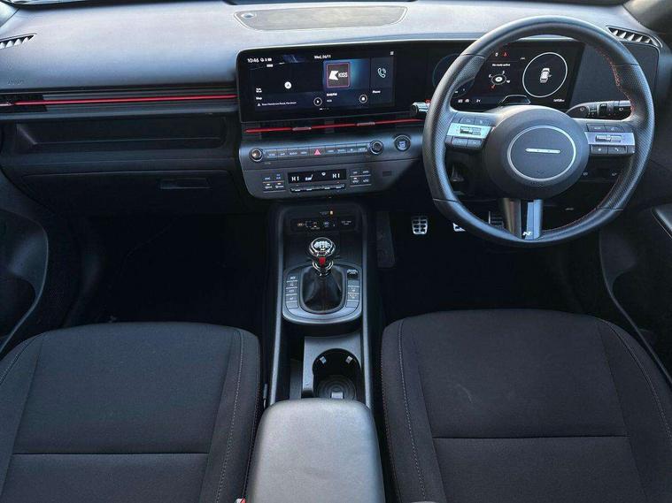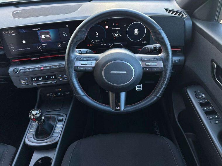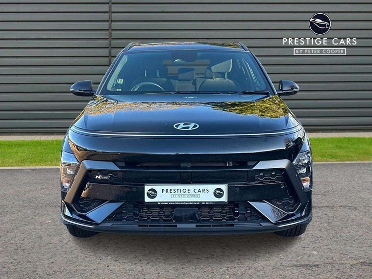 10.25" touchscreen centre console display satellite navigation with live services and mapcare, Bluetooth connectivity with voice recognition, Cruise control, Digital clock, Driver attention warning, Driver supervision instrument cluster with 12.3" LCD display, eCall emergency call system, Forward collision avoidance assist (FCA 1.5) - Car, pededstrian, cycle and junction turning, Front parking sensor, Head up Display, Intelligent speed limit assist, Lane follow assist, Lane keep assist, Leading vehicle departure alert (LVDA), Parking system with rear camera and guidance system, PAS, Rear parking sensor, Roadside assistance, Smartphone integration compatible with Apple CarPlay and Android Auto, Windscreen washer fluid sensor and warning indicator, Wireless phone charging pad, 2 front USB C and 2 rear USB C charging points, DAB Digital radio, Speakers - Front, rear and tweeters, Steering wheel audio, phone and cruise controls, Auto dimming rear view mirror, Automatic headlights with dusk sensor, Automatic windscreen wipers with rain sensor, Body colour bumpers, Body colour exterior door handles, Body coloured wheel arch inserts, Door mirror LED indicator lights, Electric front windows with anti-trap mechanism and one touch control, Electric rear windows, Electrically adjustable and heated door mirrors, Full LED MFR headlights, Gloss black door mirrors, LED daytime running lights, LED rear lights, Power folding door mirrors, Privacy glass - Rear windows and tailgate, Rear roof spoiler with integrated LED brake light, Rear side wing doors, Rear wiper, Roof rails, Solar glass with front door glass and windscreen, Tinted glass in front and rear doors, Windscreen auto defog function, 12V power outlet in front console, 2 zone climate control, 3 seat bench in 2nd row, 40/20/40 split folding rear seat, Adjustable head restraints, Aluminium pedals, Ambient lighting, Cloth upholstery, Driver and passenger front seat pockets, Driver's seat electric lumbar support, Driver's seat height adjustment, Driver/passenger sunvisors and illuminated vanity mirrors, Front passenger seat manual adjustments, Heated front seats, Heated rear seats, Heated steering wheel, Height/reach adjustable steering column, Isofix rear child seat fastenings, Leather wrapped steering wheel and gear knob, LED centre interior light, LED front interior light, Luggage compartment LED lighting, Metal paint effect interior door handles, Parcel shelf, Rear centre armrest, Rear centre console with air vents, Single front passenger seat, Vertical adjustment rear head restraints, N Line exterior design pack - Kona, Trailer wiring package - Kona, Airbag - front, front side, curtain and centre front airbag, Anti-lock brake system (ABS), Childproof rear door locks, Downhill brake control, EBD + Brake Assist, Electric parking brake, Electronic stability control, Fasten seatbelt reminder, Fixed 3 point for second row centre passenger seatbelt, Front seatbelt pretensioners, Height adjustable front seatbelts, Hill start assist control (HAC), Passenger airbag deactivate switch, Rear seat alert, Traction control, Tyre pressure monitoring system, Alarm/immobiliser, Deadlocks, Folding key, Locking wheel nuts, Remote central locking, Smart key with keyless entry and engine start/stop button, Temporary mobility kit (TMK),