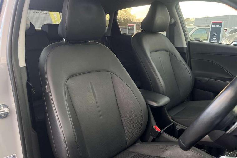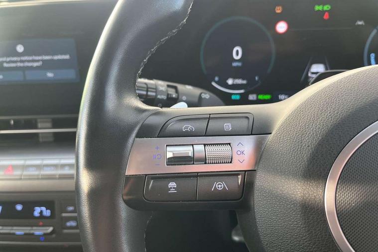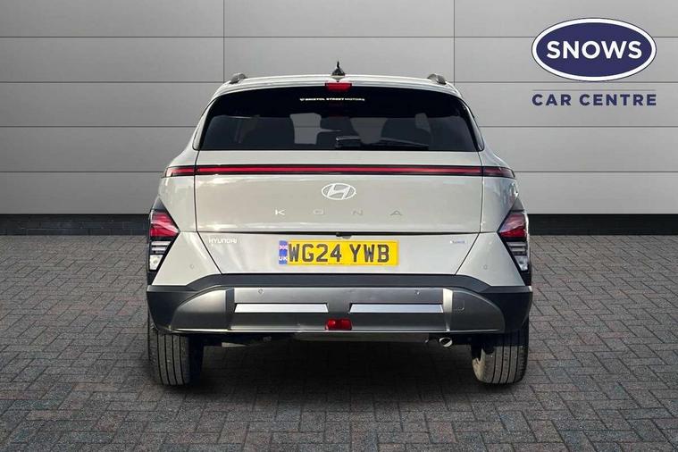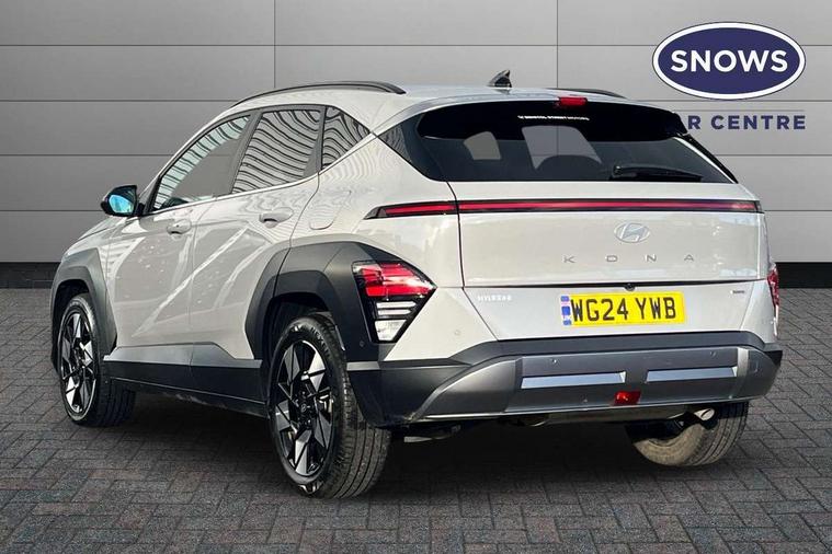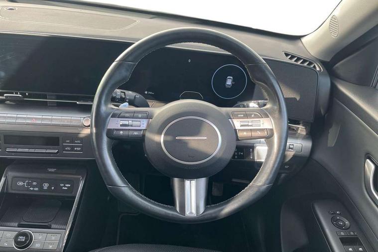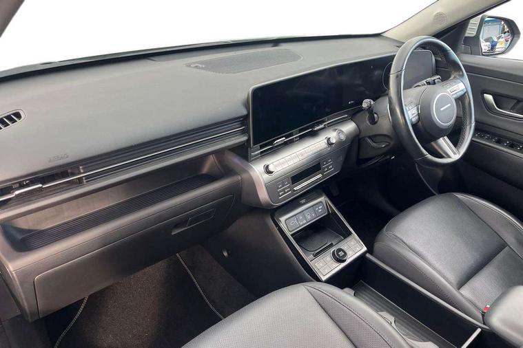 12.3" touchscreen centre console display satellite navigation with bluelink, live services and mapcare, Blind spot collision avoidance assist, Blind spot view monitor, Bluetooth connectivity with voice recognition, Digital clock, Driver status monitor (DSM), Driver supervision instrument cluster with 12.3" LCD display, eCall emergency call system, Feature on demand - Enabled, Forward collision avoidance assist (FCA 1.5) - Car, pededstrian, cycle and junction turning, Front parking sensor, HDA - Highway Drive Assist Level 1.5, Height adjustable power tailgate, Intelligent speed limit assist, Lane follow assist, Lane keep assist, Leading vehicle departure alert (LVDA), Parking Collision Avoidance Assist-Reverse (PCA-R), Parking distance warning - side, Parking system with rear camera and guidance system, PAS, Rear cross traffic collision avoidance (RCCA), Rear parking sensor, Roadside assistance, Safe exit warning (SEW), Smart cruise control with stop and go functionality, Surround view monitor, Windscreen washer fluid sensor and warning indicator, Wireless phone charging pad, Wireless Smartphone Integration includes Apple CarPlay and Android auto, 2 front USB C and 2 rear USB C charging points, Bose Premium Audio system with 7 premium speakers + subwoofer, DAB Digital radio, Steering wheel audio, phone and cruise controls, Auto dimming rear view mirror, Automatic headlights with dusk sensor, Automatic windscreen wipers with rain sensor, Black painted wheel arch inserts, Body colour bumpers, Body colour exterior door handles, Body coloured door mirrors, Door mirror LED indicator lights, Electric front windows with anti-trap mechanism and one touch control, Electric rear windows, Electric sunroof, Electrically adjustable and heated door mirrors, Horizon centre LED DRL, LED projector headlights, LED upper and lower rear lights, Power folding door mirrors, Privacy glass - Rear windows and tailgate, Rear roof spoiler with integrated LED brake light, Rear side wing doors, Rear skid plate - silver, Rear wiper, Roof rails, Solar glass with front door glass and windscreen, Tinted glass in front and rear doors, Windscreen auto defog function, 12V power outlet in front console, 2 zone climate control, 3 seat bench in 2nd row, 40/20/40 split folding rear seat, Adjustable head restraints, Ambient lighting, Driver and passenger front seat pockets, Driver's seat electric adjustments, Driver's seat lumbar support, Driver/passenger sunvisors and illuminated vanity mirrors, Floor mats, Front passenger's seat electric adjustments, Heated front seats, Heated rear seats, Heated steering wheel, Height/reach adjustable steering column, Isofix rear child seat fastenings, Leather upholstery, Leather wrapped steering wheel, LED centre interior light, LED front interior light, Luggage compartment LED lighting, Luggage net, Luggage shelf, Metal paint effect interior door handles, Parcel shelf, Rear centre armrest with cupholders, Rear centre console with air vents, Shift by wire SBW, Single front passenger seat, Ventilated front seats, Vertical adjustment rear head restraints, Trailer wiring package - Kona, Airbag - front, front side, curtain and centre front airbag, Anti-lock brake system (ABS), Childproof rear door locks, Downhill brake control, EBD + Brake Assist, Electric parking brake, Electronic stability control, Fasten seatbelt reminder, Fixed 3 point for second row centre passenger seatbelt, Front seatbelt pretensioners, Height adjustable front seatbelts, Hill start assist control (HAC), Passenger airbag deactivate switch, Rear seat alert, Traction control, Tyre pressure monitoring system, Alarm/immobiliser, Deadlocks, Folding key, Locking wheel nuts, Rear occupant alert, Remote central locking, Smart key with keyless entry and start/stop button, Five year annual vehicle health checks, 18" Alloy wheels, Temporary mobility kit (TMK),