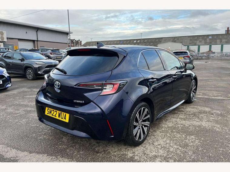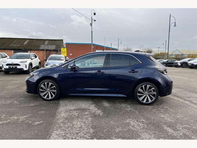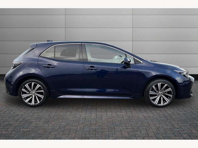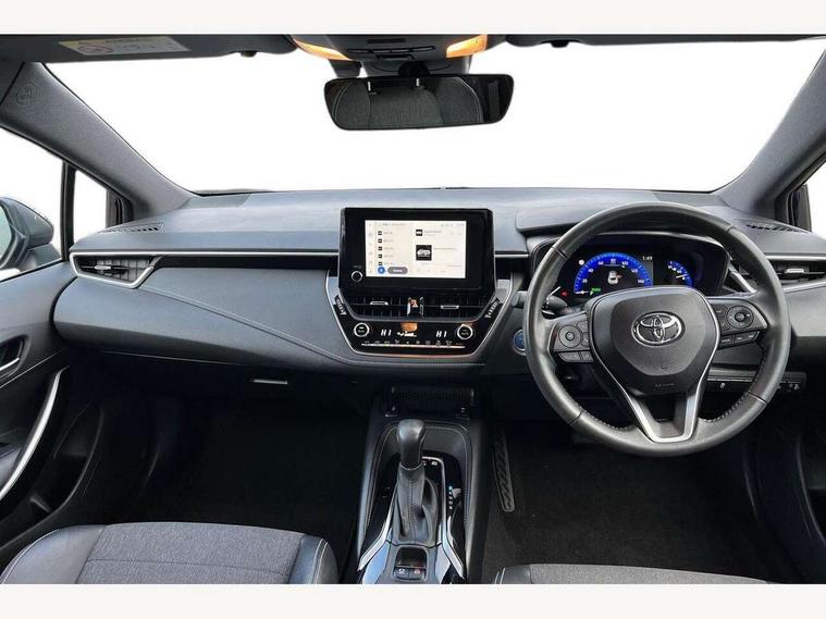 7" Multi information display screen, Bluetooth telephone connectivity, Connected car functionality upgrade, tracker, remote status and e-care, Door trim and centre console material, Dynamic radar cruise control (with RSA) including switch on steering wheel, E-call, Electrically assisted power steering, EV drive indicator, Intelligent park assist, Lane Departure Alert (LDA) switch on steering wheel, Memory on adjustable speed limiter, Push button start, Reversing camera, Smartphone integration with Apple CarPlay and Android auto, Gasoline particulate filter, Vehicle Stability Control (VSC), 6 speakers, 8" Touchscreen with MM19 Multimedia system and voice recognition, AM/FM radio, DAB Digital radio, Toyota touch 2 with go navigation system, USB and Aux in connectors + 12V front outlet, Anti-jam protection on power windows, Auto dimming inside rear view mirror, Auto up and down function on all power windows, Automatic folding mirrors, Automatic headlights with high beam assist, Black metallic surround on lower front grille, Black toyota logo in front, Black window frames, Body colour rear spoiler, Body coloured bumpers, Body coloured door mirrors, Body coloured outside door handles, Follow me home headlights, LED daytime running lights, LED front fog lights, LED Headlights, LED High mounted stop light, LED rear combi lights with LED lightguide, Power adjustable heated door mirrors, Power front windows, Power rear windows, Privacy glass, Rain sensing wipers, Rear side wing doors, Rear window defogger, Rear window wiper, Reverse tilting door mirrors, Shark fin antenna, Time adjustment on intermittent wiper, Turning signal integrated indicators in door mirrors, Unique lower skirt, Unique side rocker with black insert, UV-filter on driver and passenger windows, 3 rear headrests, 3 seat bench in 2nd row, 3 spoke leather steering wheel + gear knob, 60/40 split folding rear seat, Adjustable speed limiter switch on steering wheel, Audio, multimedia and telephone switches on steering wheel, Blue ambient interior illumination to centre tray, front cup holders and front door trim, Boot light, Centre room light, Clean air filter, Driver and front passenger personal light, Driver and passenger assist grip, Driver and passenger sun visor with mirror and light, Dual zone automatic air conditioning with ECO mode switch, Fabric/synthetic leather upholstery, Front and rear cup and bottle holders, Front door pockets, Front head restraints, Front passenger seat, Heated driver and front passenger seats, Illuminated entry system in room lamp, ISOFIX seat fixing (2 fixings on rear outer seats), Leather gear shift with satin chrome on gear shift console, Leather style armrests, Manual height adjustable for driver and front passenger seat, Parcel shelf, Passenger seat back pocket, Pollen filter, Power adjustable lumbar support on driver seat, Power window switches with satin chrome inserts, Rear armrest with 2 cupholders, Rear passenger coat hooks (2), Satin chrome inside door handles, Shopping bag hooks in luggage compartment, Sliding armrest on centre console box, Slow opening glovebox with lights, Tilt/telescopic steering column, Voice recognition switch on steering wheel, Whiplash Injury Lessening (WIL) feature (active headrest) for seats, Parking pack - Corolla, Toyota safety sense 2 pack - Corolla, 3x3 point rear seatbelts, Adjustable driver and front passenger seat belt extender to top anchor point, Anti lock braking system + Electronic brake force distribution, Brake assist function, Child locks on rear doors, Downhill Assist Control (DAC), Electronic parking brake, Emergency brake light signal (EBS), Front passenger airbag on/off switch, Front seatbelt reminder, HAC - Hill start assist control, Rear seat belt reminder, Seatbelt pretensioners and force limiters, Supplemental restraint system (SRS) 7 airbags - dual driver, dual side curtain, side impact and driver knee airbags, Traction control, Tyre pressure warning system, Acoustic vehicle alert system (AVAS), Alarm with motion sensor and immobilizer, Remote central locking + deadlocks, Smart entry, Satin chrome dash trim, Soft touch texture on upper dashboard, Unique wheel finish with red wheel cap,
