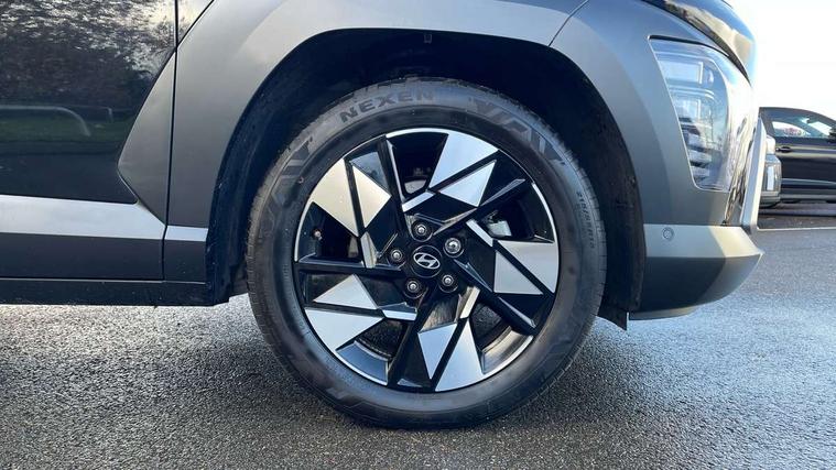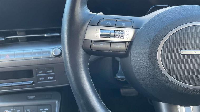 12.25" digital instrument cluster, 12.3" touchscreen centre console display satellite navigation with bluelink, live services and mapcare, Blind spot collision avoidance assist, Blind spot view monitor, Bluetooth connectivity with voice recognition, Driver status monitor (DSM), Driver supervision instrument cluster with 12.3" LCD display, eCall emergency call system, Feature on demand - Enabled, Forward collision avoidance assist (FCA 1.5) - Car, pededstrian, cycle and junction turning, Front parking sensor, HDA - Highway Drive Assist Level 1.5, Height adjustable power tailgate, Intelligent speed limit assist, Lane follow assist, Lane keep assist, Leading vehicle departure alert (LVDA), Parking Collision Avoidance Assist-Reverse (PCA-R), Parking distance warning - side, Parking system with rear camera and guidance system, PAS, Rear cross traffic collision avoidance (RCCA), Rear parking sensor, Rear view camera with dynamic guidelines, Roadside assistance, Safe exit warning (SEW), Smart cruise control with stop and go functionality, Surround view monitor, Wireless phone charging pad, Wireless Smartphone Integration includes Apple CarPlay and Android auto, 2 front USB C and 2 rear USB C charging points, Bose Premium Audio system with 7 premium speakers + subwoofer, DAB Digital radio, Steering wheel audio, phone and cruise controls, Auto dimming rear view mirror, Automatic headlights with dusk sensor, Automatic windscreen wipers with rain sensor, Black painted wheel arch inserts, Body colour exterior door handles, Body coloured door mirrors, Door mirror LED indicator lights, Electric front windows with anti-trap mechanism and one touch control, Electric rear windows, Electric sunroof, Electrically adjustable and heated door mirrors, Horizon centre LED DRL, LED projector headlights, LED taillights, LED upper and lower rear lights, Power folding door mirrors, Privacy glass - Rear windows and tailgate, Rain sensor, Rear roof spoiler with integrated LED brake light, Rear side wing doors, Rear skid plate - silver, Rear wiper, Roof rails, Solar glass with front door glass and windscreen, Tinted glass in front and rear doors, Windscreen auto defog function, 12V power outlet in front console, 2 zone climate control, 3 seat bench in 2nd row, 40/20/40 split folding rear seat, Adjustable head restraints, Ambient lighting, Driver and passenger front seat pockets, Driver's seat electric adjustments, Driver's seat lumbar support, Driver/passenger sunvisors and illuminated vanity mirrors, Floor mats, Front passenger's seat electric adjustments, Heated front seats, Heated rear seats, Heated steering wheel, Height/reach adjustable steering column, Leather steering wheel, Leather upholstery, LED centre interior light, LED front interior light, Luggage compartment LED lighting, Luggage net, Luggage shelf, Metal paint effect interior door handles, Rear centre armrest with cupholders, Shift by wire SBW, Single front passenger seat, Ventilated front seats, Vertical adjustment rear head restraints, Trailer wiring package - Kona, Airbag - front, front side, curtain and centre front airbag, Anti-lock brake system (ABS), Childproof rear door locks, Downhill brake control, Electric parking brake, Electronic stability control, Fixed 3 point for second row centre passenger seatbelt, Hill start assist control (HAC), Rear seat alert, Tyre pressure monitoring system, Alarm/immobiliser, Rear occupant alert, Remote central locking, Smart key with keyless entry and start/stop button, Five year annual vehicle health checks, 18" Alloy wheels, Temporary mobility kit (TMK),