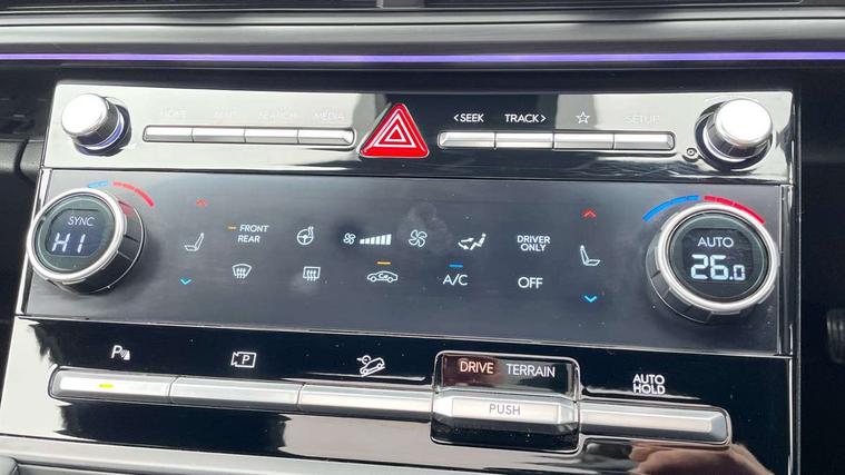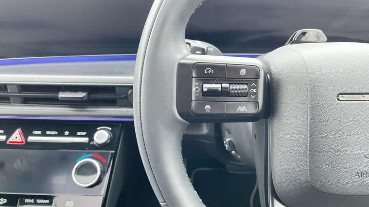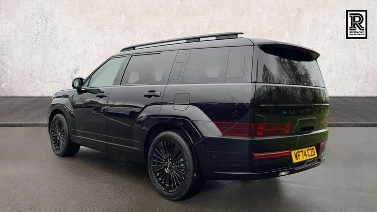 12.3" Drivers supervision instrument cluster with LCD display, 360 degree parking sensors, Blind spot collision avoidance assist (BCA), Blind spot view monitor (BVM), Bluelink and Wireless Apple Carplay/Android Auto, Bluetooth connectivity with voice recognition, Drive mode selector, Driver status monitor (DSM), Dual wireless phone charging pad, Emergency services call system, Forward collision avoidance assist (FCA 2.0), Head up Display, Highway drive assist 2 (HDA 2), Intelligent speed limit assist (ISLA), Lane departure warning system (LDW), Lane Follow Assist 2 (LFA 2), Lane keeping assist (LKA), Low washer fluid warning, Navigation based smart adaptive cruise control with stop and go, Over the air software updates (OTA), Parking Collision Avoidance Assist-Reverse (PCA-R), Power assisted steering, Remote smart parking assist, Safe exist assist (SEA), Smart electric tailgate with hand's free opening function, Surround view monitor, Self levelling suspension, Shift by Wire Gear Selector (SBW), 12.3" Touchscreen display with satellite navigation, 2nd Row USB C Ports x2 Charging, 3rd Row USB C Ports x2 Charging, Front USB C port 1 charging and 1 data/charging, Premium BOSE sound system with 12 speakers and subwoofer, Steering wheel audio, phone and cruise controls, Automatic headlights with dusk sensor, Automatic windscreen wipers with rain sensor, Black Styling (Skid plate, Fender upper garnish, Door side garnish, C/D pillars, Rear bumper moulding, DLO), Body colour bumpers, Digital centre mirror, Dual glass electric tilt and slide sunroof, Dynamic welcome light, Electric adjustable/heated/auto power folding door mirrors, Front and rear electric windows, Heated rear window, Hidden C pillar assist handle, Hidden rear wiper, High beam assist, LED daytime running lights, LED Headlights, LED indicator lights, LED indicators in door mirrors, LED positioning lights, LED taillights, LED third brake light, Manual rear door blinds, Rear side wing doors, Rear windows and tailgate privacy glass, Roof rails, Solar glass windscreen and front windows, Windscreen acoustic film, Windscreen auto defog function, 2nd and 3rd row center armrest with cupholder, 3rd row head restraints, Centre rear head restraint, Driver and front passenger premium relaxation seats, Dual zone climate control air conditioning, Electrically adjustable front seats with 2 way electric lumbar support, Front head restraints, Front seats with memory, Heated front seats, Heated rear seats, Height and reach electrically adjustable steering column, Leather wrapped heated steering wheel, Luggage cover, Luggage hooks, Luggage net, Multi colour LED ambient lighting, Nappa leather upholstery, Rear head restraints, Single front passenger seat, Split folding (50/50) third row seats, Split folding (60/40), sliding and reclining second row seats, Sun Visors with driver and passenger illuminated vanity mirrors, Two front cup holders, UV-C Tray, Ventilated front seats, Trailer wiring pack - Santa Fe, 3 point seatbelts on all seats, Adjustable regenerative braking paddle shifters, Airbag - Front, front side, curtain and centre front airbags, Anti-lock brake system (ABS), Dynamic brake control, Electric parking brake with auto hold function, Electronic Stability Control (ESC), Hill start assist control (HAC), Manual child lock in rear doors, TSA (Trailer Stability Assist), Tyre pressure monitoring system, Immobiliser, Black ink interior decals, 20" Black calligraphy alloy wheels, Tyre mobility kit,