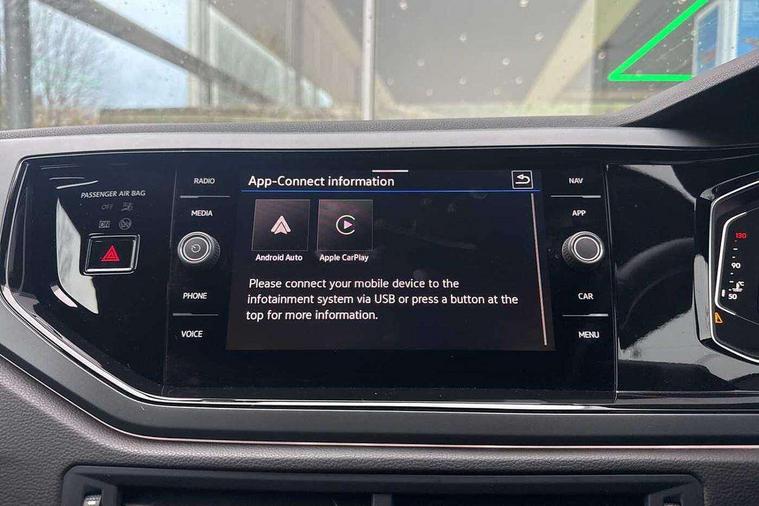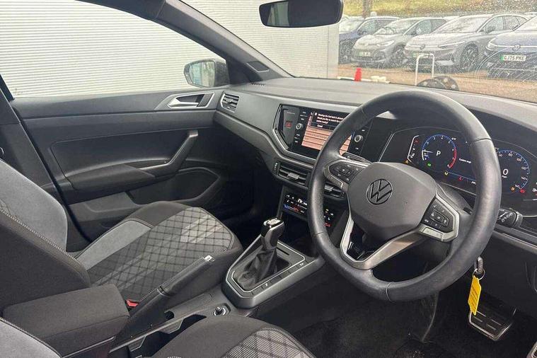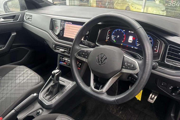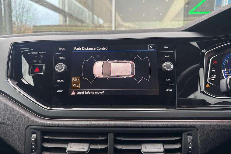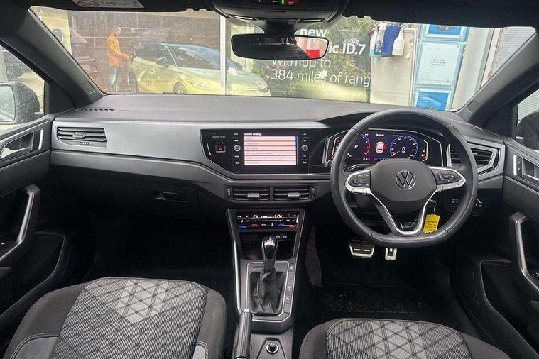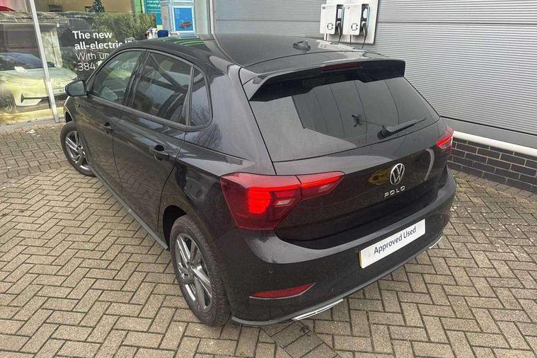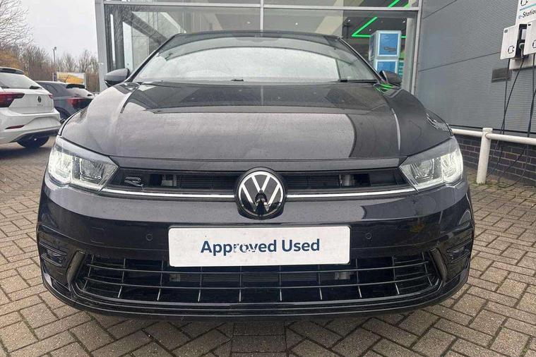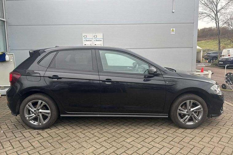 Adaptive cruise control with follow-to-stop and speed limiter, Advanced driver attention and drowsiness monitor, Bluetooth mobile phone interface, Digital Cockpit Pro with 10.25" Display, Dynamic road sign display, Emergency call service, Multifunction camera, Power assisted speed sensitive steering, Preparation for We connect and We connect plus, Speedo and rev counter, electronic odometer, trip, service interval display and fuel gauge, Standard rear axle, Travel Assist - Lane keeping system and traffic jam assist, Travel assist including emergency assist, Trip computer, Warning signal and warning light for front and rear seatbelts not fastened, Washer fluid level indicator, Wireless app connect, Front wheel drive, Rear shock absorpion, Start-stop system with battery regeneration (recuperation - energy recovery during braking), DAB Digital radio, Diversity antenna for FM reception, Front and rear 6 speakers, Body colour bumpers, Body colour door handles, Electric front windows, Front scuff plates with R-Line logo, Heat insulating glass windscreen, Power folding adjustable/heated exterior mirrors and front passenger exterior mirror lowering function, Rear electric windows, Rear fog light, Rear side wing doors, Rear windscreen washer and wiper with interval delay, Third brake light, 12V power socket in centre console, 2 USB-C ports in the front, 2 USB-C charging sockets on the center console in the rear, 3 rear head restraints, 60/40 split folding rear seat and rear seat bench not split, Air care climatronic air conditoning system with active combination filter and 2-zone temperature control, Black roof lining, Carpet mats, front and rear, Chrome plated radiator grille inserts, air vent surrounds and light switch surrounds, Door and side trim panel, Driver and front passenger seat height adjustment, Driver/passenger sunvisors with illuminated vanity mirrors, Front centre armrest, Front footwell illumination, Front seat backrest storage pockets, Front sports comfort seats, Handbrake lever handle in leather, Headliner in recycled material, Isofix child seat preparation easy-fit (for two outer rear seats, and front passenger seat) compatible with I-size, Karoso artvelours cloth upholstery, Leather trimmed gear knob, LED interior light with switch off delay and dimmer, 2 reading lights front and rear, Luggage compartment cover, Luggage compartment floor, Luggage compartment lighting, Lumbar adjustment for front seats, Single front passenger seat, Stainless steel pedals, Standard pedal cluster, Three spoke leather wrapped multifunction steering wheel with shifting paddles, Light and sight pack - Polo R-Line/Black Edition, 3 point height adj front seatbelts + pretensioners, 3x3 point rear seatbelts, ABS, Driver and front passenger airbag with front passenger airbag deactivation, Drivers and front passengers safety optimised head restraints, ESC (Electronic stability control) + EDL (Electronic Differntial lock) and ASR (Traction control), Extended and predictive pedestrian/ cyclist protection, Front curtain and side airbags with center airbag, Front/rear disc brakes, Hill hold control, Manual child lock in rear doors, Single tone horn, Tyre pressure loss indicator, Alarm with interior protection, Anti-theft alarm system with interior monitoring, backup horn, and towing protection, Anti-theft wheel bolts, Electronic engine immobiliser, Chrome applications on rotary light, mirror adjustment, window regulator switches, outlet with frame in black, Dark grey anodised matt decorative inserts in dash and front door panels, 16" Coventry alloy wheels, Low rolling resistance tyres,